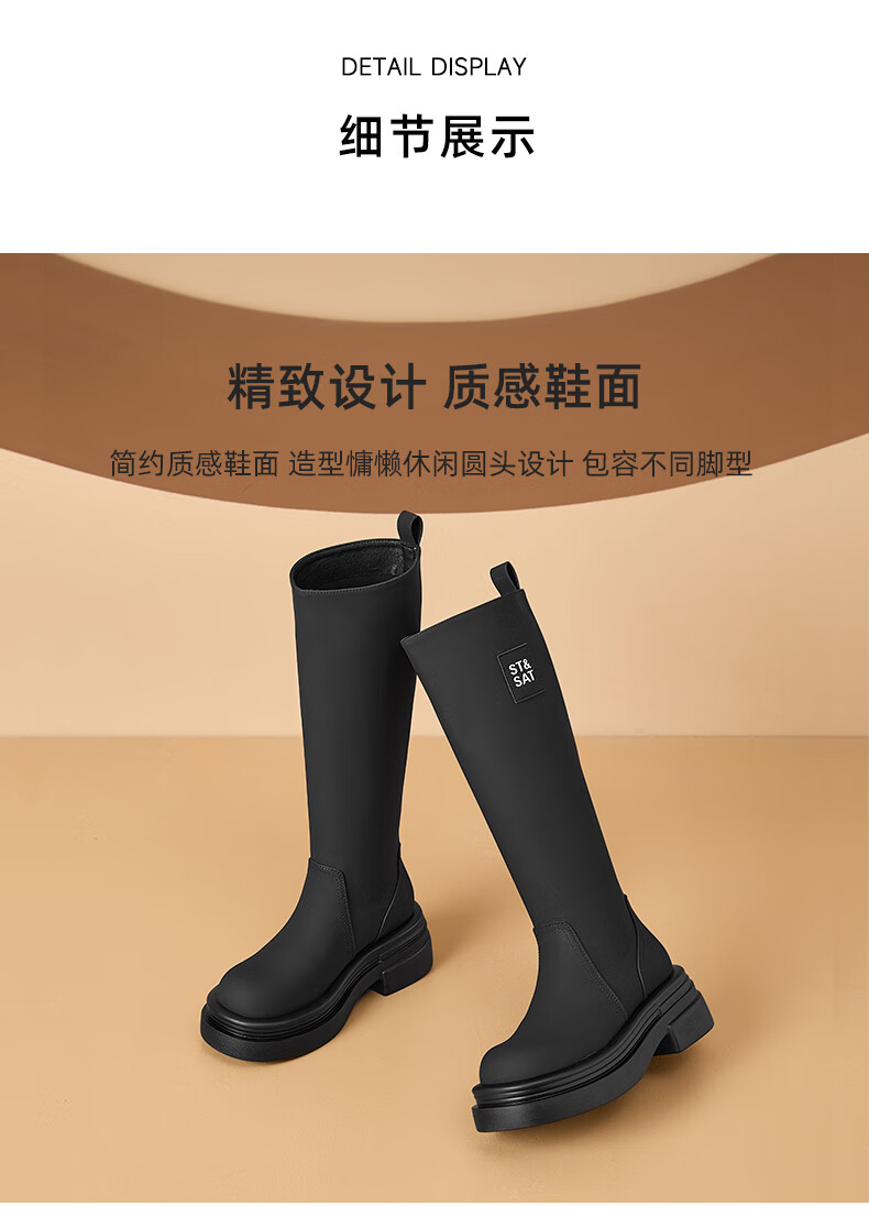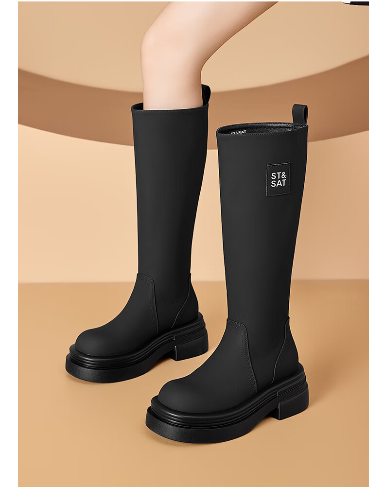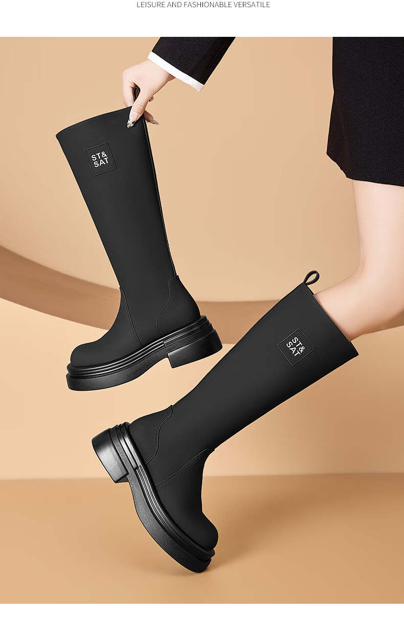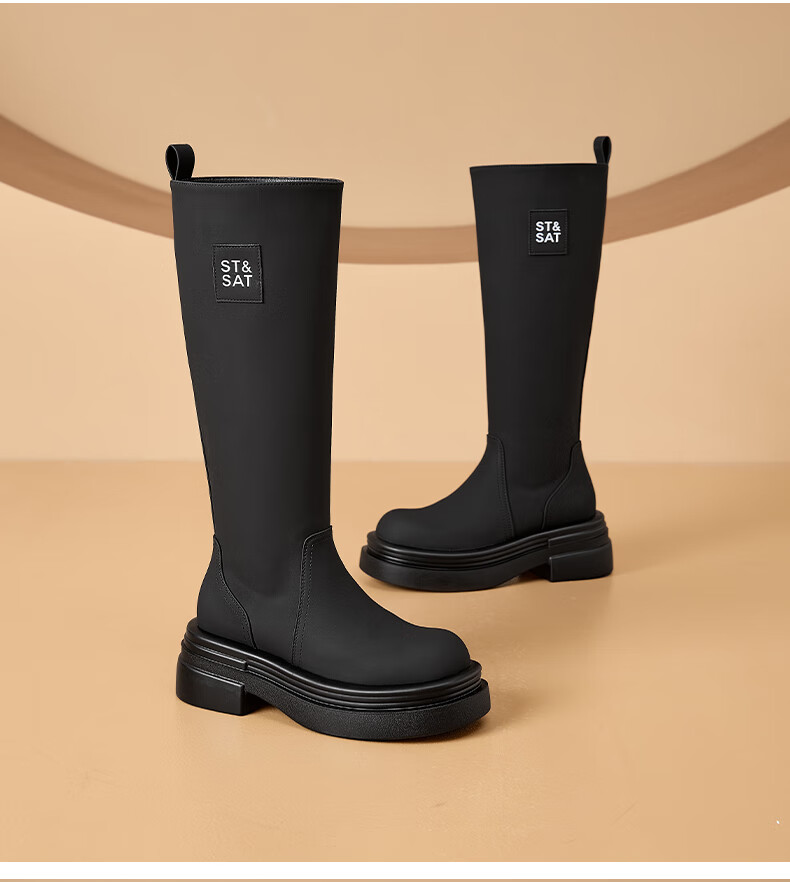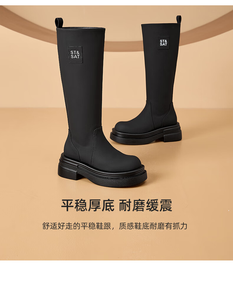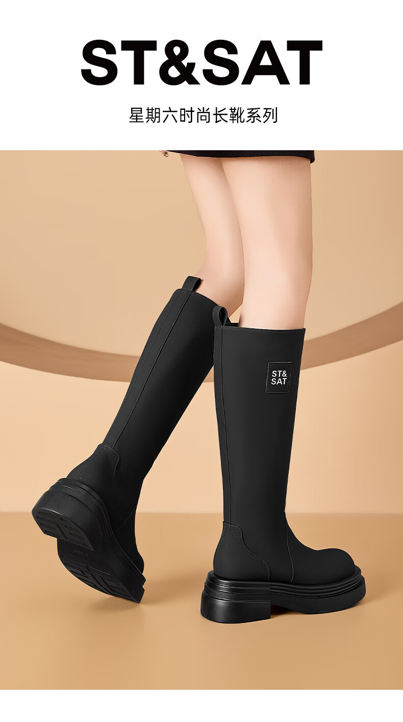 星期六(St&Sat)女2025春秋新款复古英伦风高颜值骑士靴 黑色 35