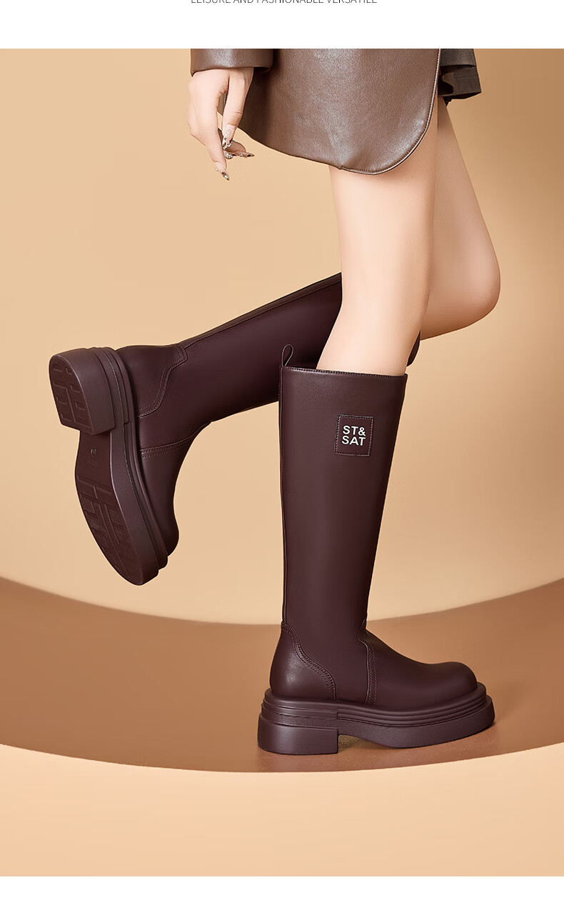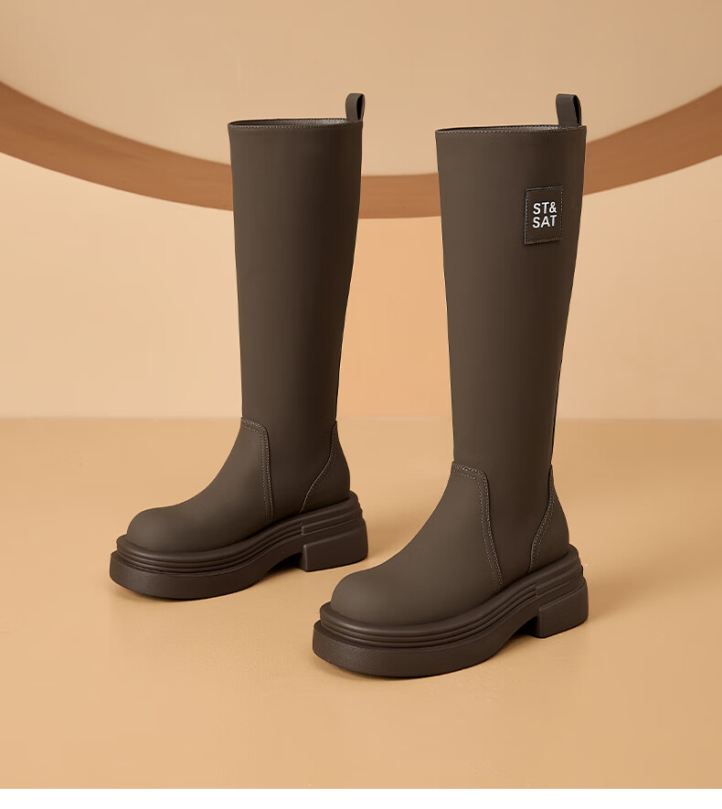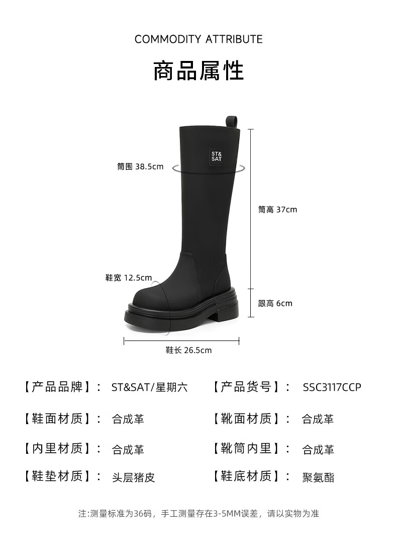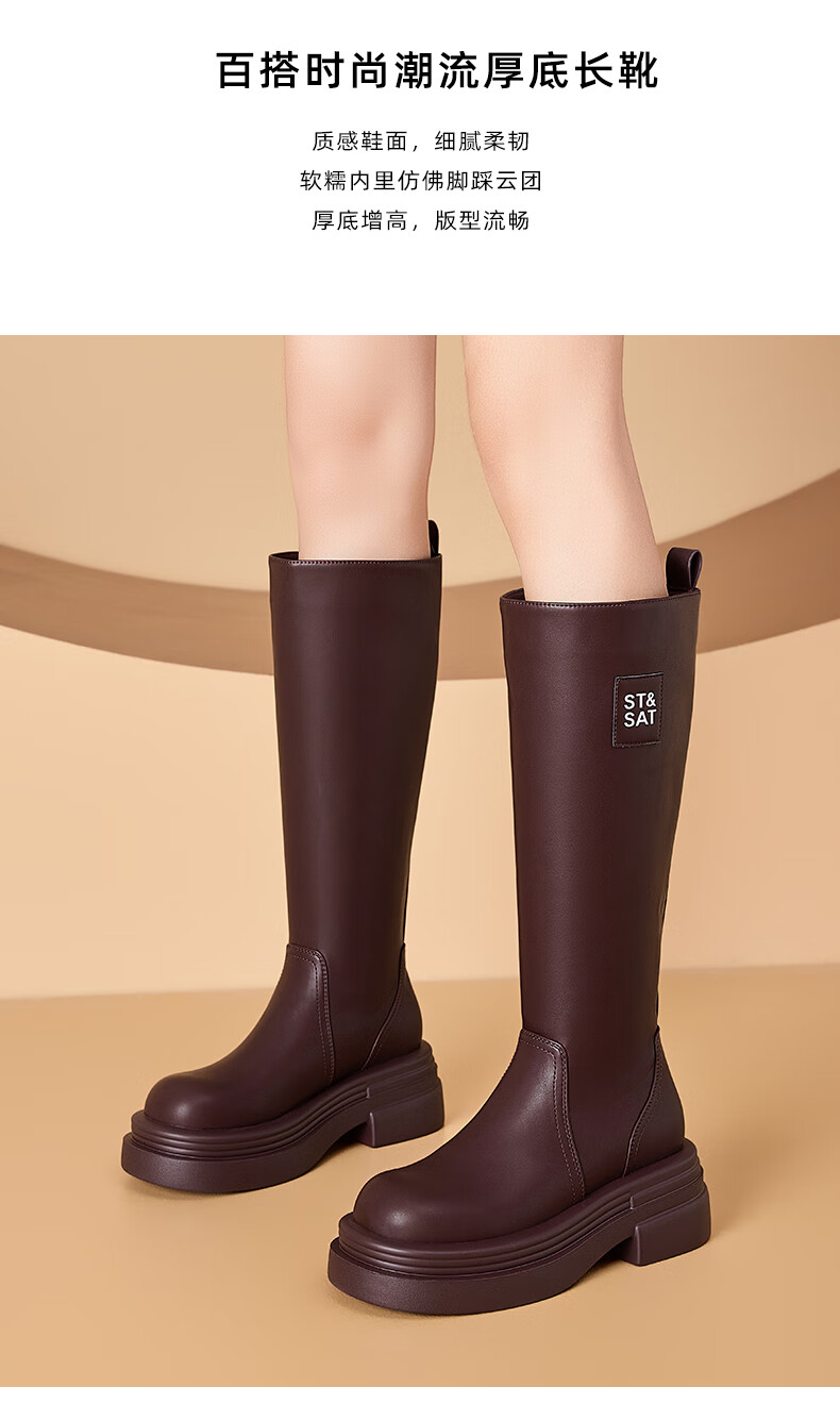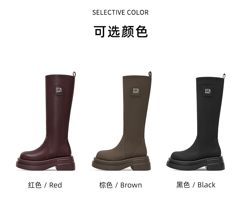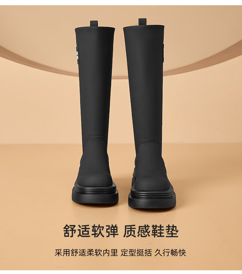 星期六(St&Sat)女2025春秋新款复古英伦风高颜值骑士靴 黑色 35