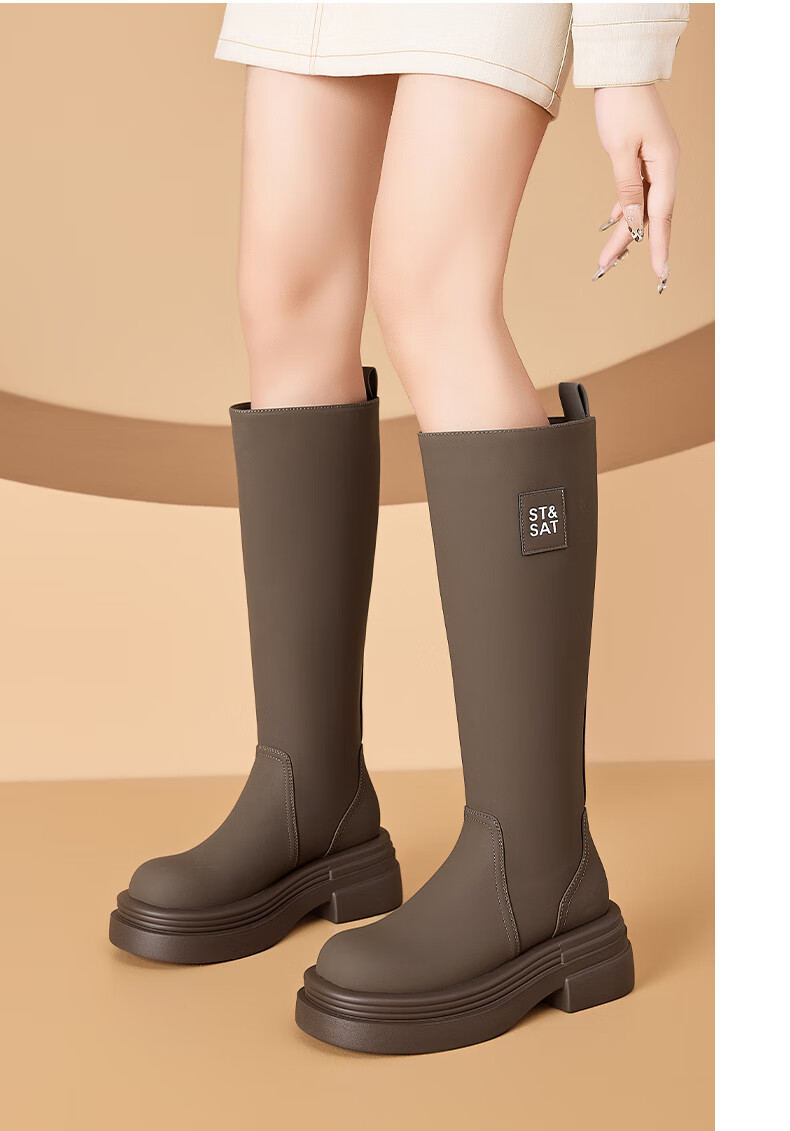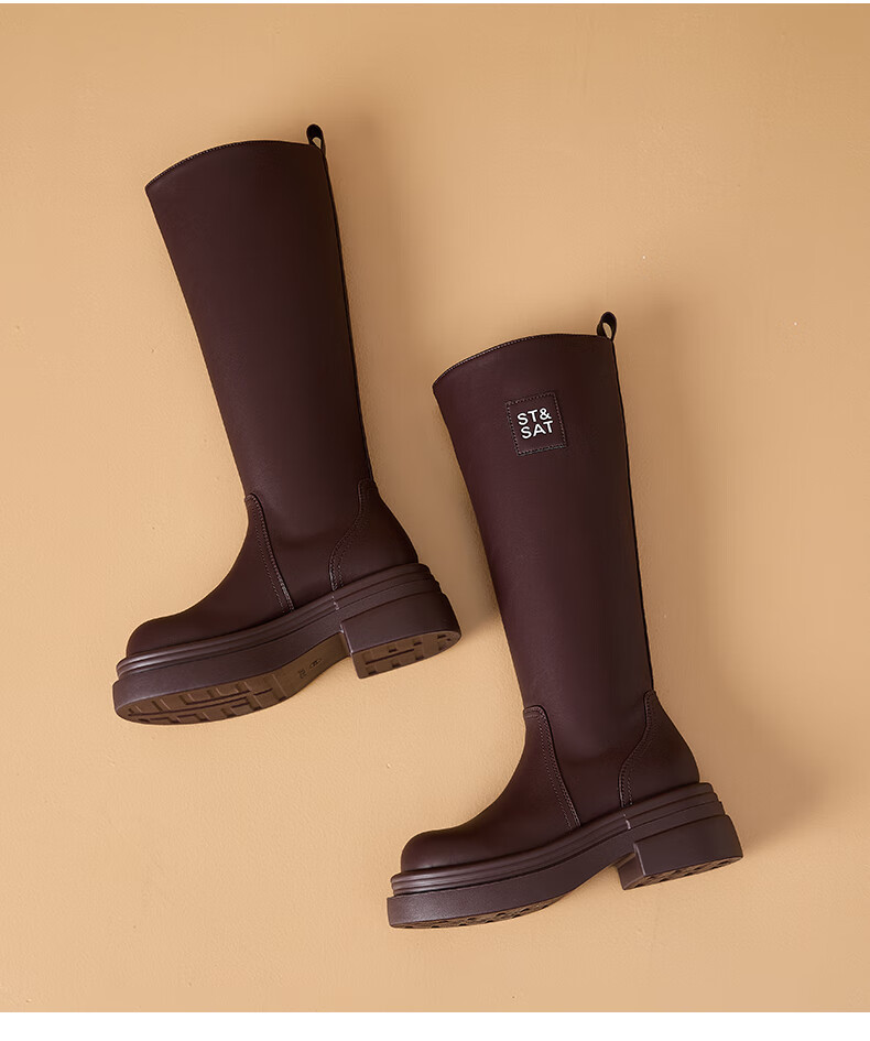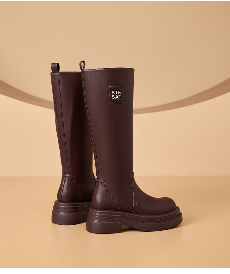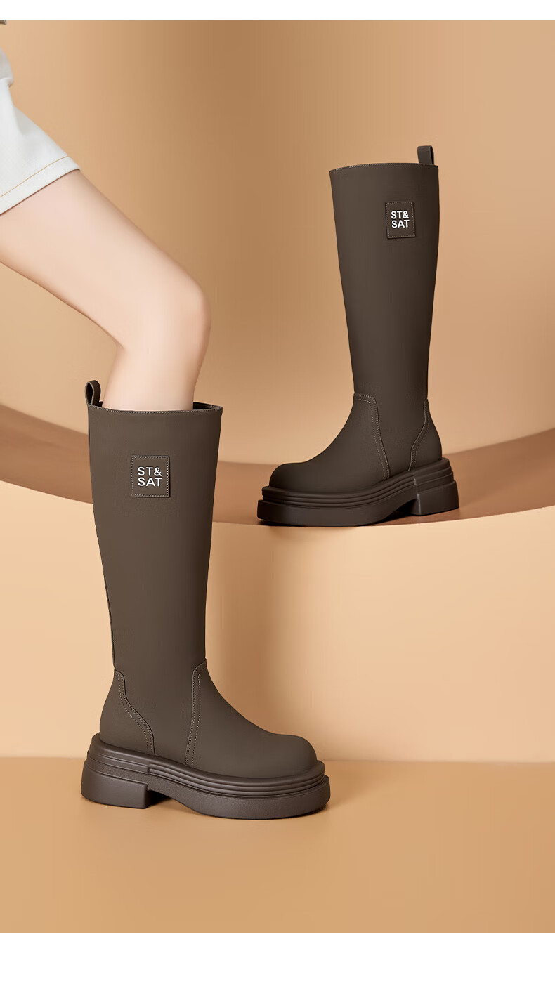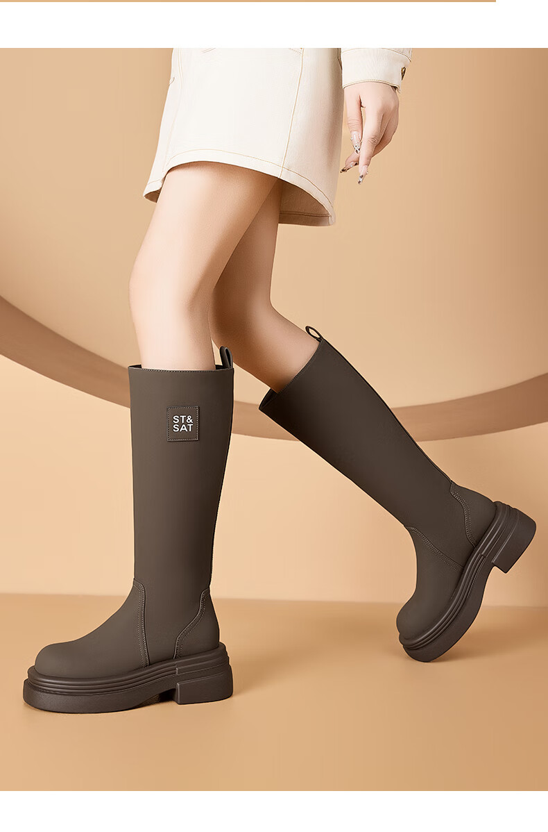 星期六(St&Sat)女2025春秋新款复古英伦风高颜值骑士靴 黑色 35