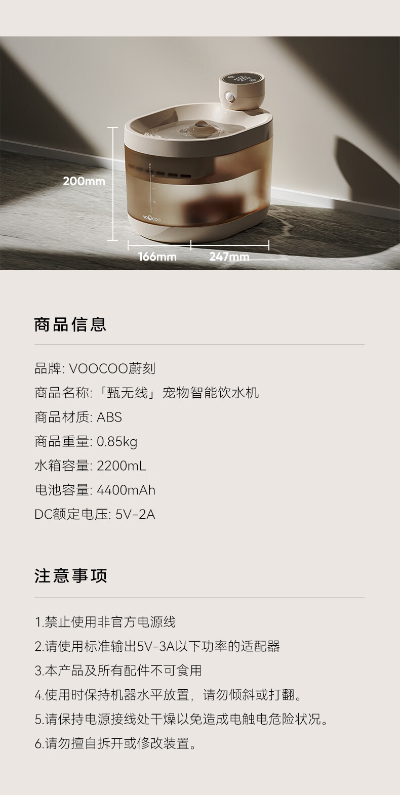 蔚刻宠物无线饮水机 猫咪喝水器自动循环活水智能感应长续航猫狗通用