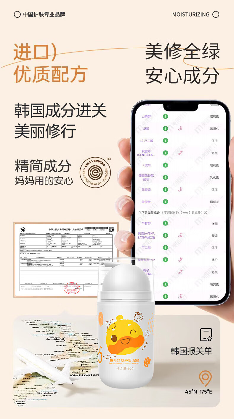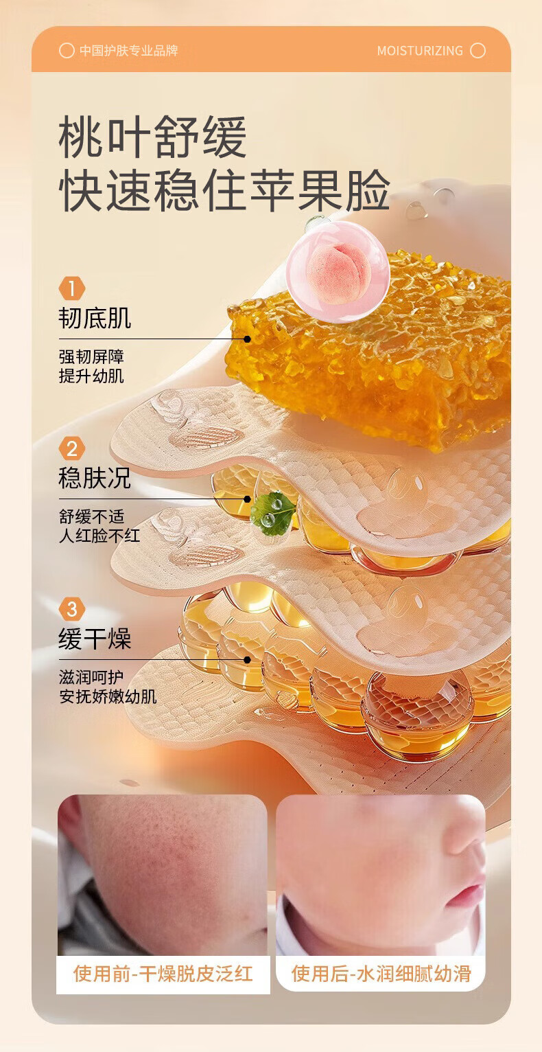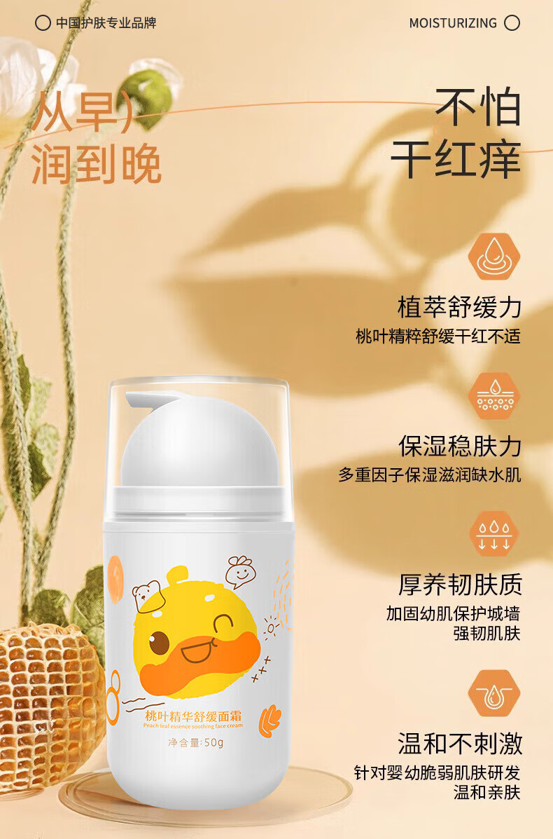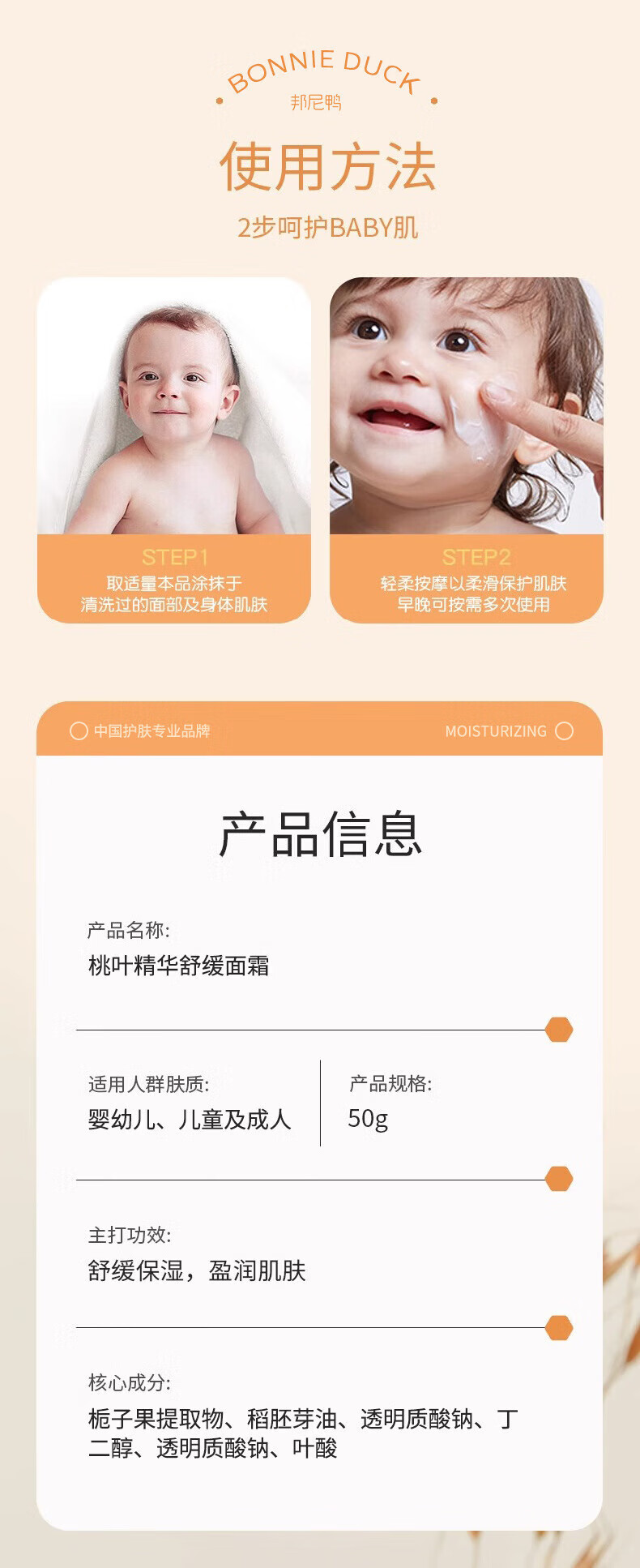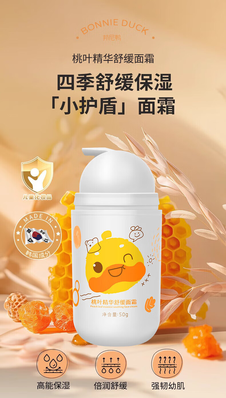 邦尼鸭(BONNIE DUCK)儿童桃叶精华舒缓面霜秋冬季宝宝面霜滋润补水婴儿润肤霜厂家直销 桃叶精华舒缓面霜50g