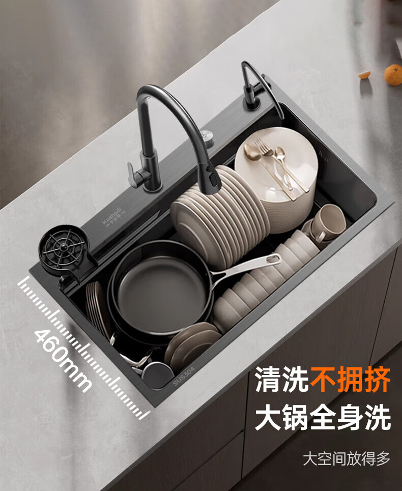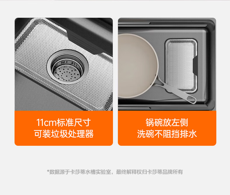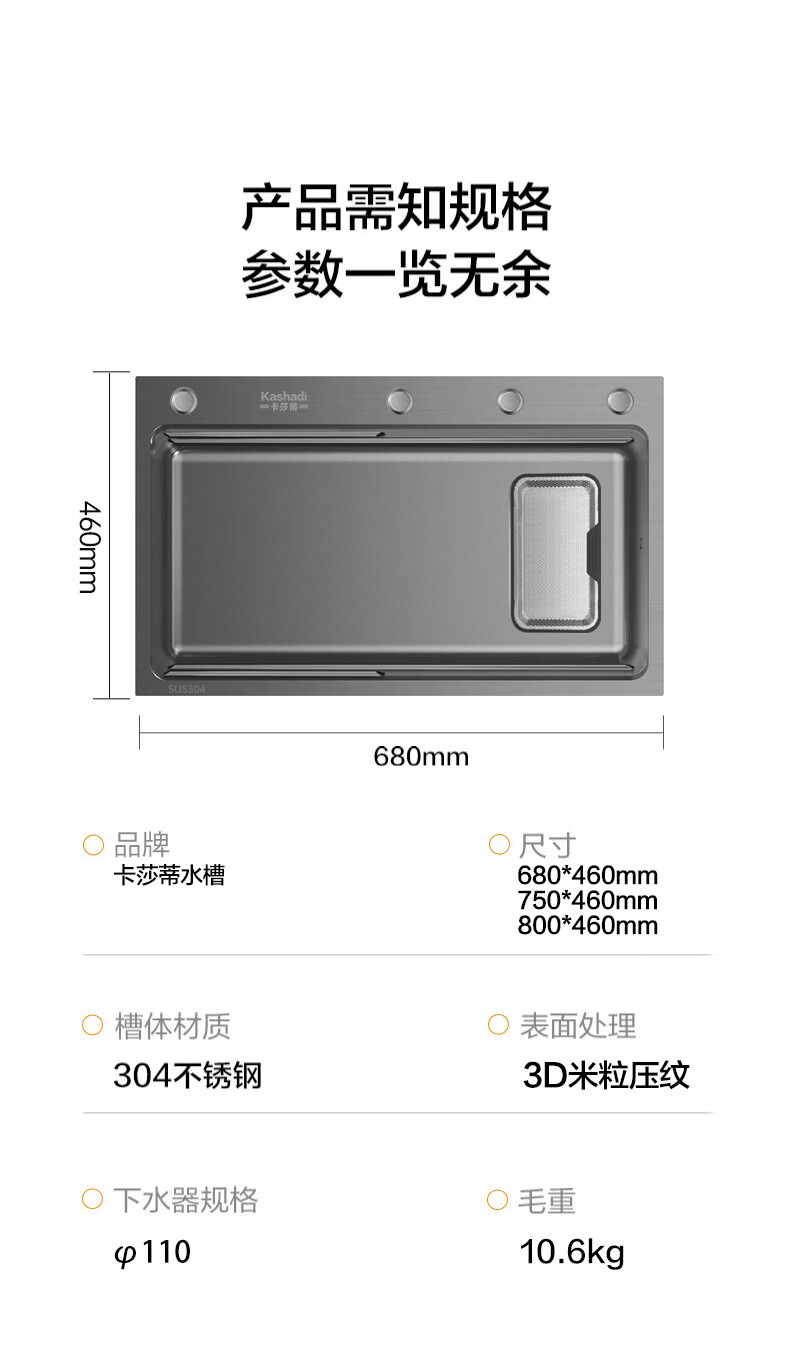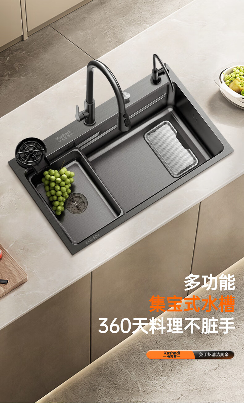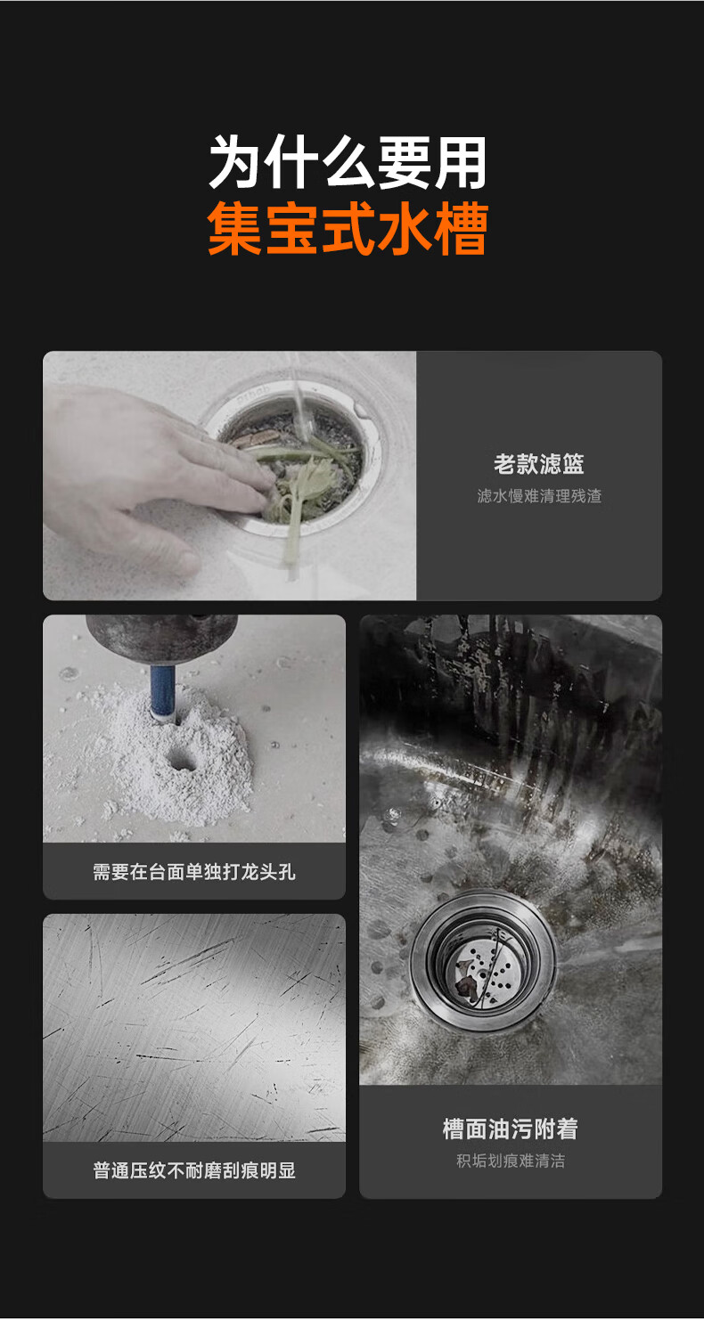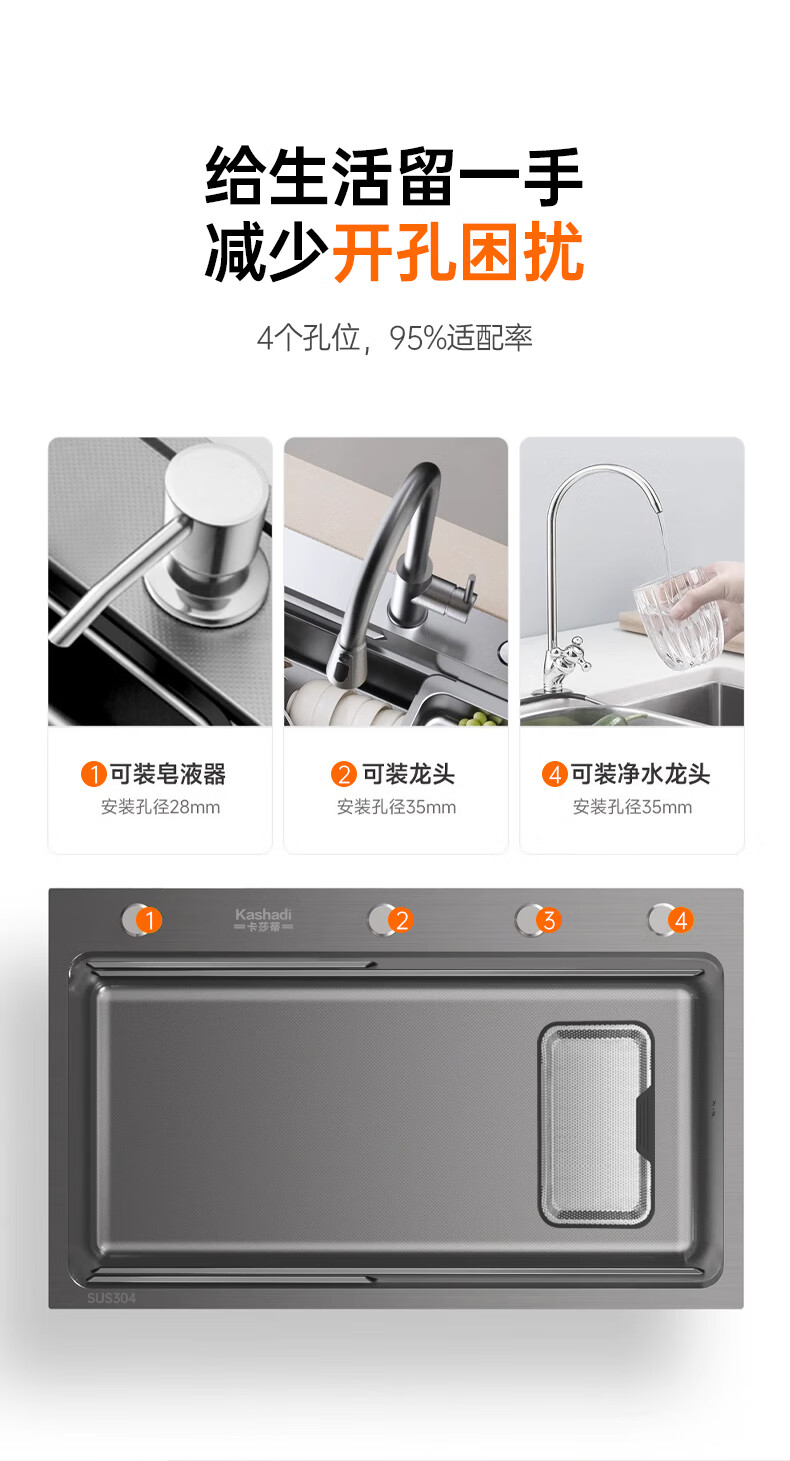 卡莎蒂5.0加厚水槽大单槽厨房水槽304不锈钢洗菜盆一体盆压纹集渣盆四孔 5.0加厚【75*46cm】4孔集渣-满配
