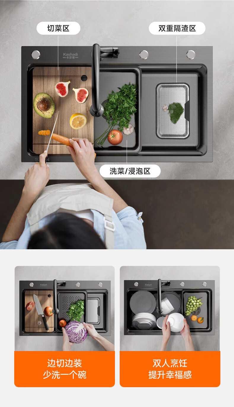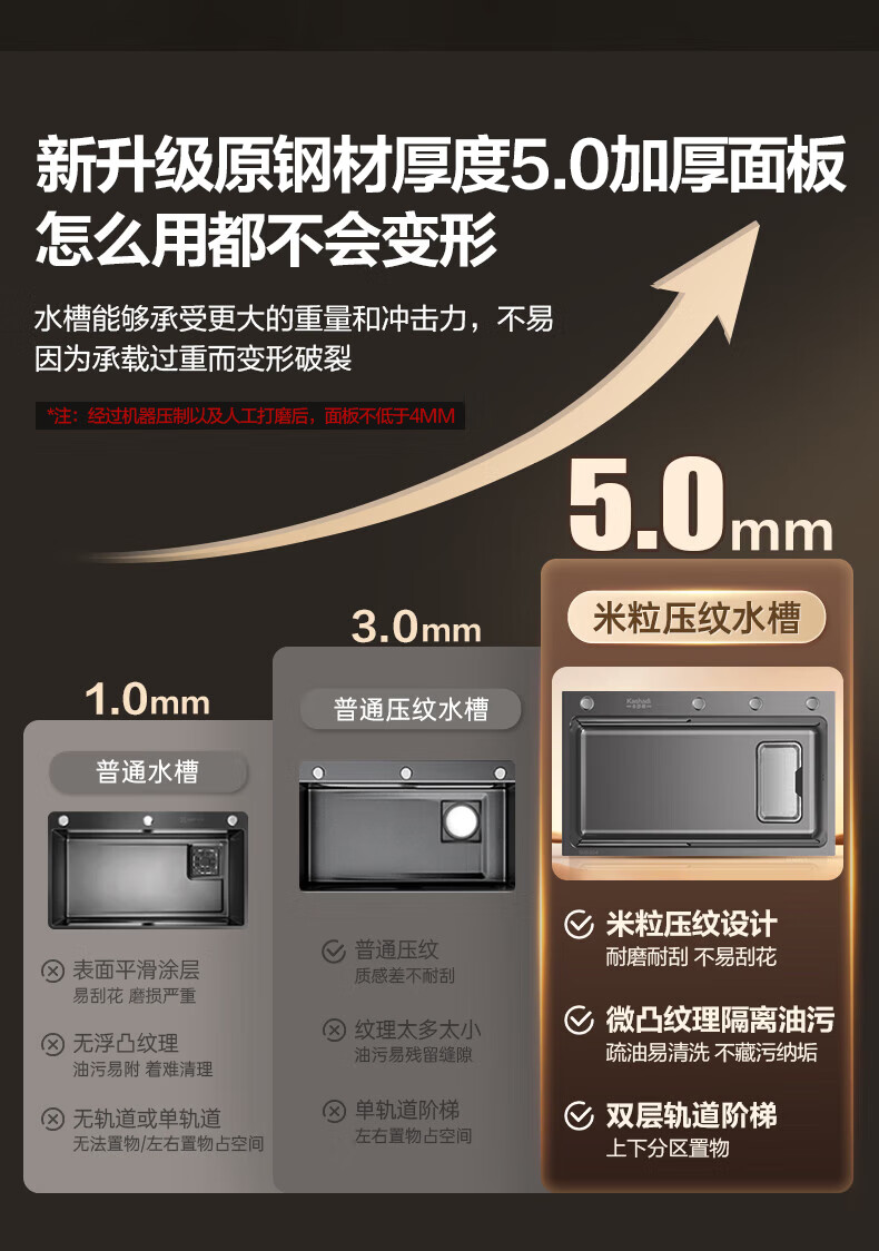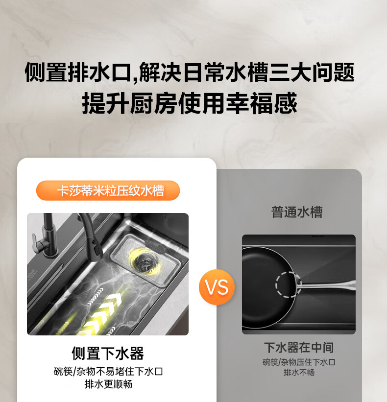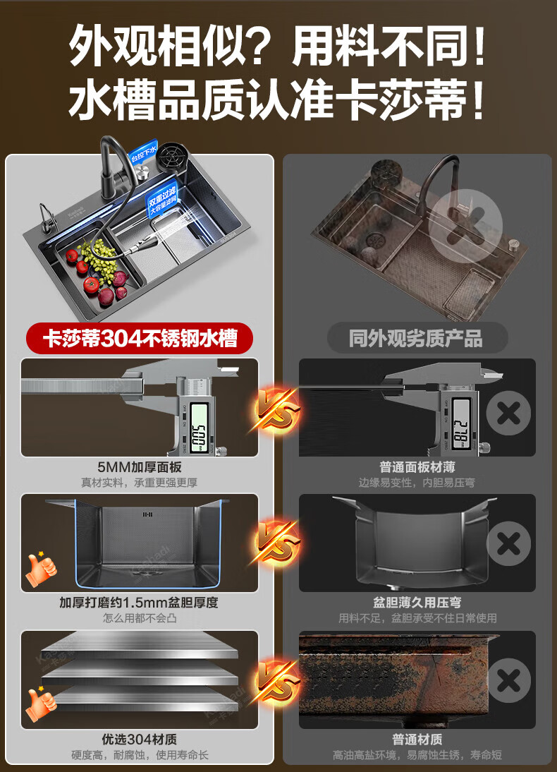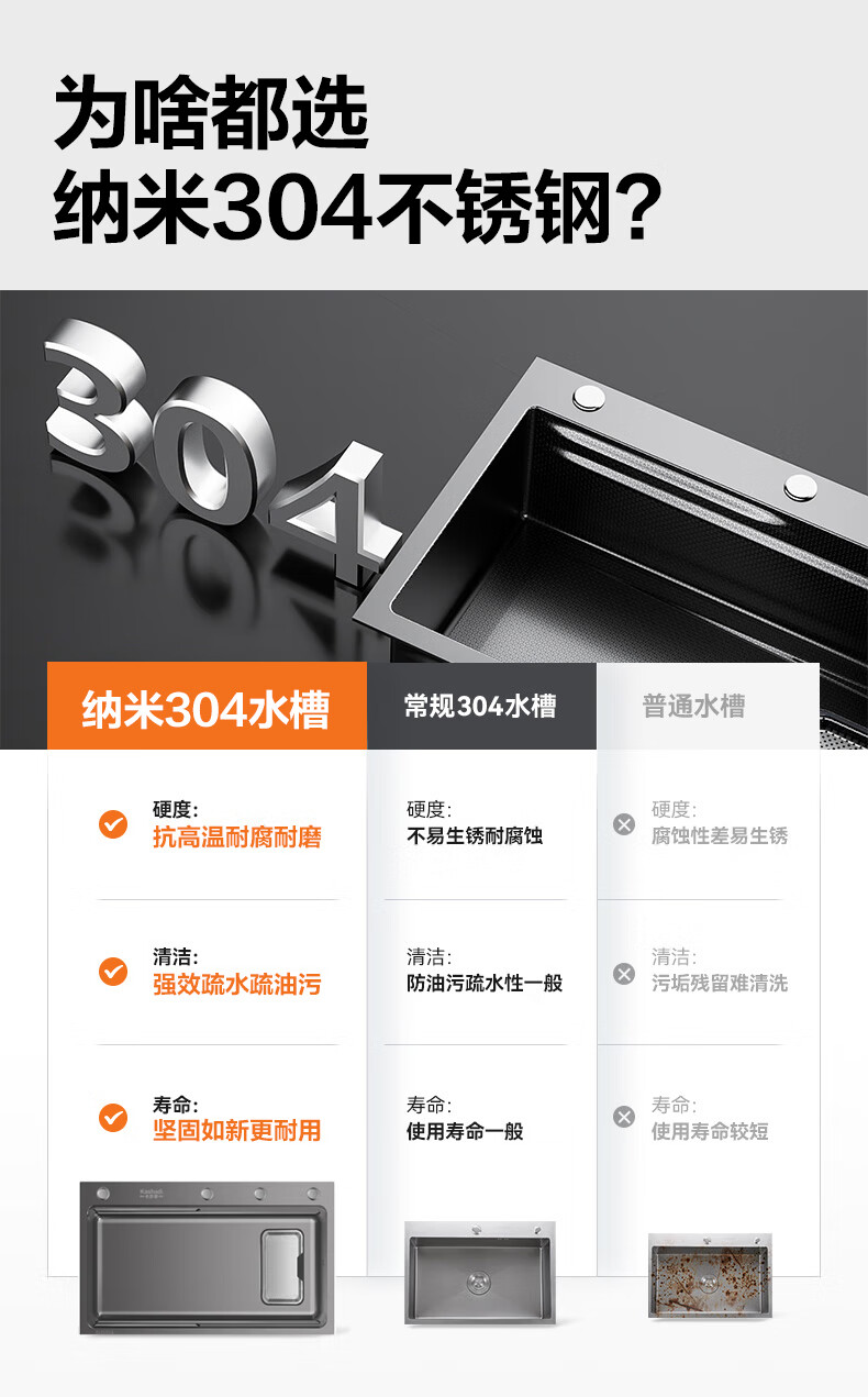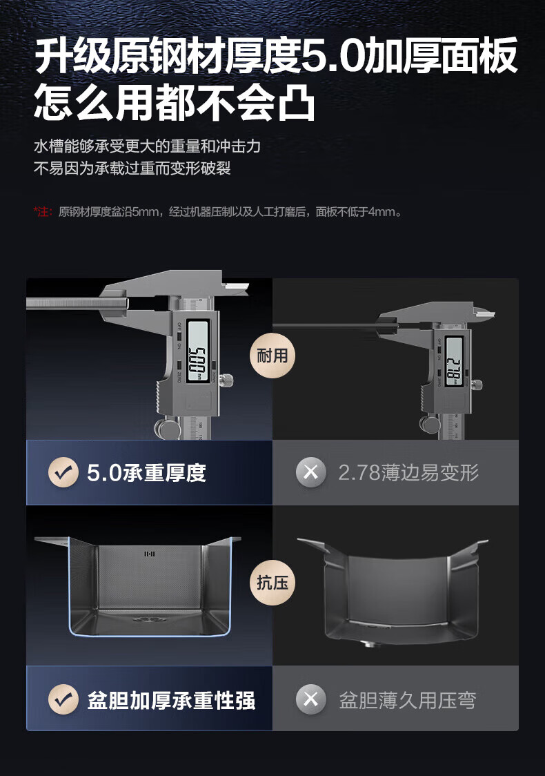 卡莎蒂5.0加厚水槽大单槽厨房水槽304不锈钢洗菜盆一体盆压纹集渣盆四孔 5.0加厚【75*46cm】4孔集渣-满配
