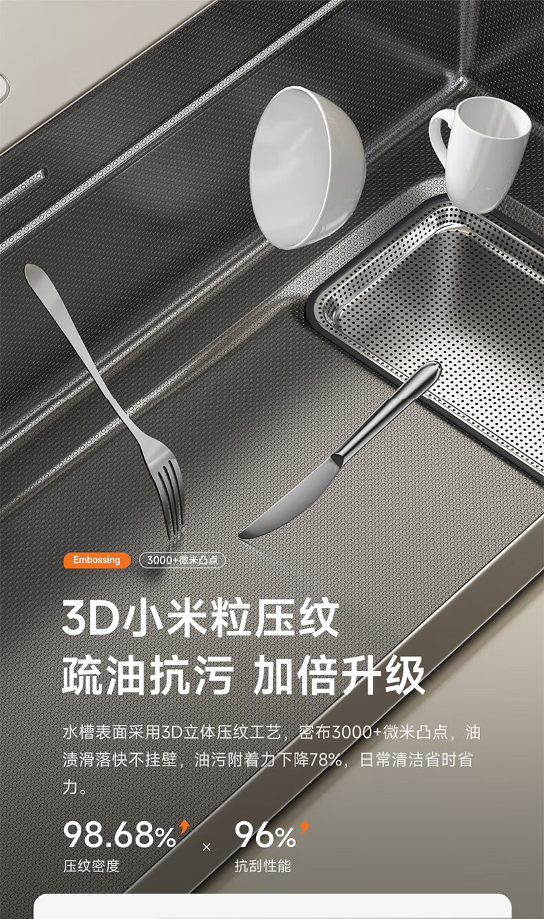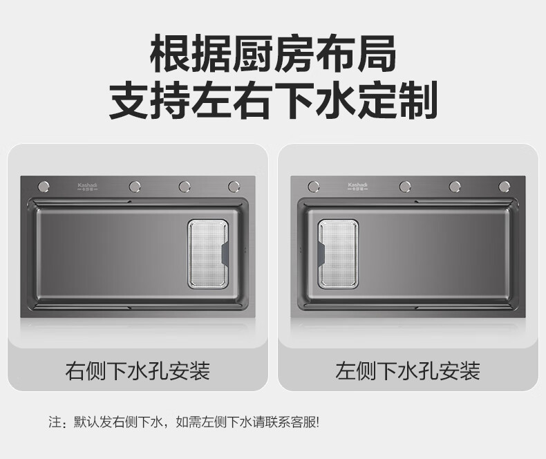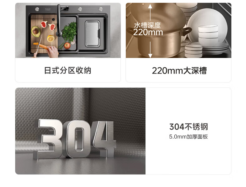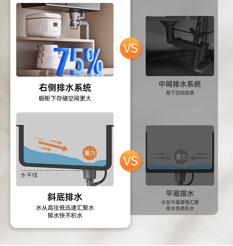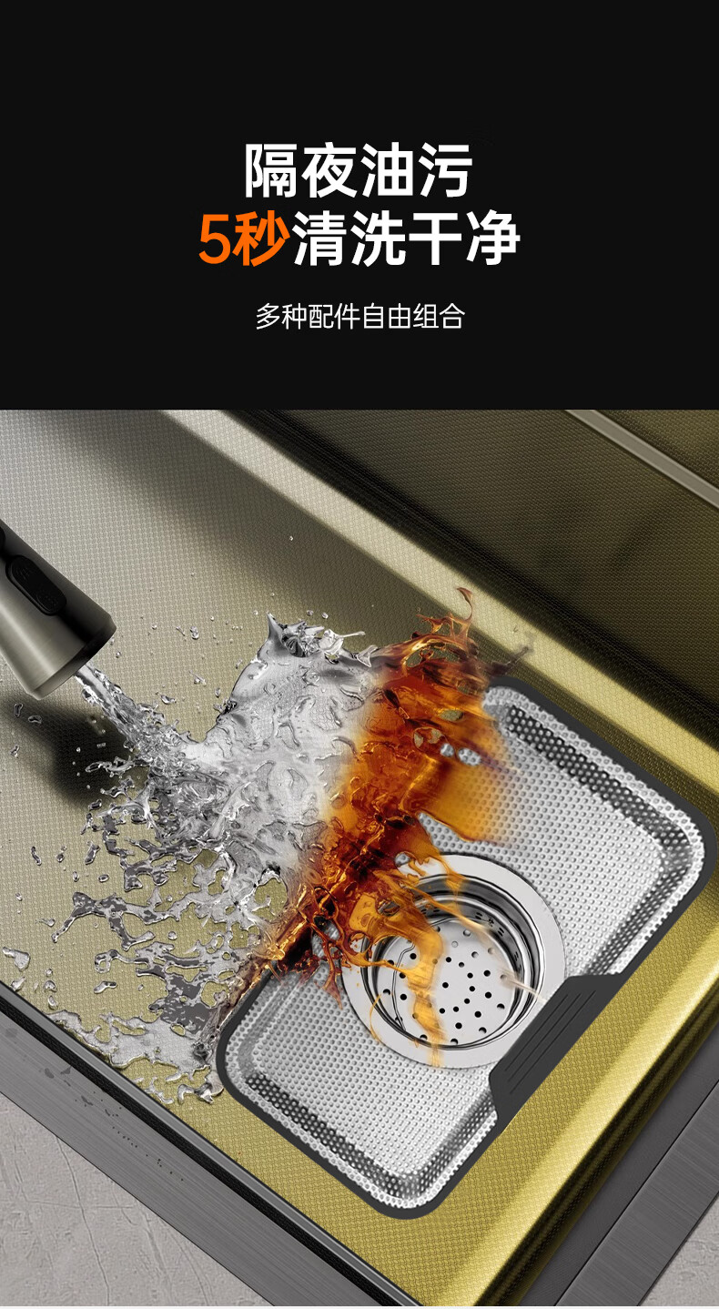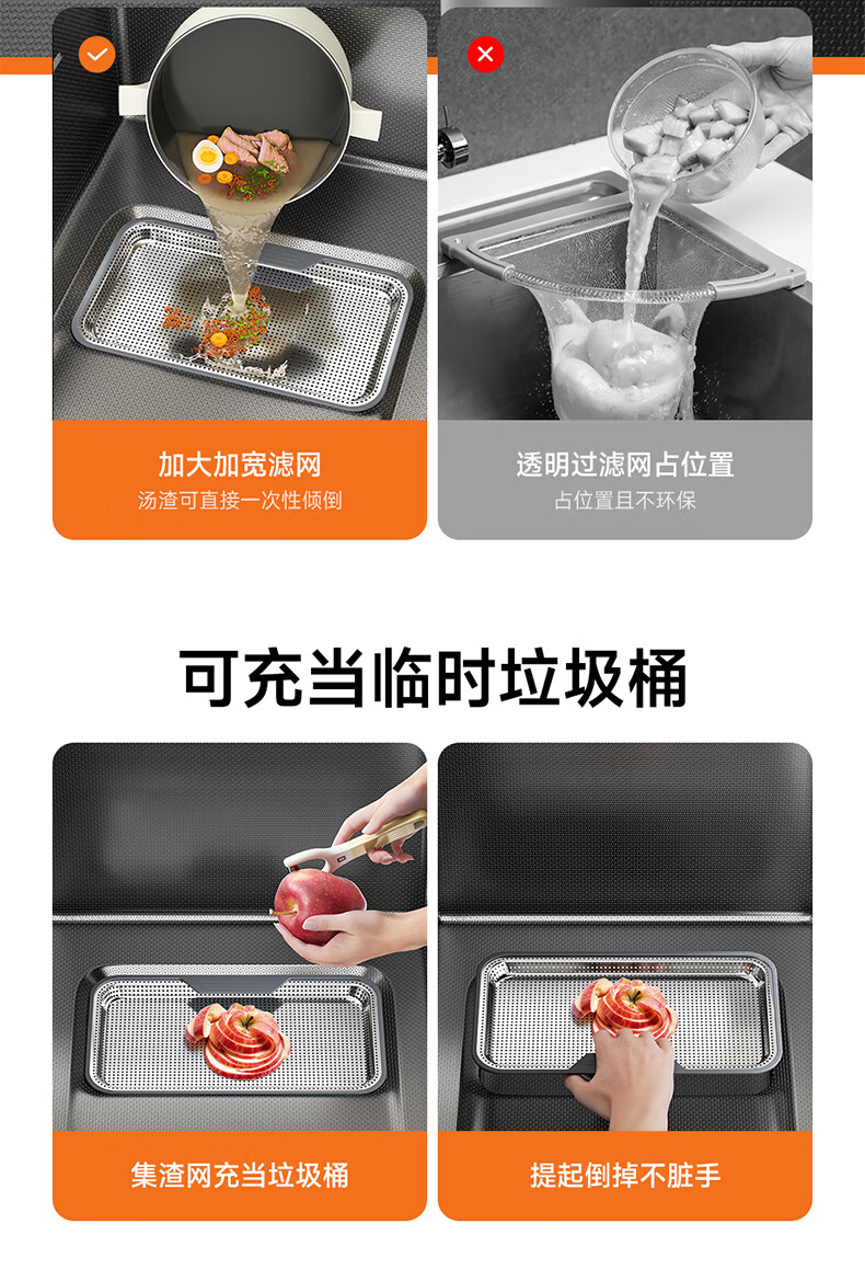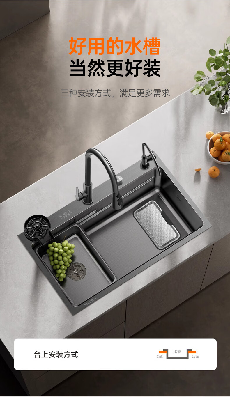 卡莎蒂5.0加厚水槽大单槽厨房水槽304不锈钢洗菜盆一体盆压纹集渣盆四孔 5.0加厚【75*46cm】4孔集渣-满配