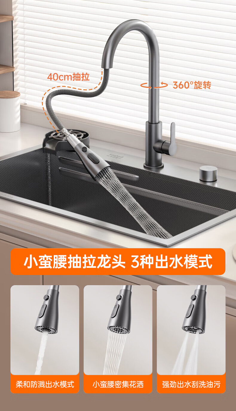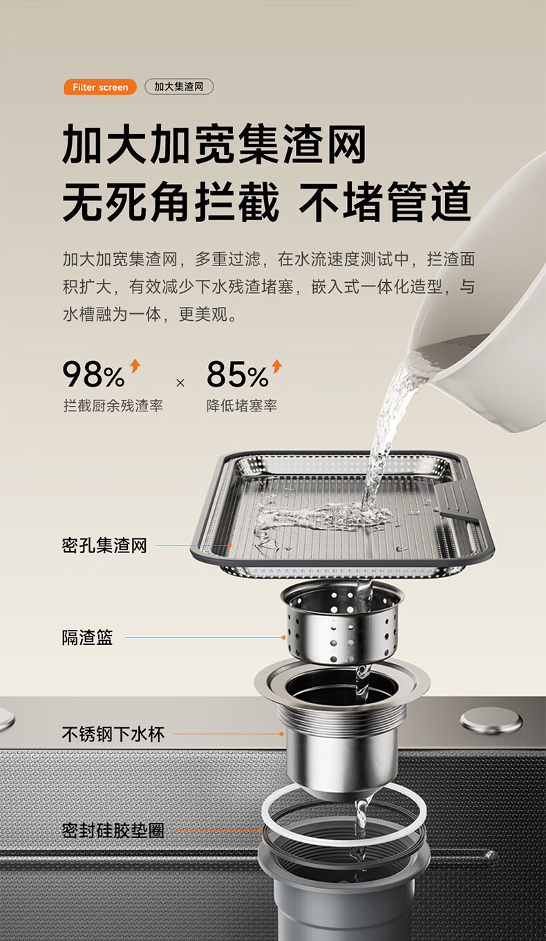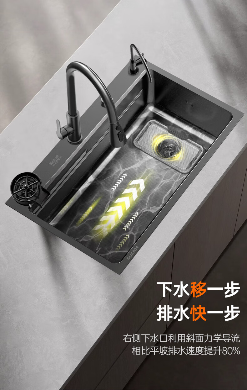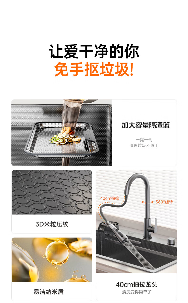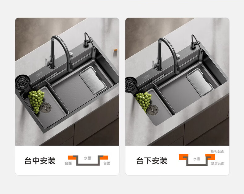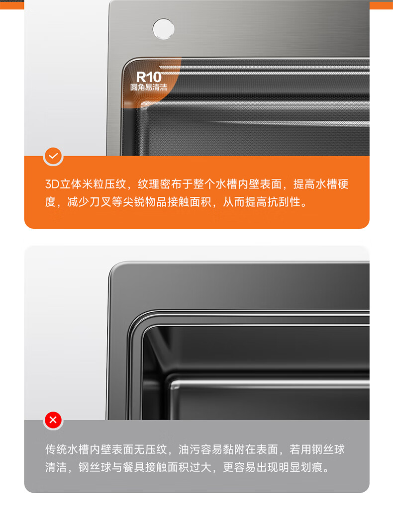卡莎蒂5.0加厚水槽大单槽厨房水槽304不锈钢洗菜盆一体盆压纹集渣盆四孔 5.0加厚【75*46cm】4孔集渣-满配