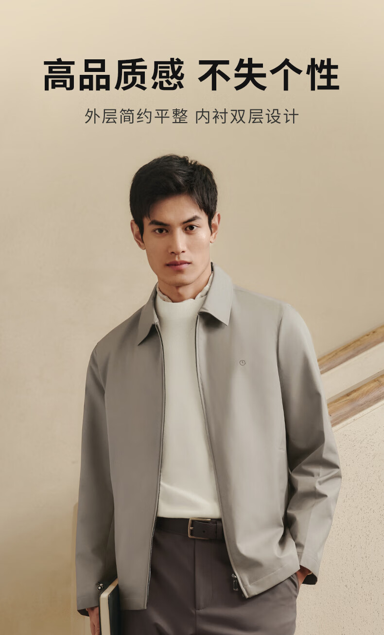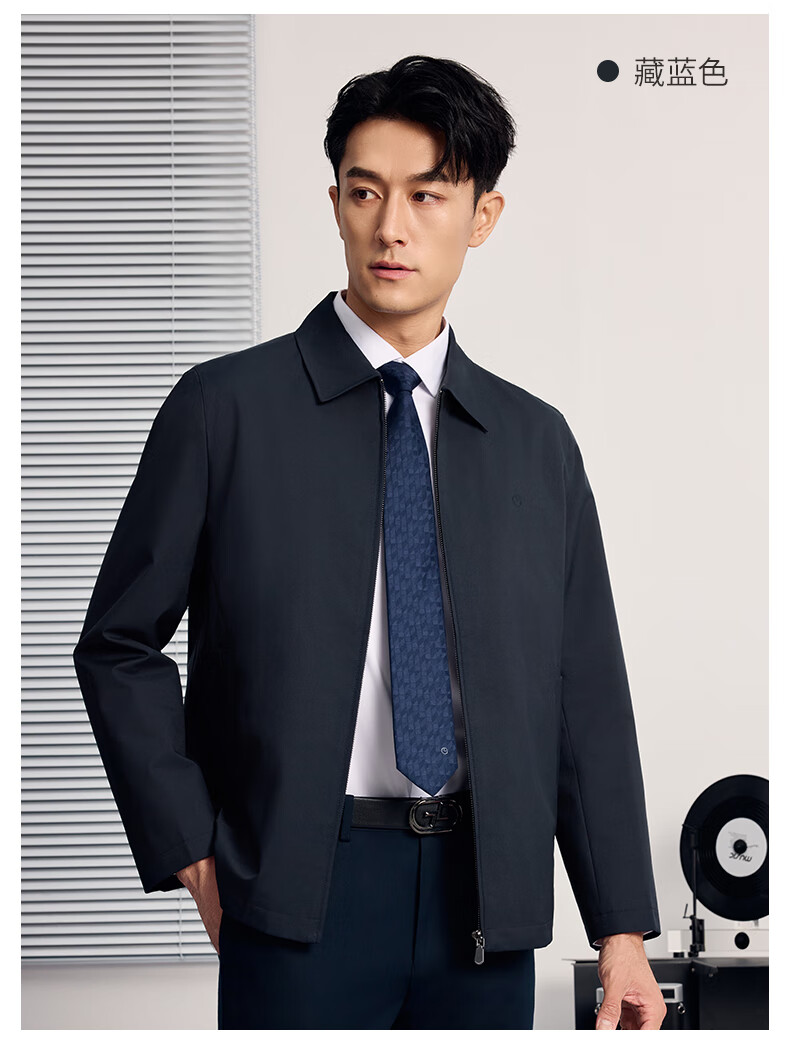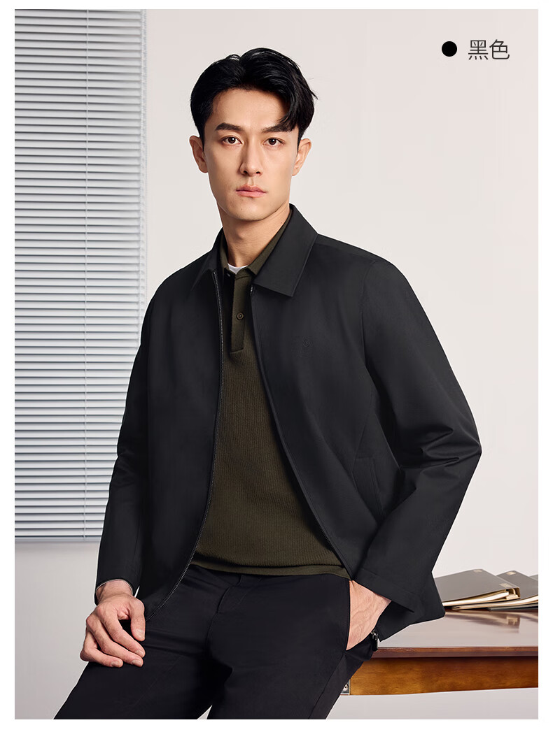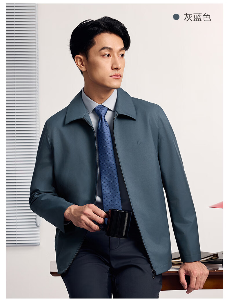 金利来【防水防油防污】秋季男士行政夹克易打理翻领商务外套 灰蓝 M