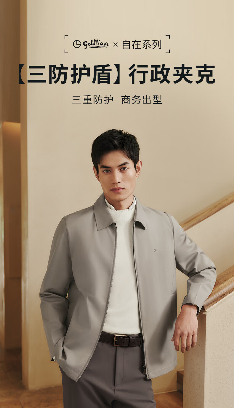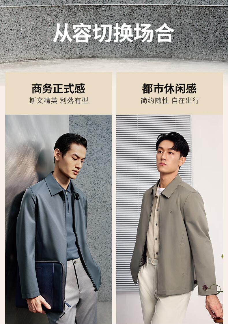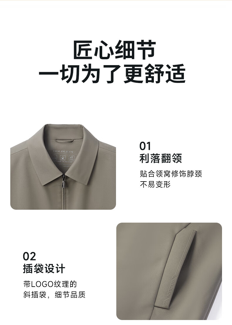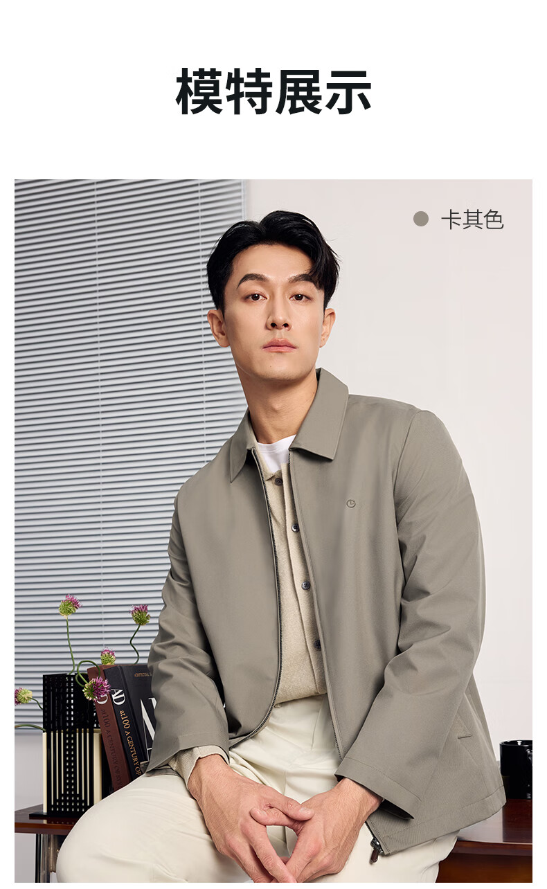金利来【防水防油防污】秋季男士行政夹克易打理翻领商务外套 灰蓝 M