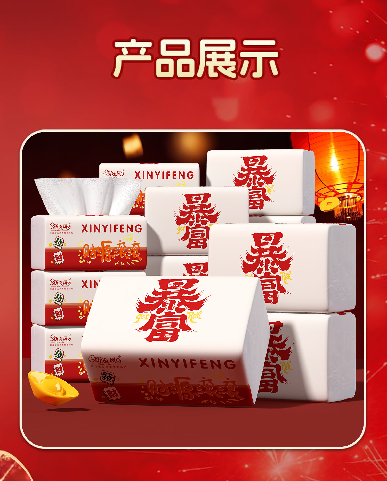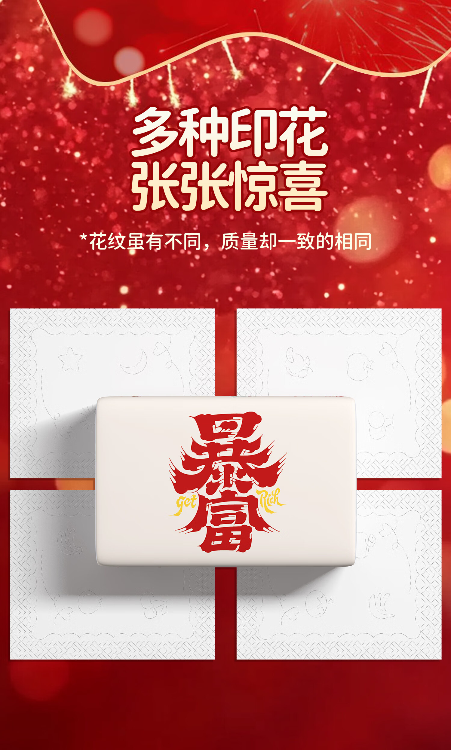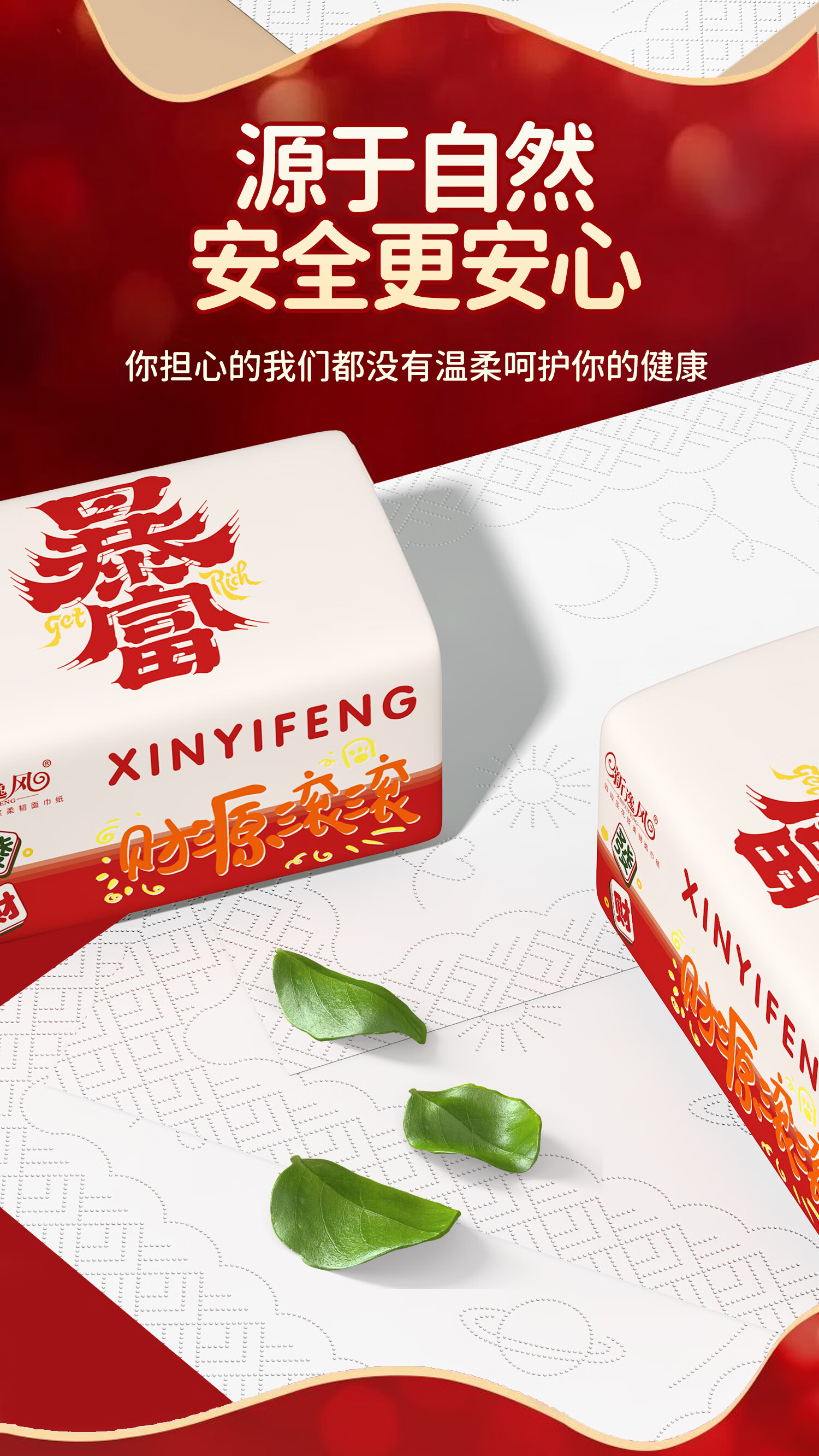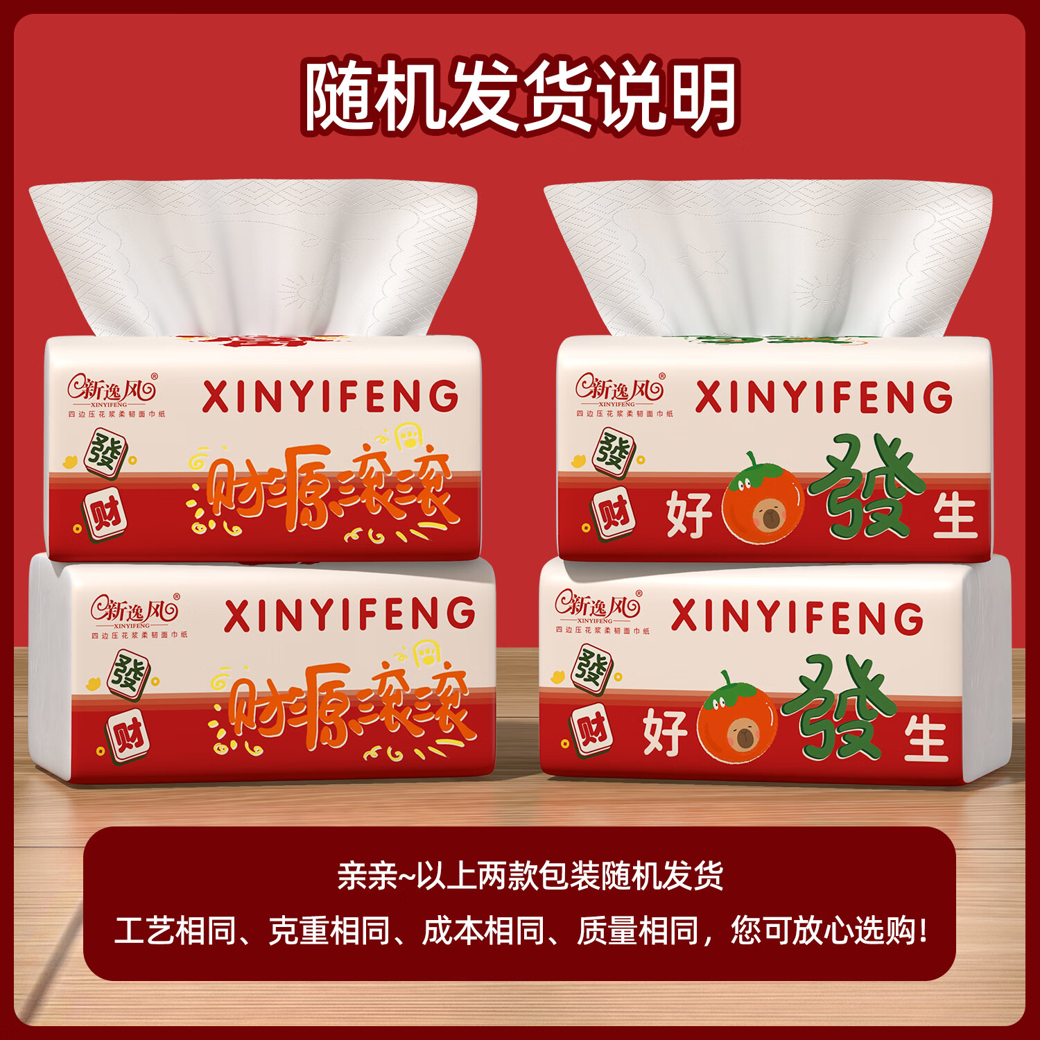 新逸风400张四边压花抽纸大包家用卫生纸面巾纸整箱批发餐巾纸 【马年限定】 5层 400张*24包