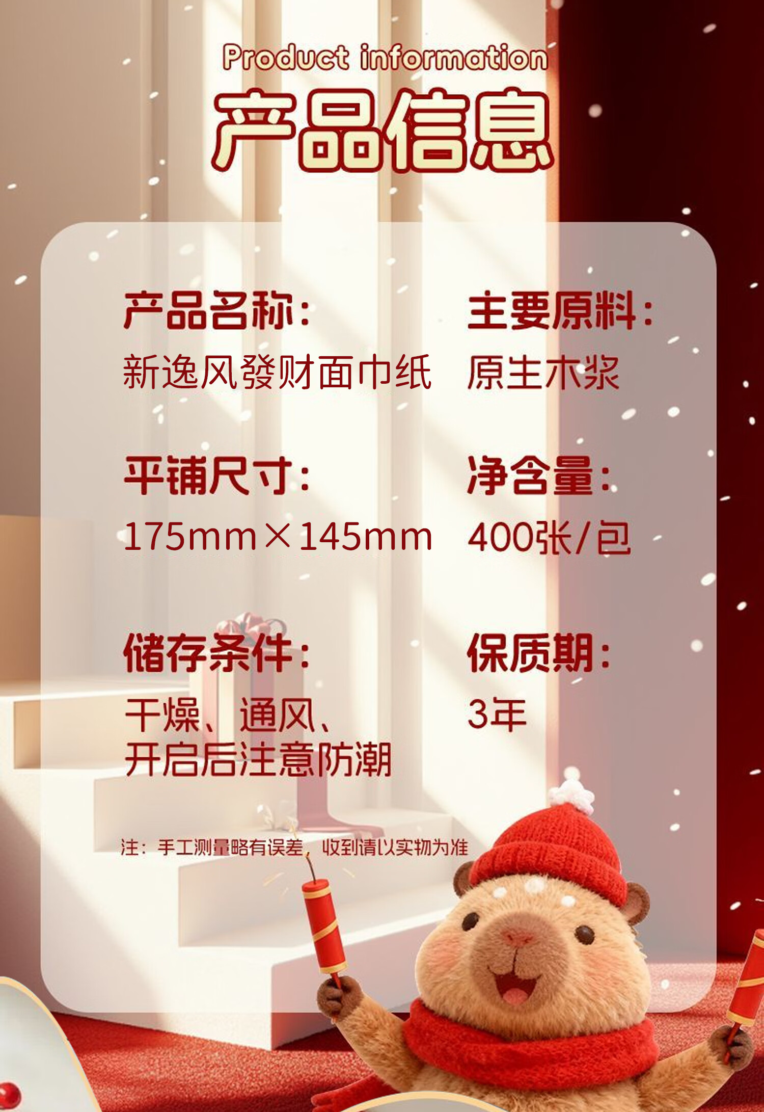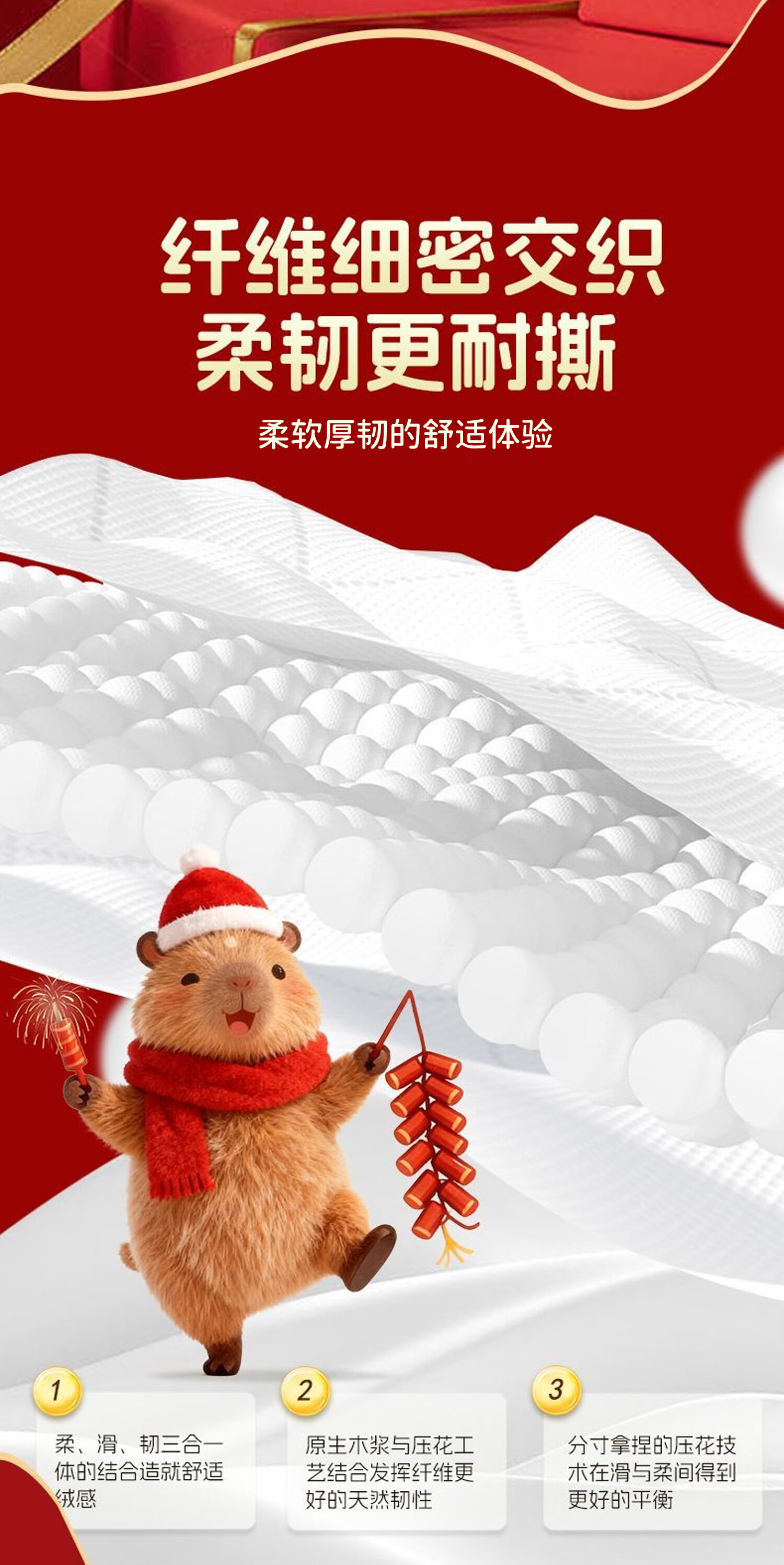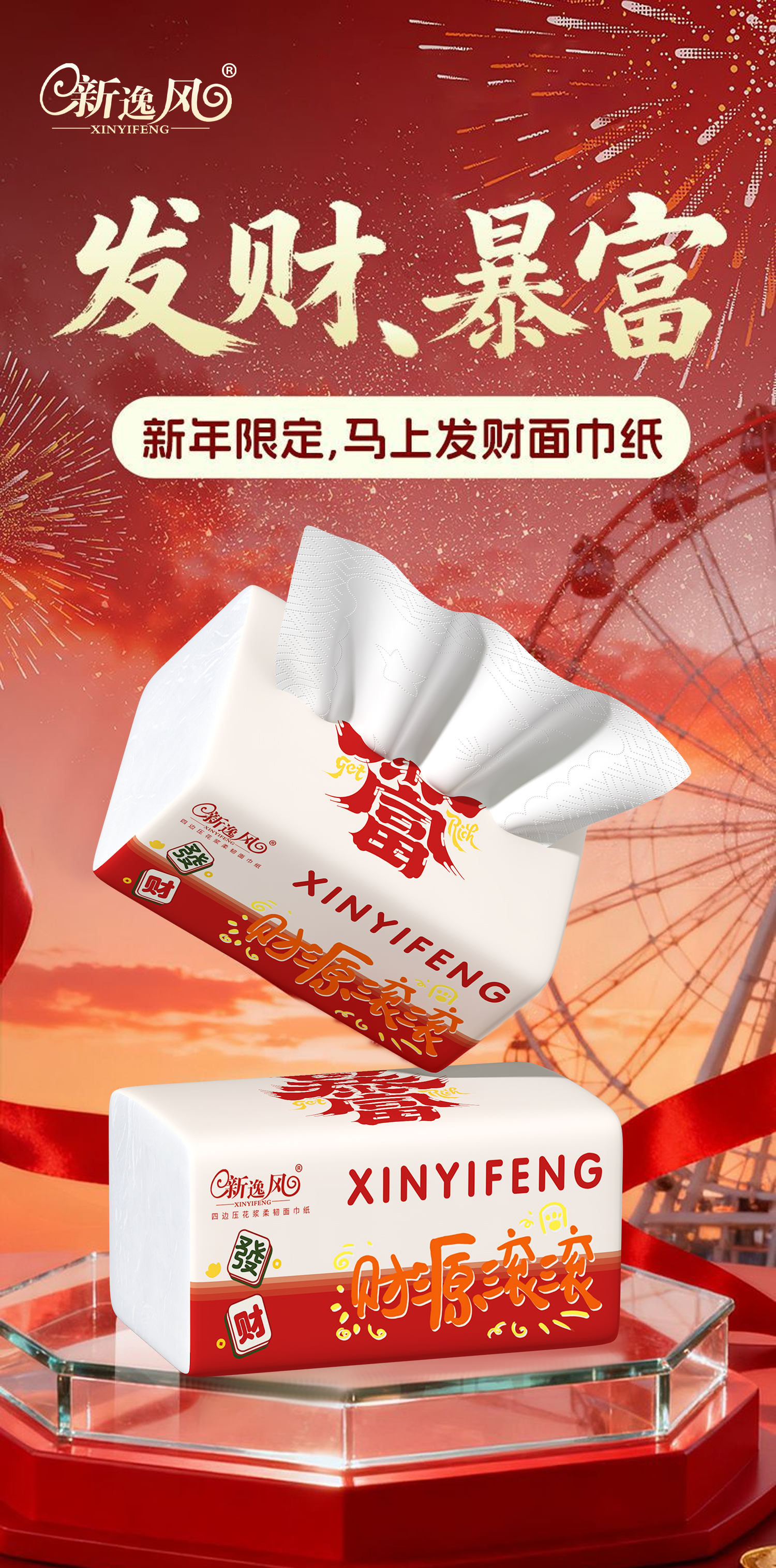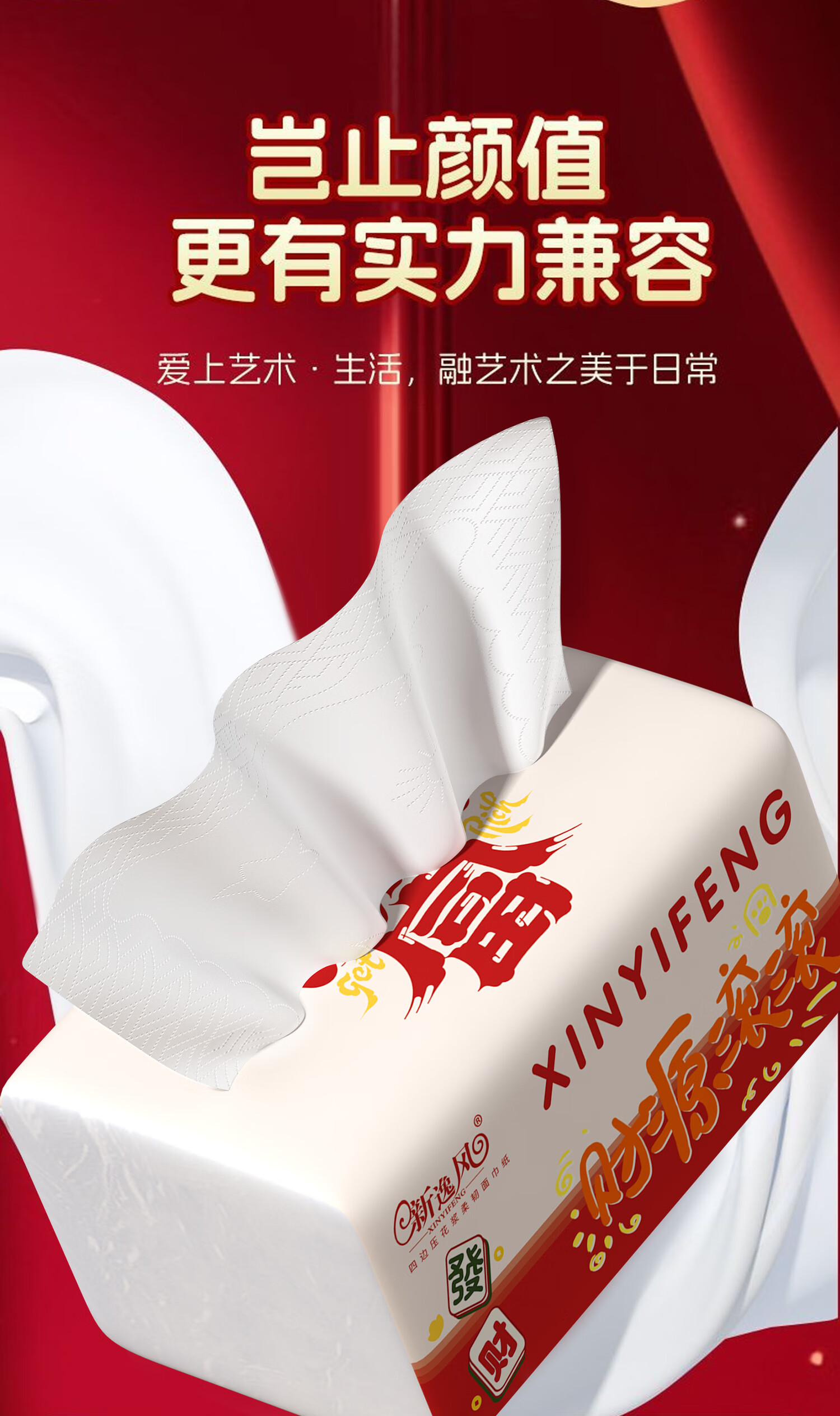 新逸风400张四边压花抽纸大包家用卫生纸面巾纸整箱批发餐巾纸 【马年限定】 5层 400张*24包