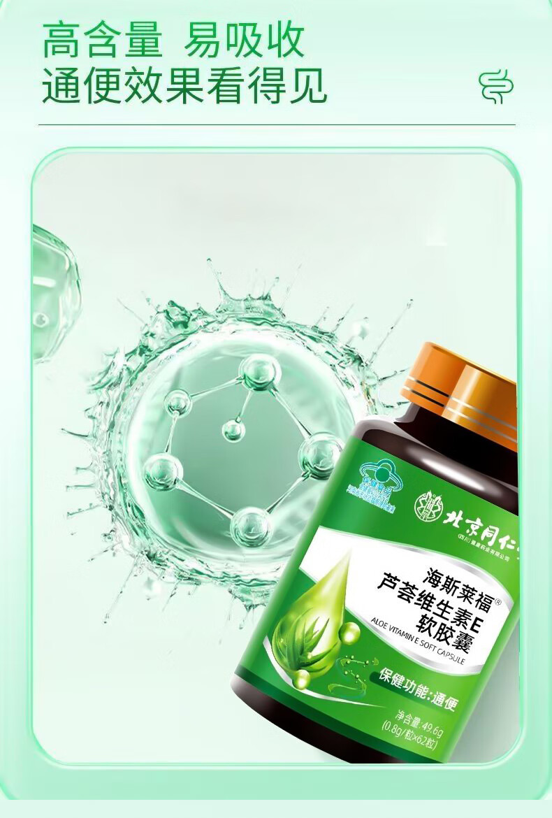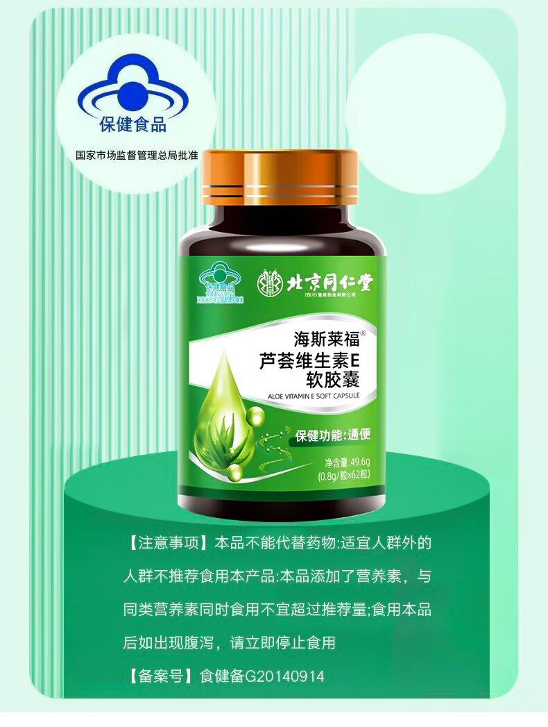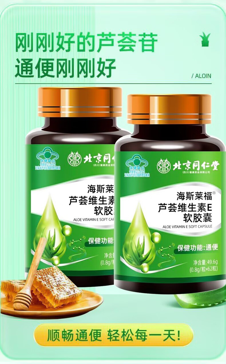 同仁堂北京朕皇蓝帽认证 通便 芦荟通便胶囊 软胶囊排宿成人中老人便秘 【1瓶62粒】【芦荟通便 62粒*1瓶