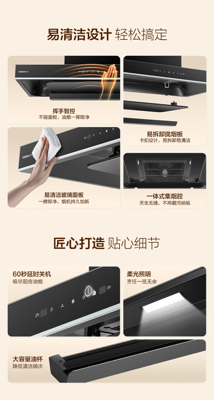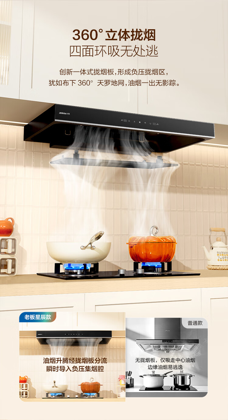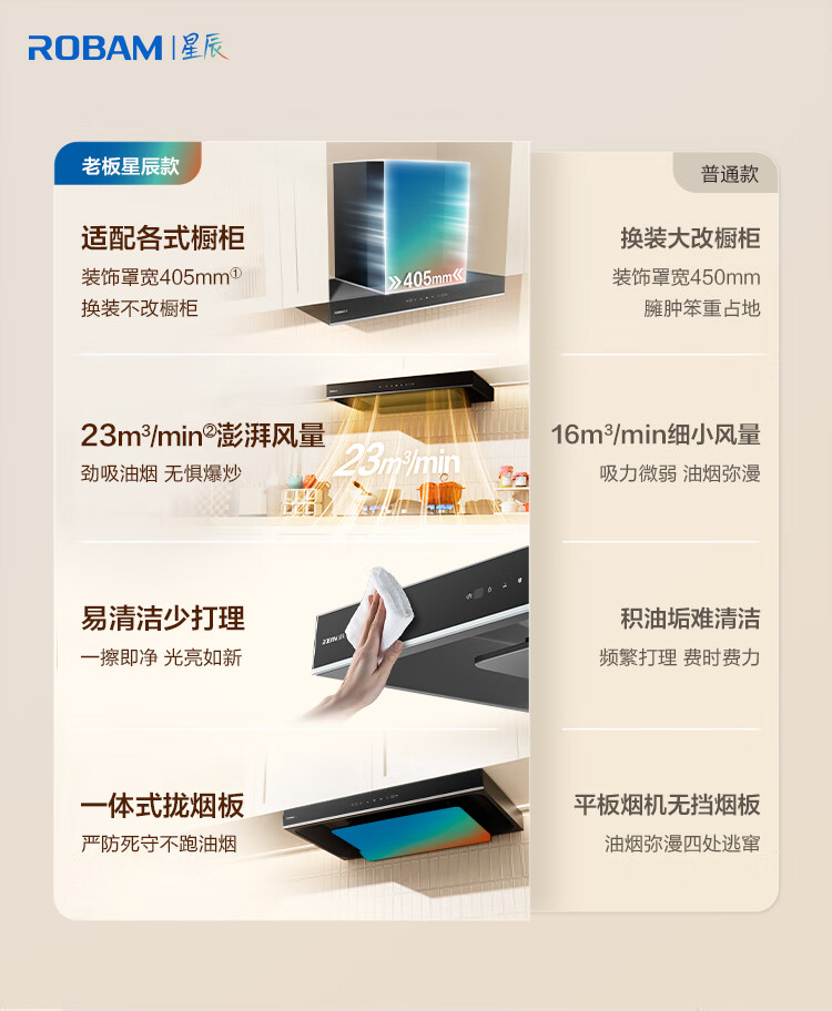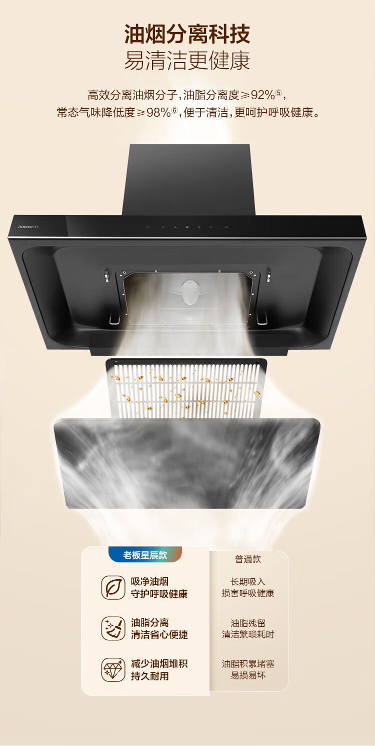 老板(Robam)星辰系列抽油烟机60A0油烟机家用顶吸式 触控23风量内腔免拆洗 欧式吸脱排烟机油烟机 【国补立减20%】老板星辰系列60A0 23风量