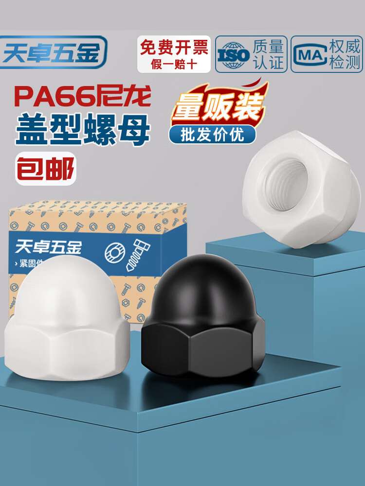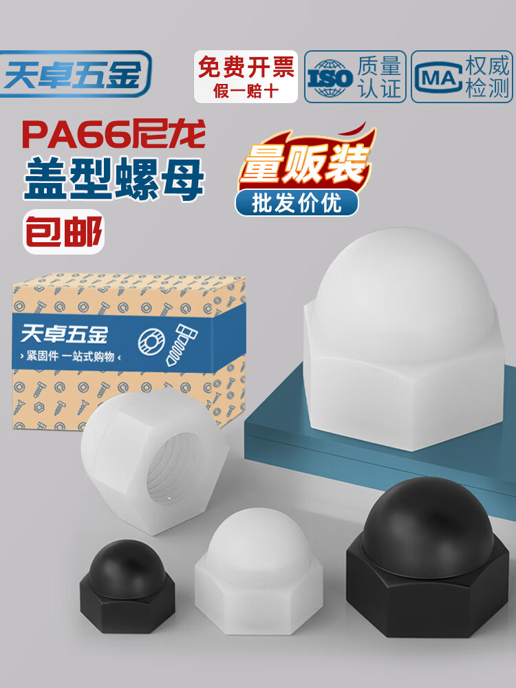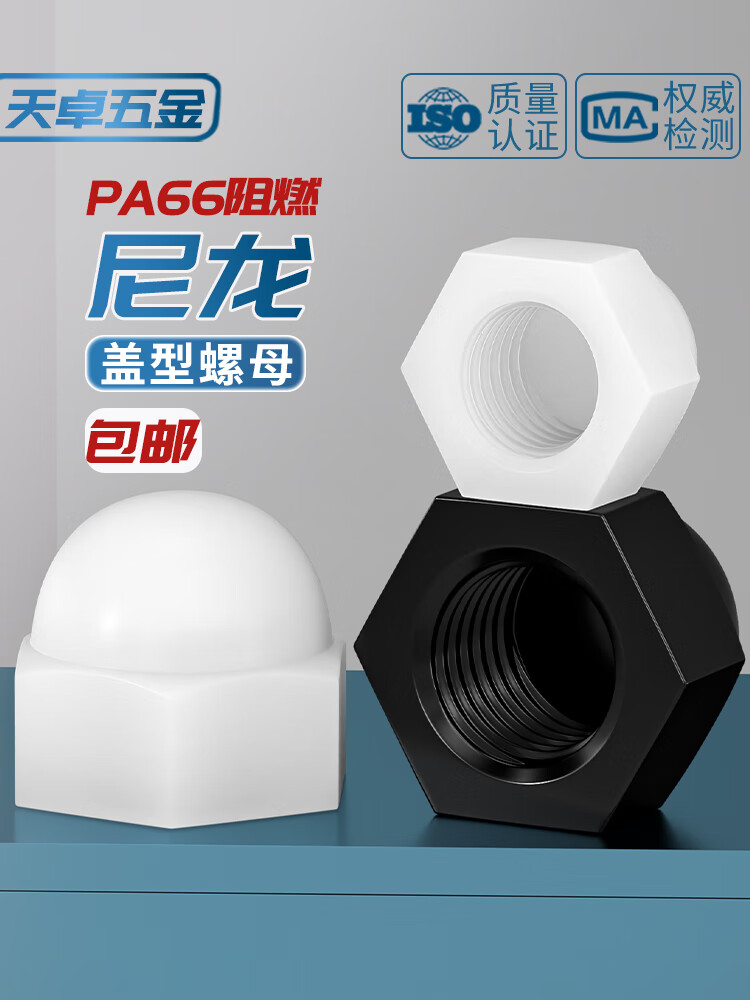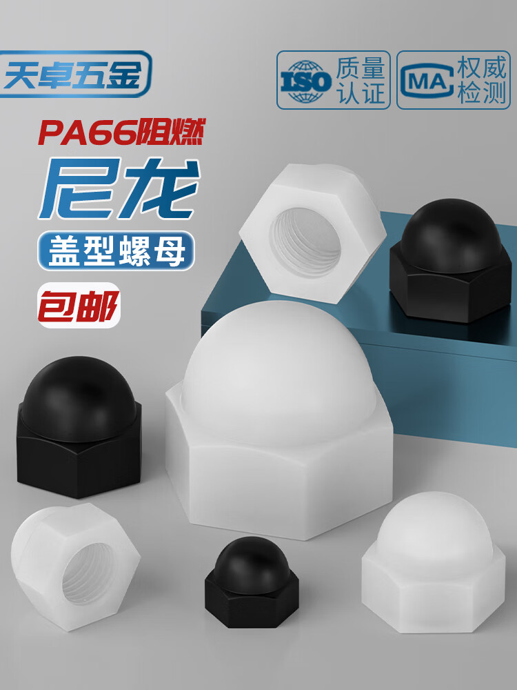 天卓五金尼龙塑料盖型螺母圆头球形螺丝帽盖形装饰盖帽盖母M3M4M5M6M8-M20 白色 套装(66PCS)