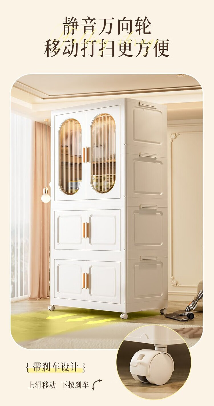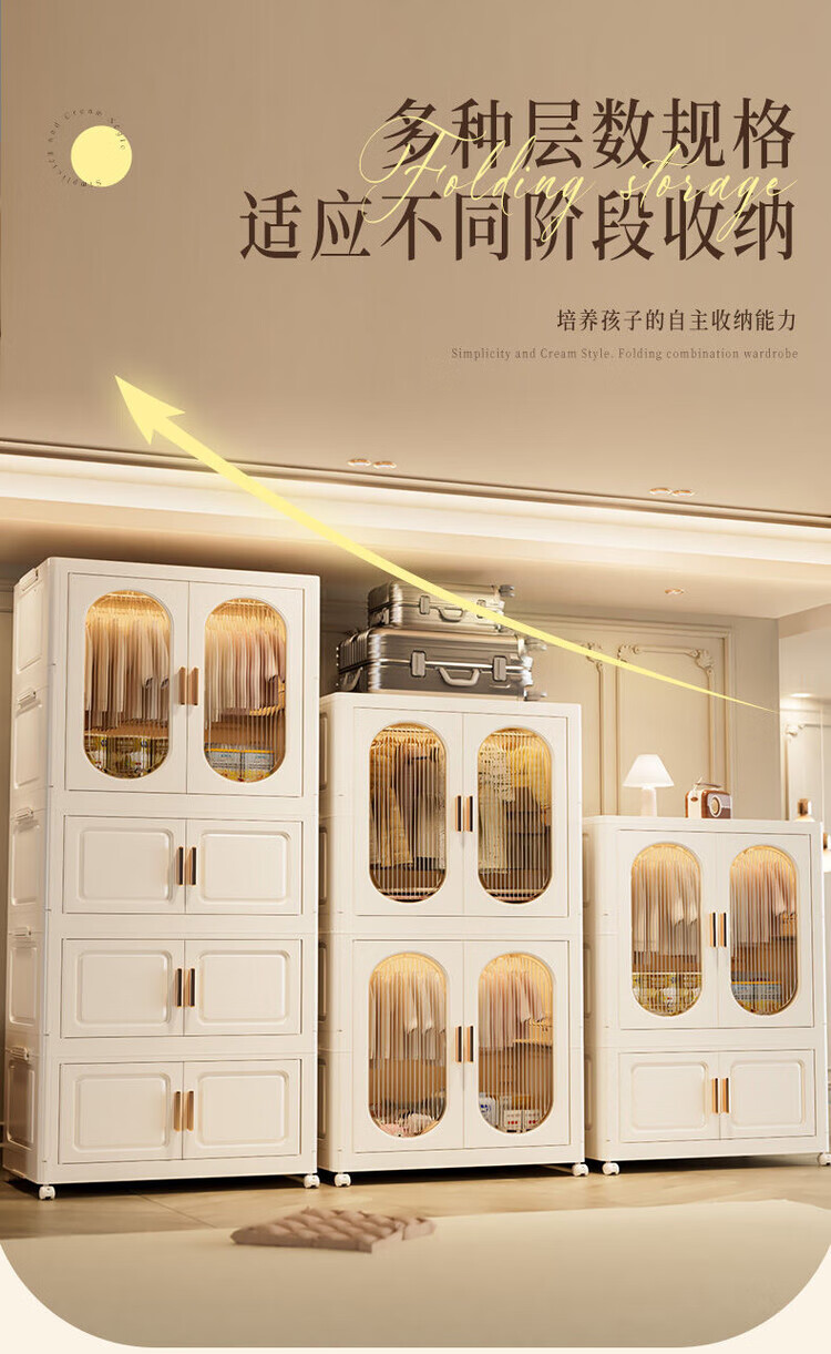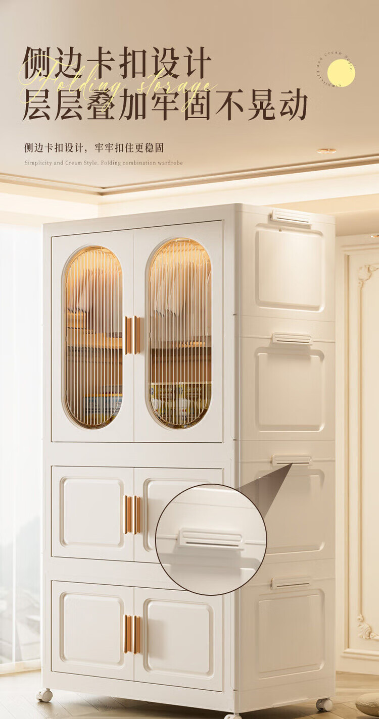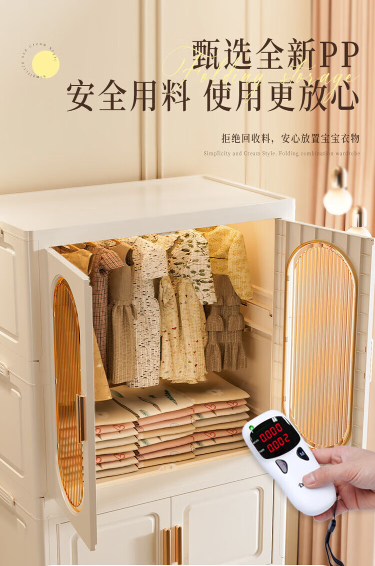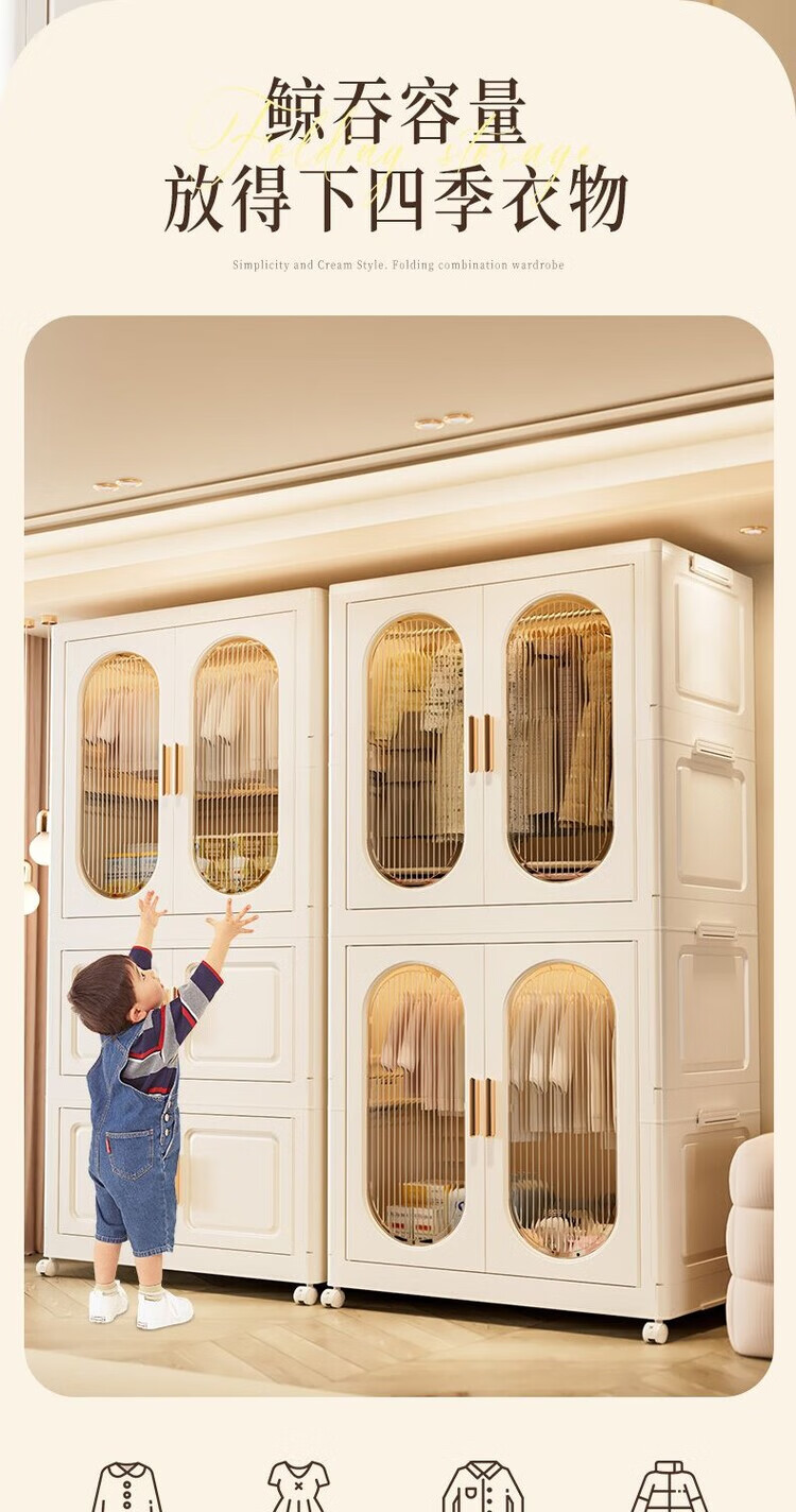 倘然之家衣柜收纳柜可折叠家用儿童宝宝卧室衣橱塑料置物柜衣服儿童储物柜 60面宽38CM侧深【可移动折叠款】 2层-【1层收纳柜+1层大衣柜】
