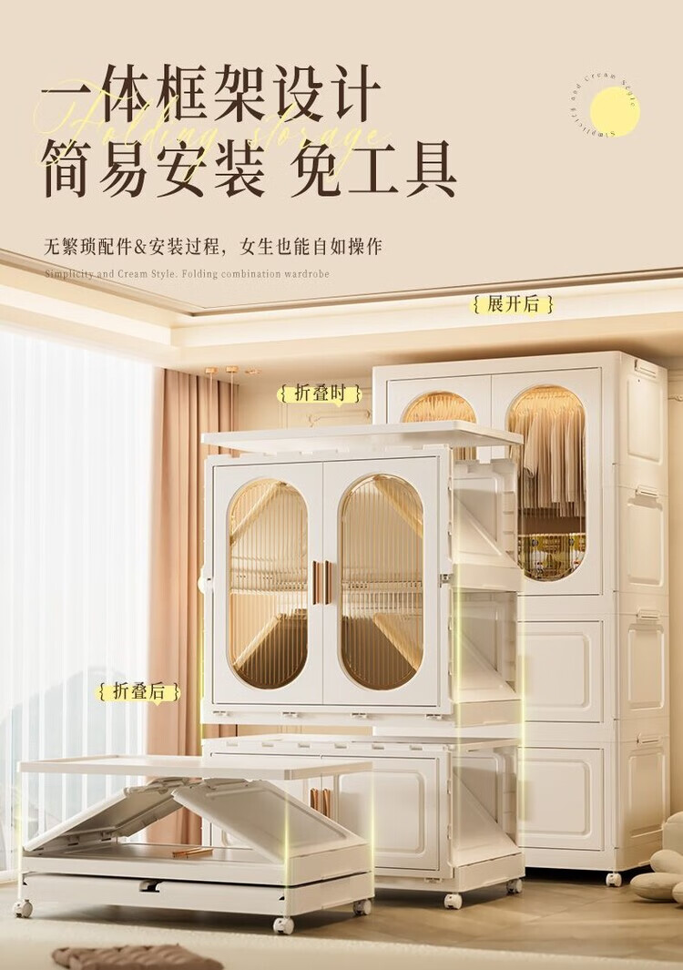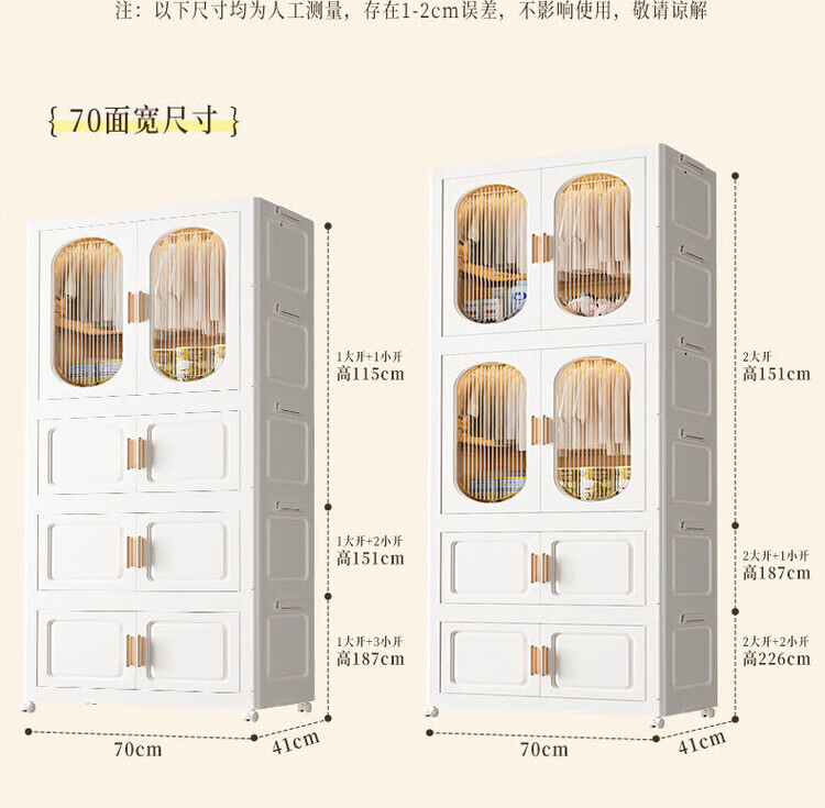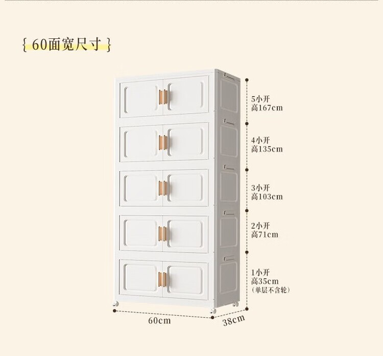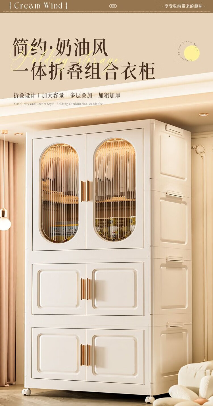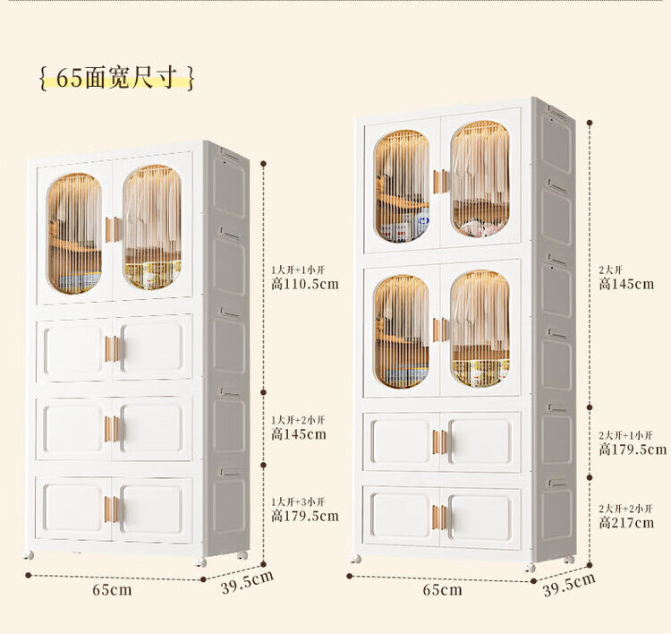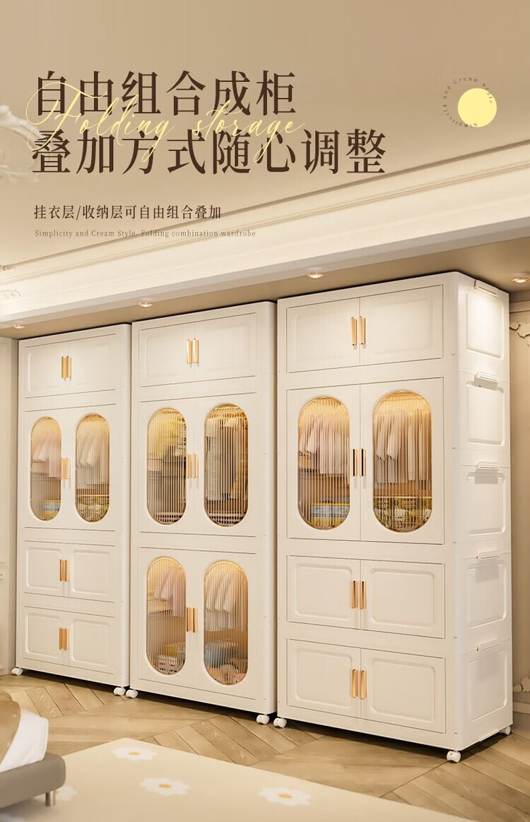 倘然之家衣柜收纳柜可折叠家用儿童宝宝卧室衣橱塑料置物柜衣服儿童储物柜 60面宽38CM侧深【可移动折叠款】 2层-【1层收纳柜+1层大衣柜】