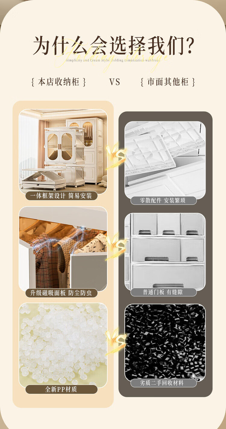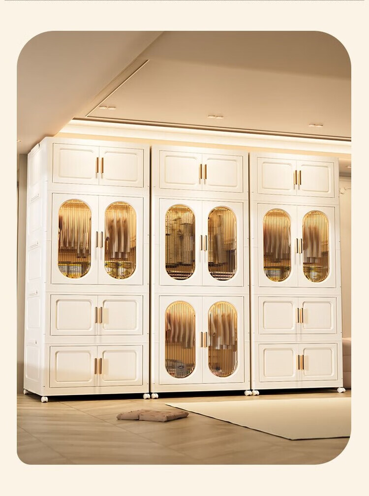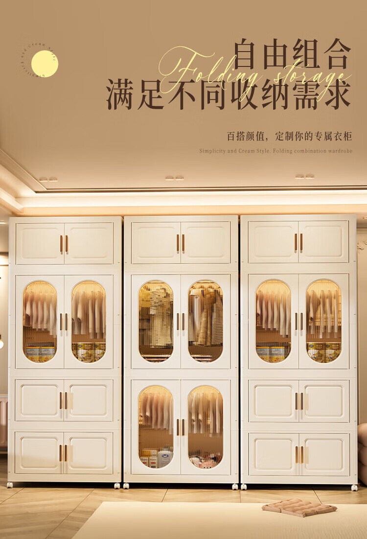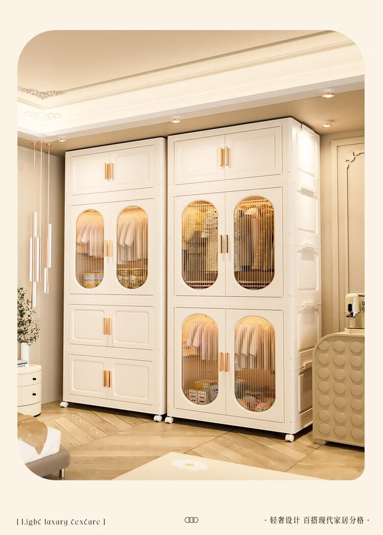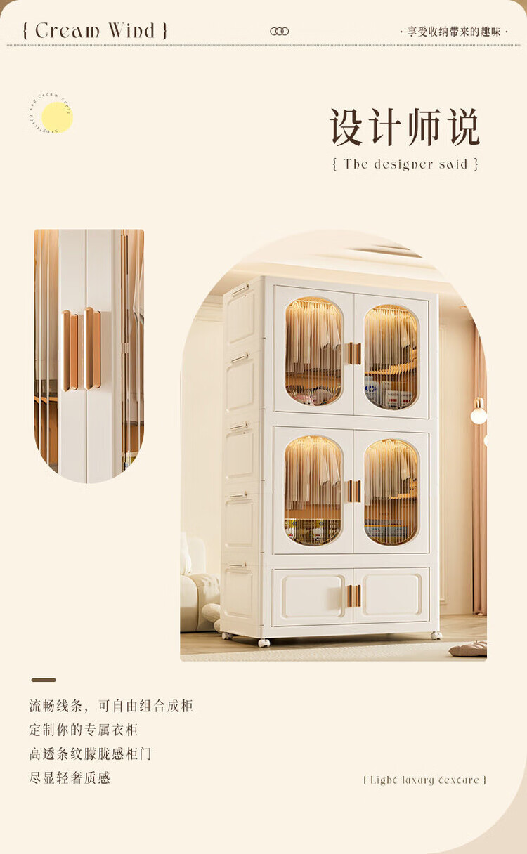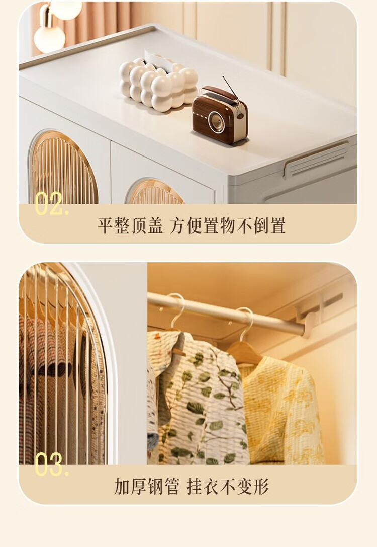 倘然之家衣柜收纳柜可折叠家用儿童宝宝卧室衣橱塑料置物柜衣服儿童储物柜 60面宽38CM侧深【可移动折叠款】 2层-【1层收纳柜+1层大衣柜】