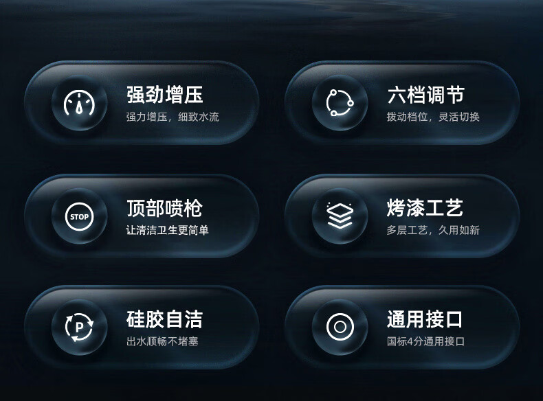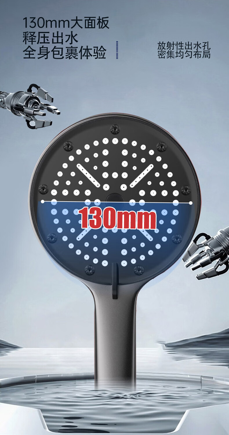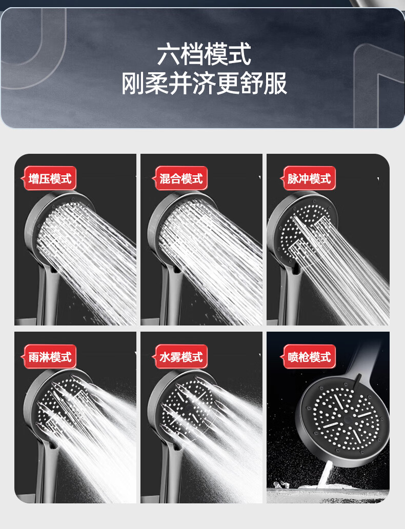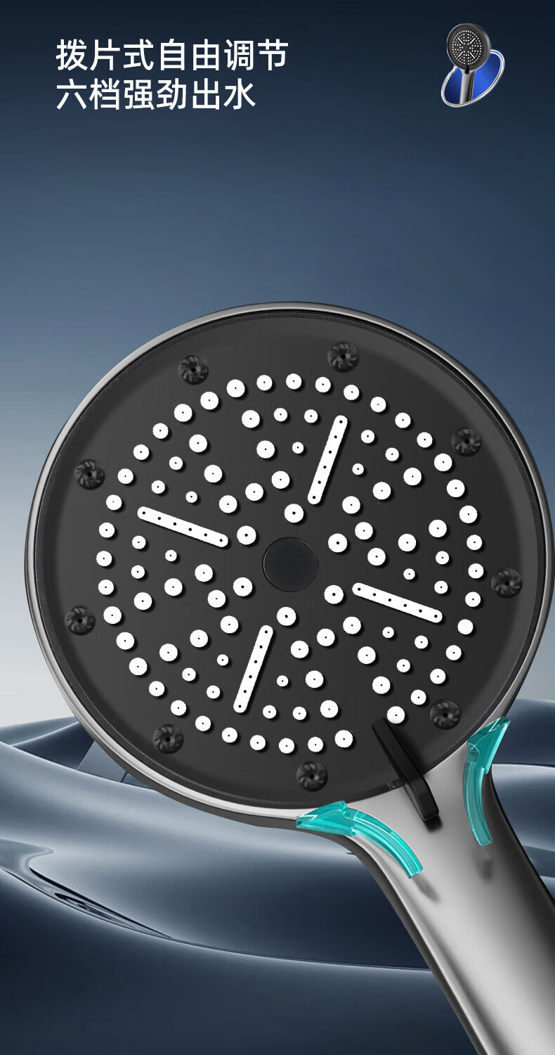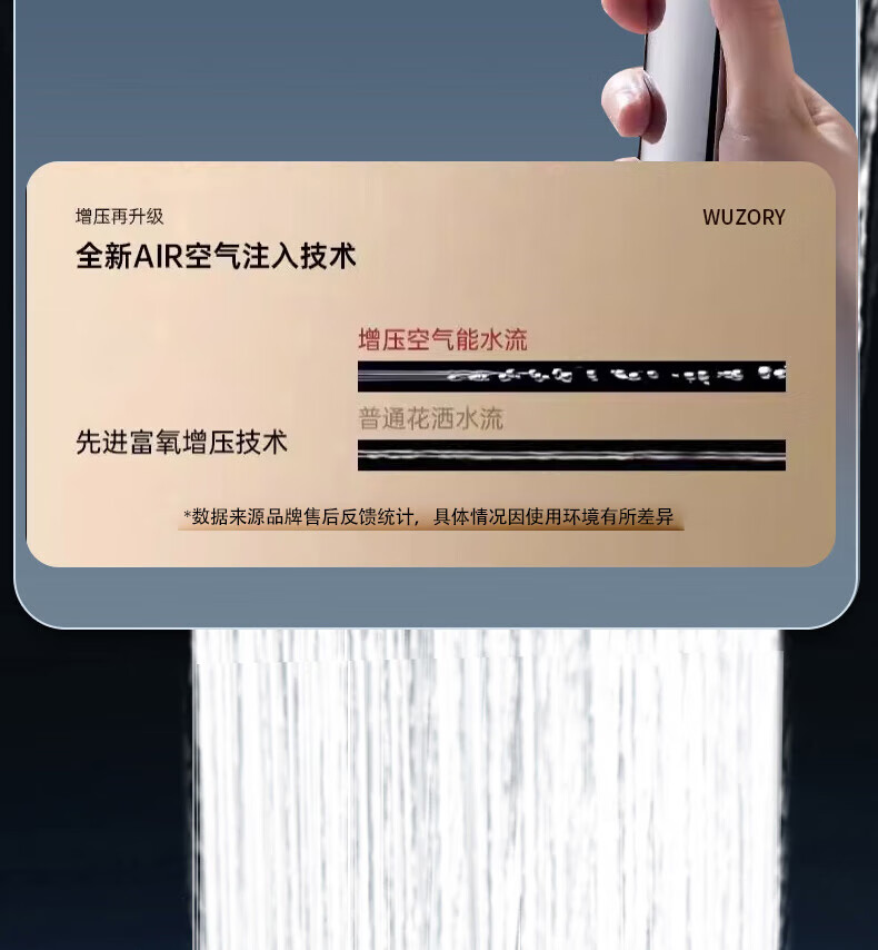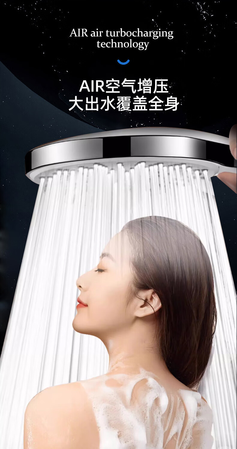 WUZORY【德国】增压花洒喷头家用卫浴多功能加压大面板淋浴手持莲蓬喷头 【枪灰】增压六档+1.5米防爆软管 AIR空气增压丨大水沐浴新体验