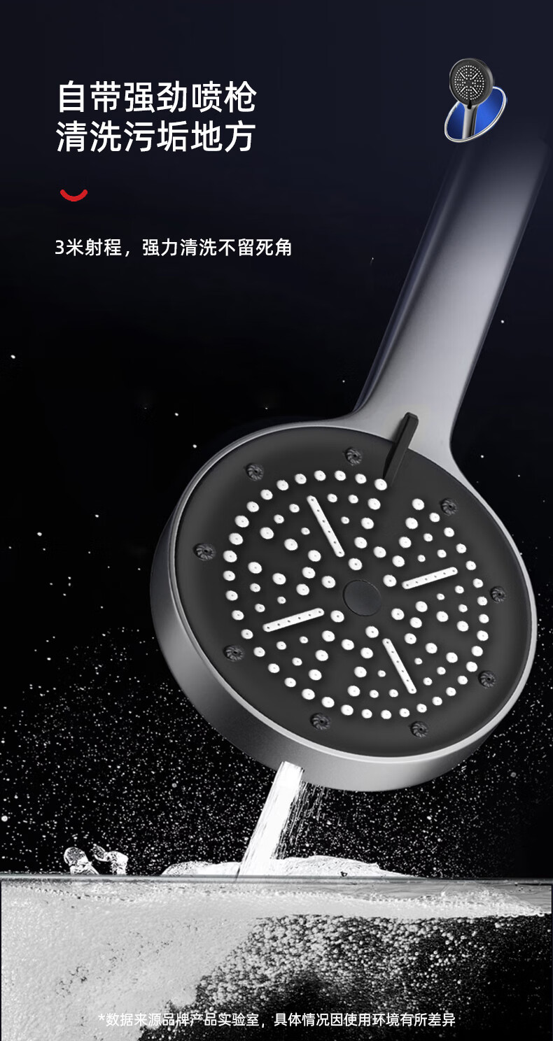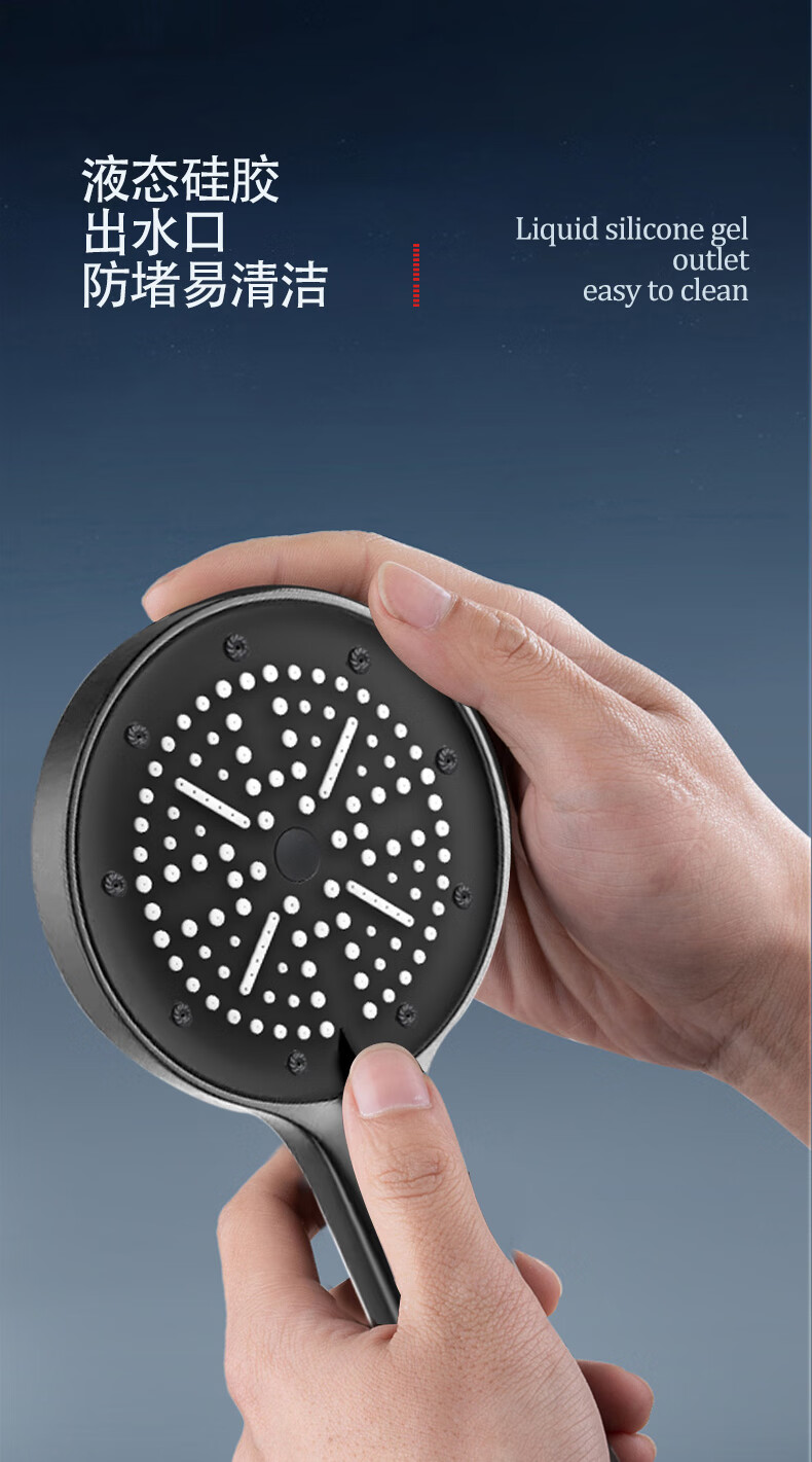 【现货现发】黑武士五档增压花洒淋浴器喷头浴室洗澡手持便携式多 黑色软刺+1.5米软管