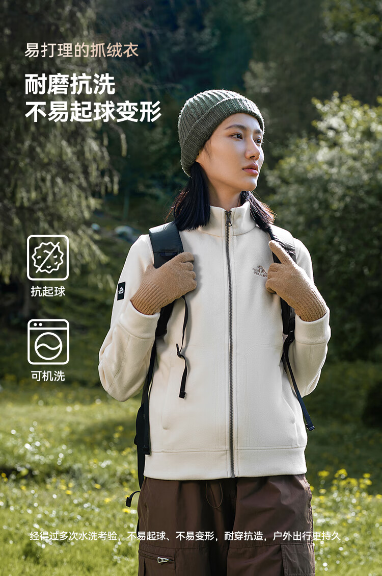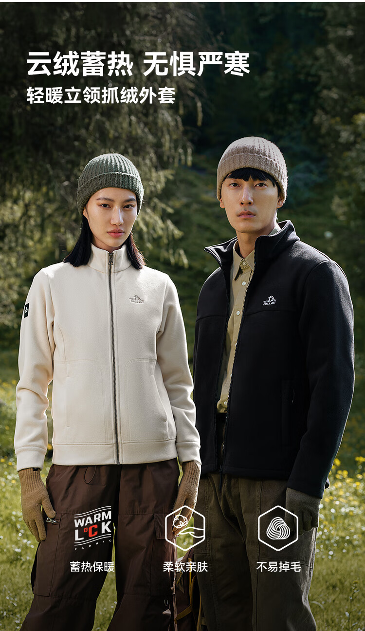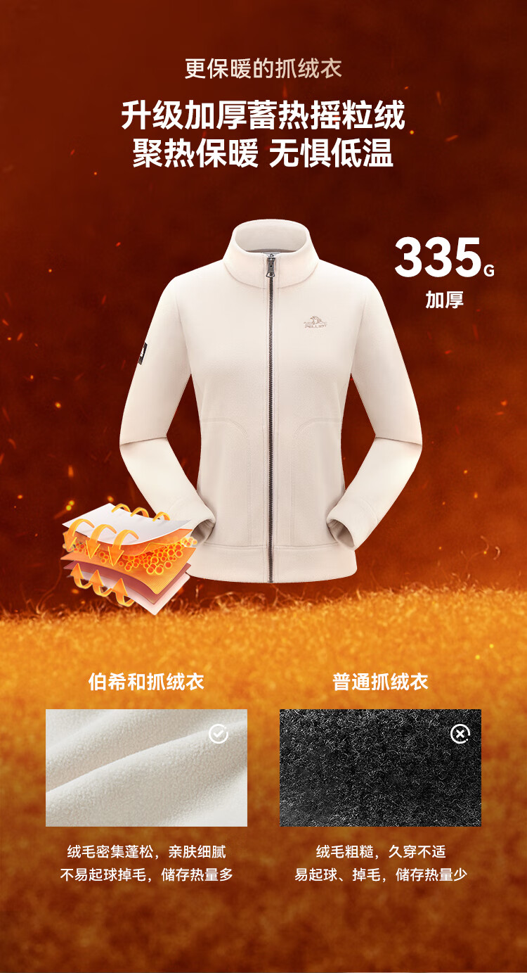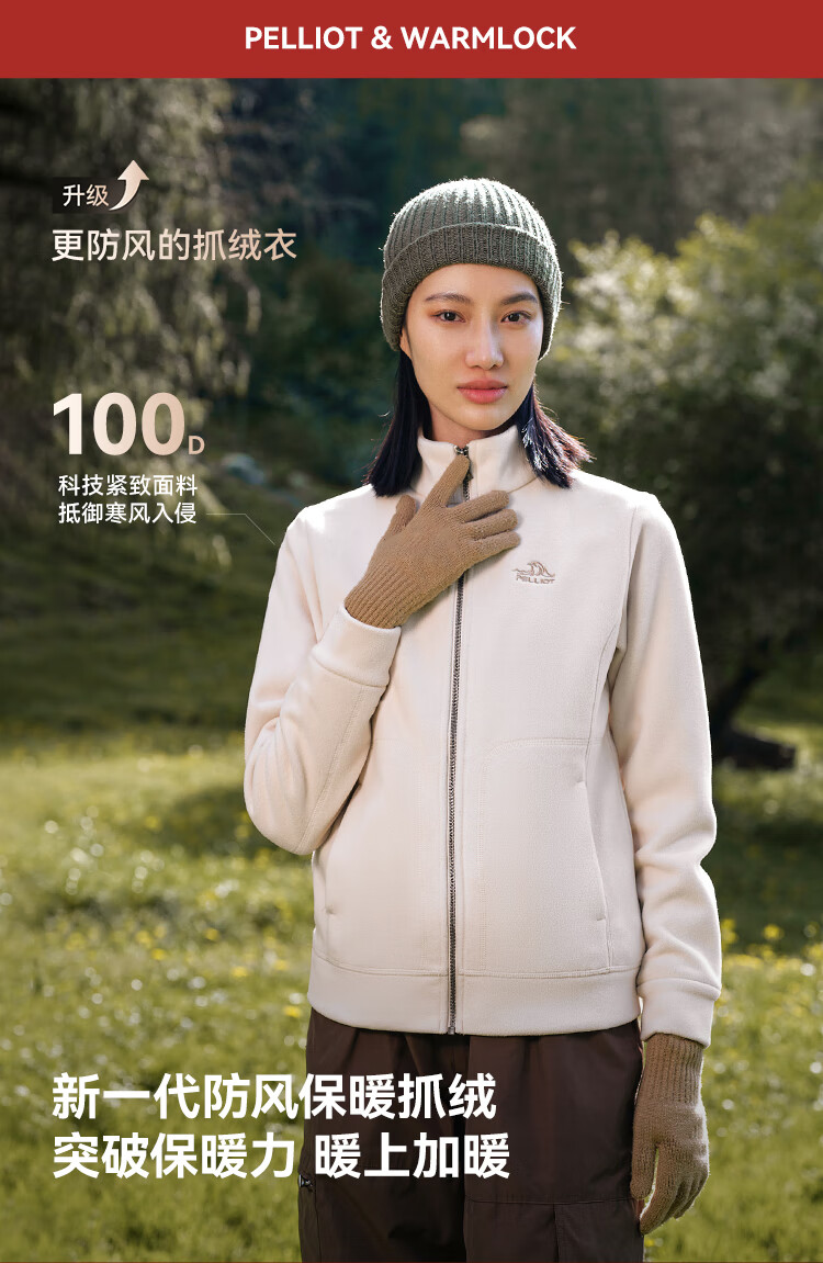 伯希和(Pelliot)【经典2.0】抓绒衣女摇粒绒外套冲锋衣内胆保暖夹克125110022白M