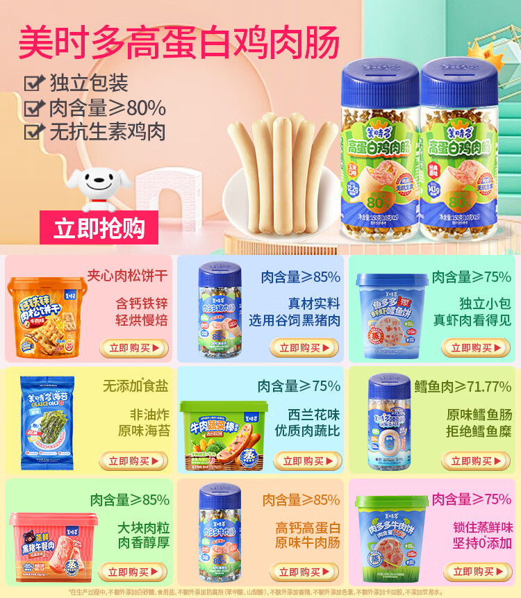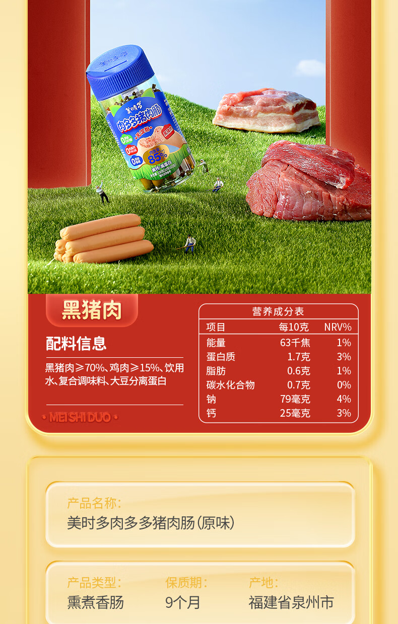 美时多黑猪肉肠宝宝零食火腿肠儿童早餐肉肠无添加淀粉香肠烤肠原味150g