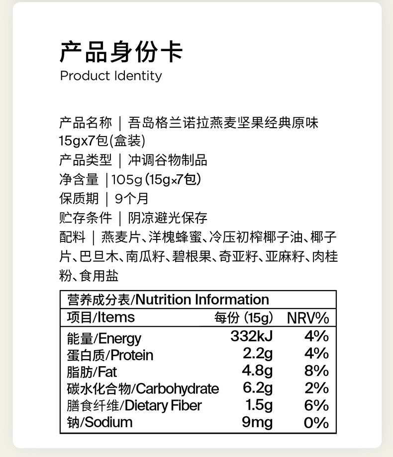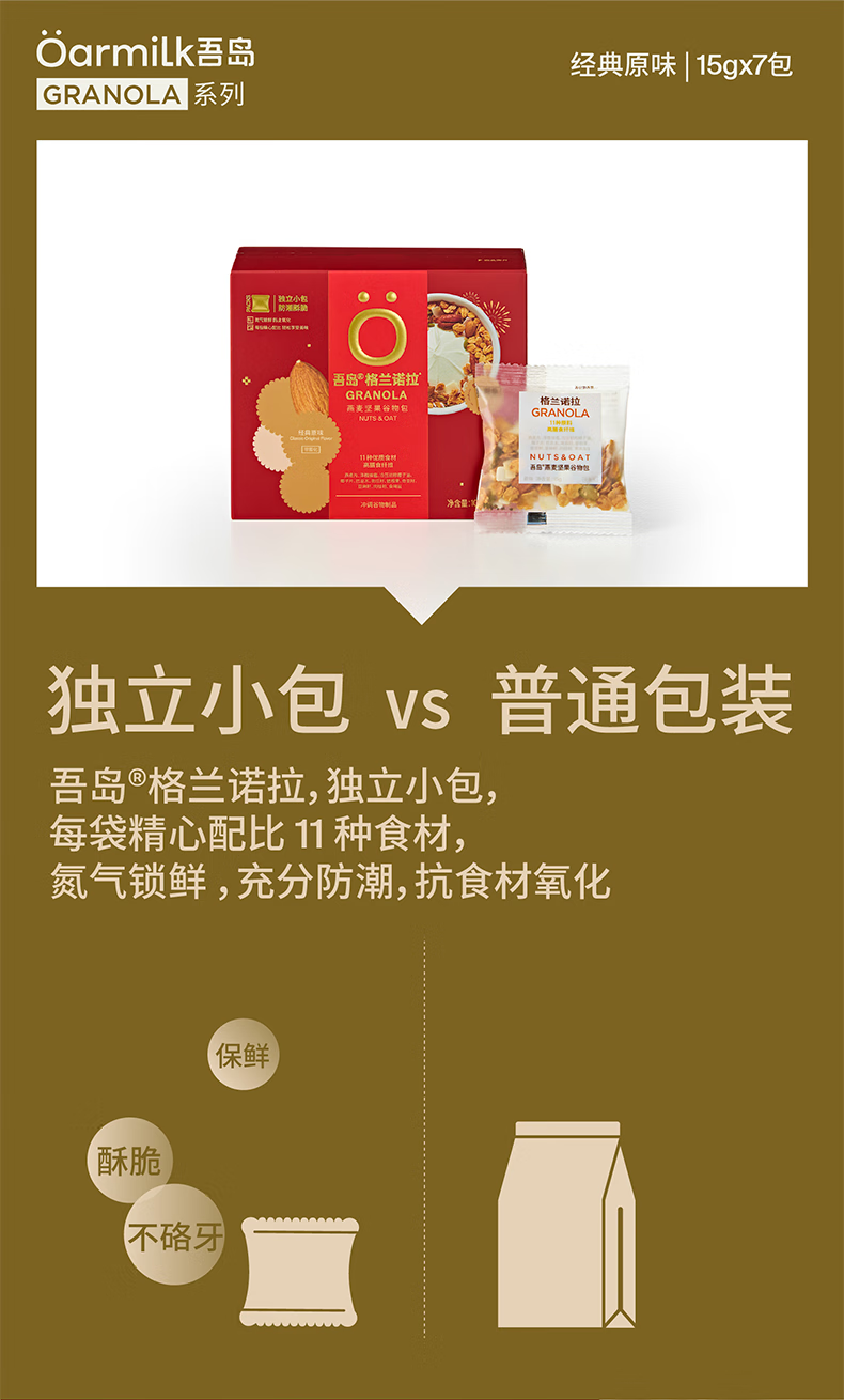 吾岛格兰诺拉烘焙燕麦坚果经典原味15g*7包(盒装)独立包装年货送礼