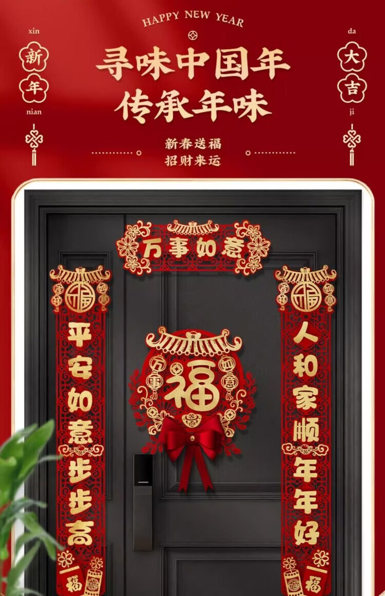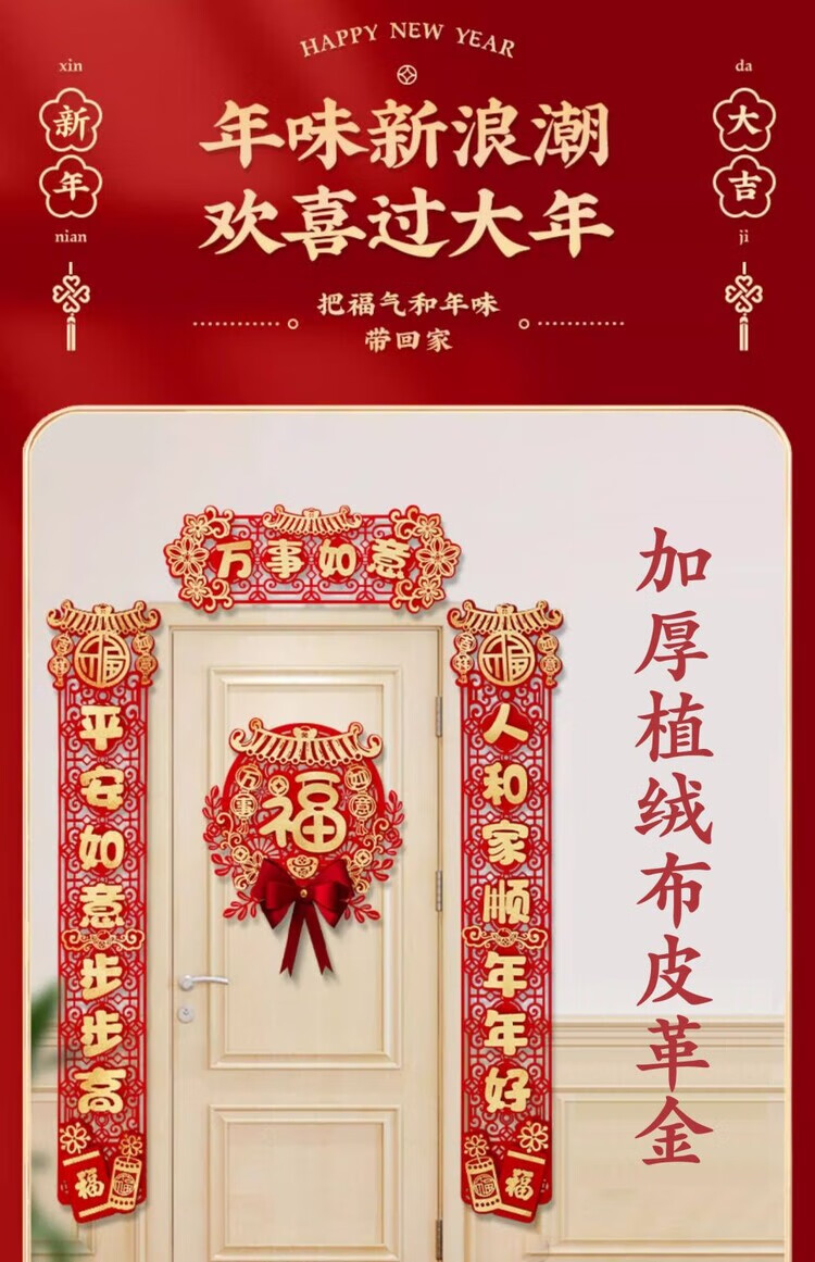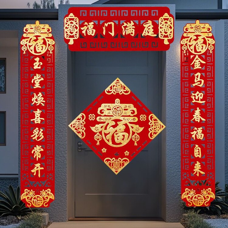 OYKTN2026新年磁吸双层对联入户大门福字门贴装饰马年春节家用过年春联 福门满庭对联套装 铁门【磁吸片+点胶】款
