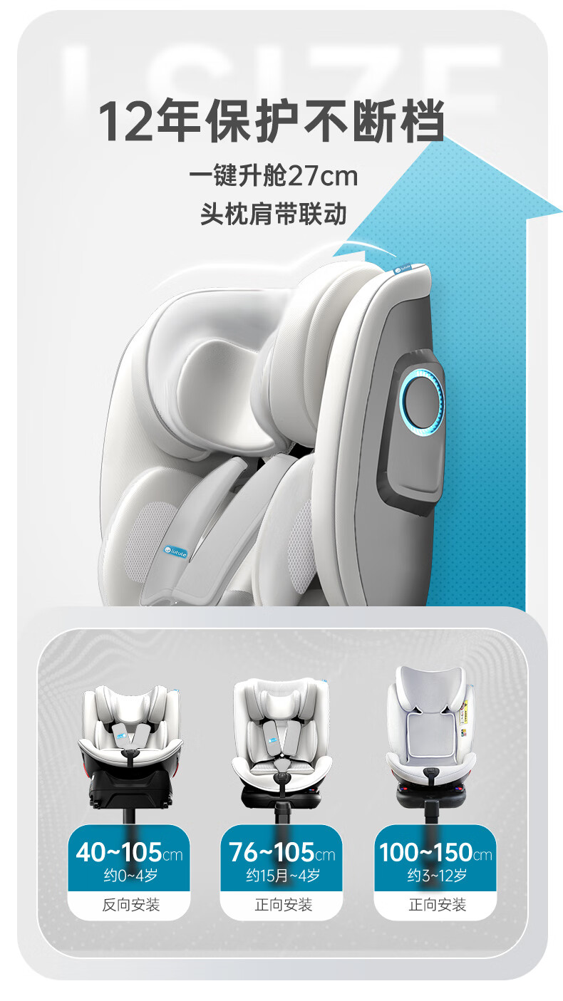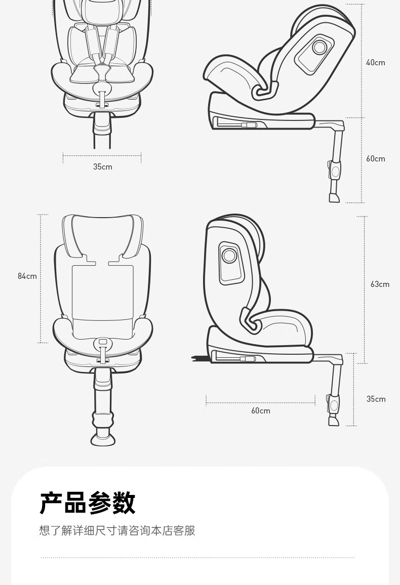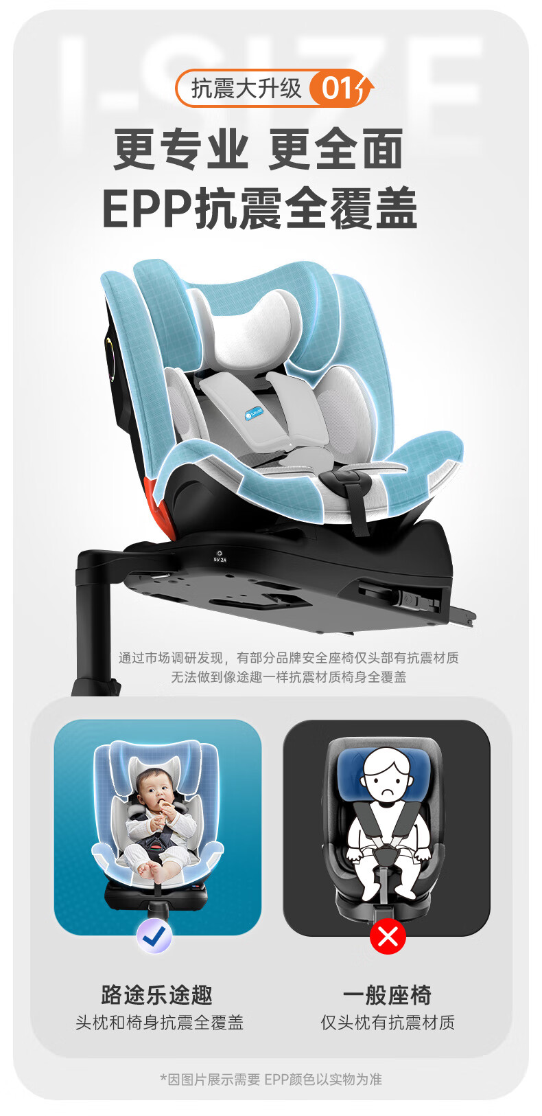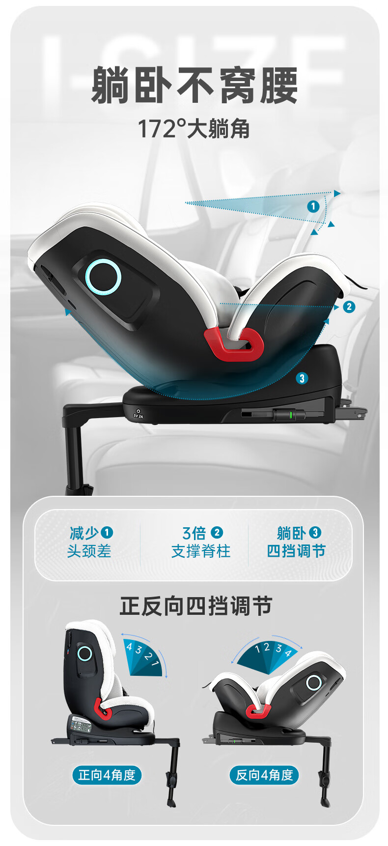 路途乐儿童安全座椅0-4岁汽车用可坐躺360度旋转宝宝椅途趣-尊享版灰