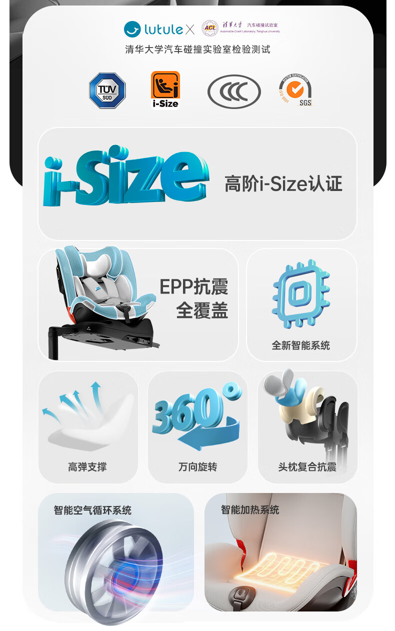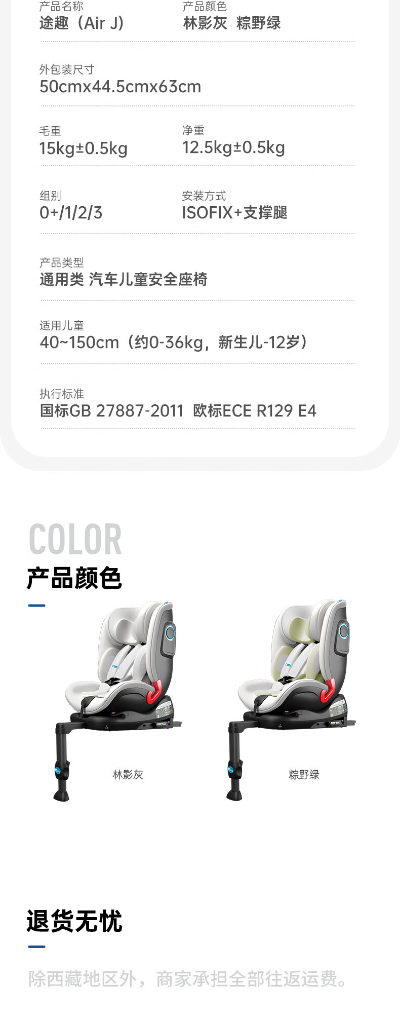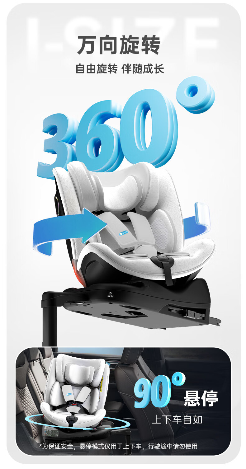 路途乐儿童安全座椅0-4岁汽车用可坐躺360度旋转宝宝椅途趣-尊享版灰