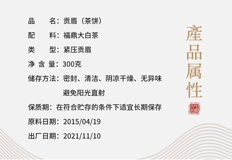 立香园 高山贡眉老白茶福鼎茶叶白茶饼陈年枣香福建老贡眉300g礼袋装 【2015贡眉】 300g*1饼 需要礼盒联系客服