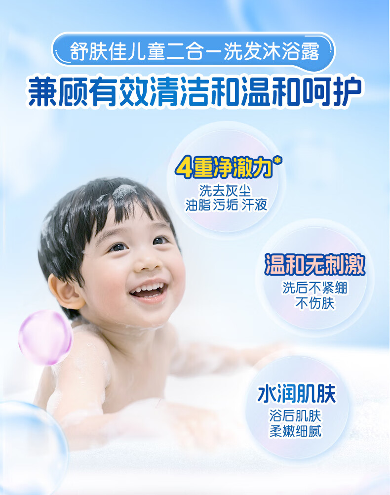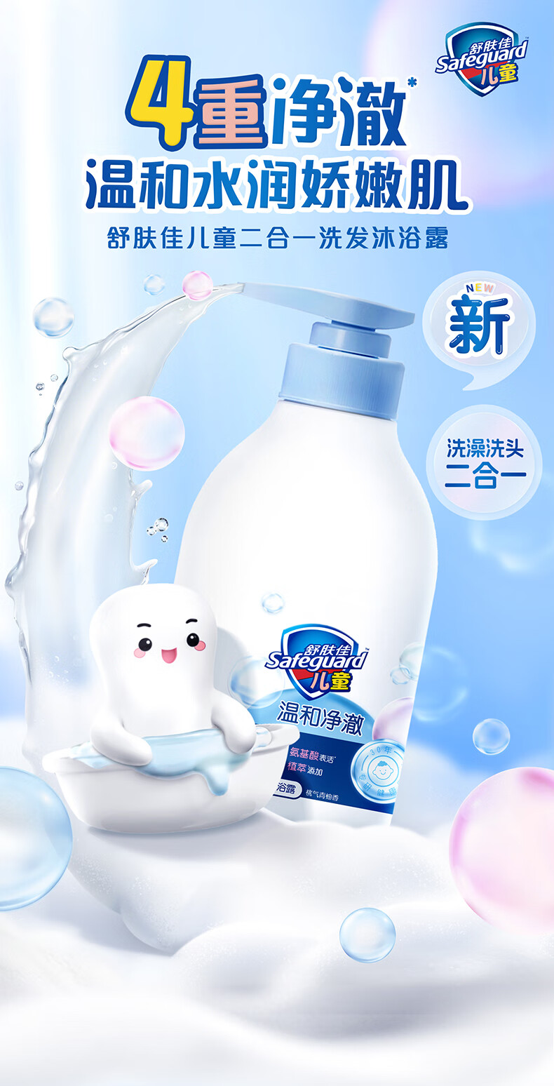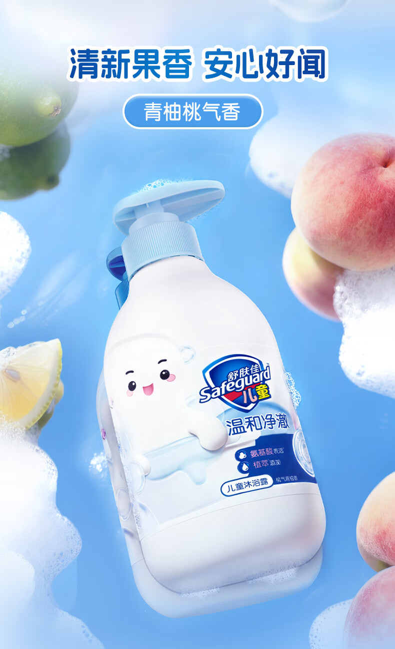 舒肤佳儿童沐浴露洗发水二合一 桃气青柚香450g 温和净澈水润肌肤