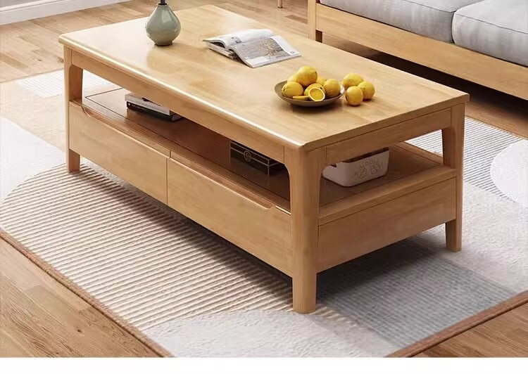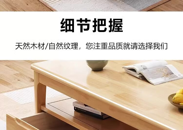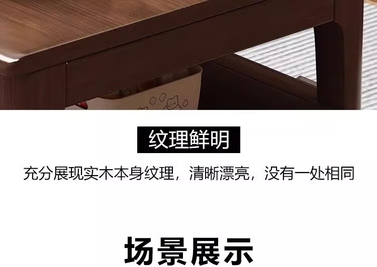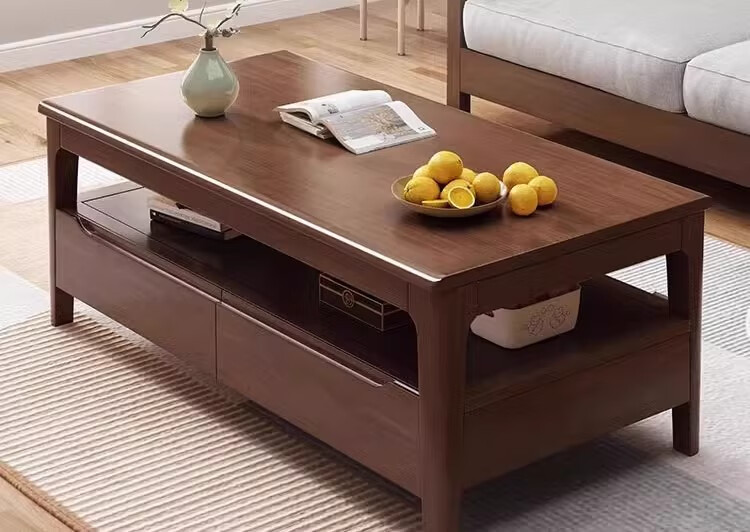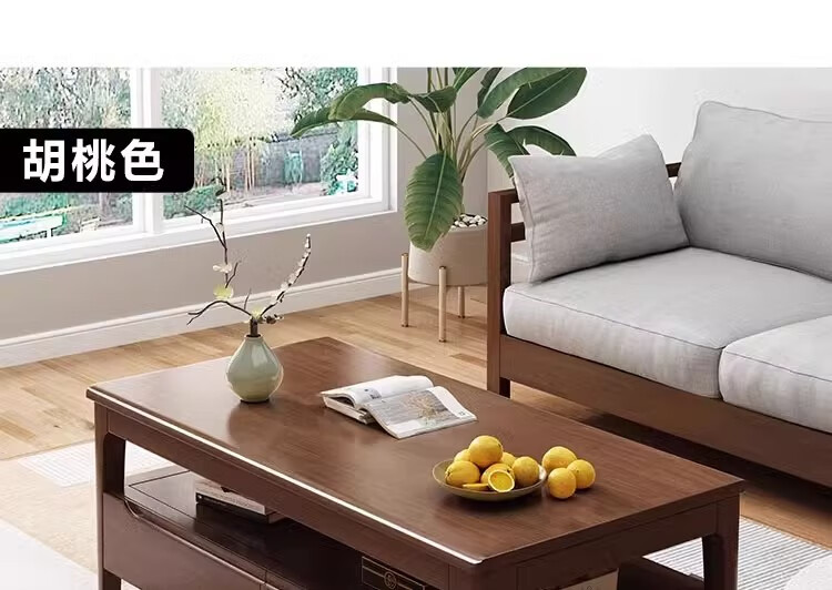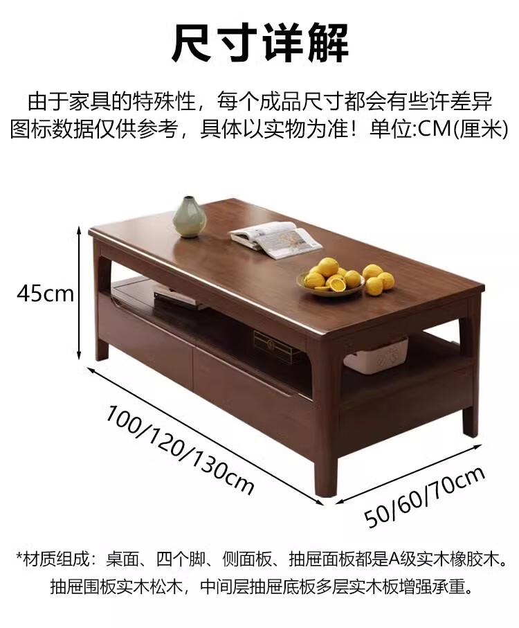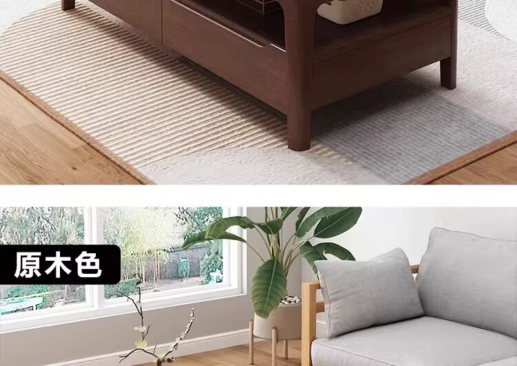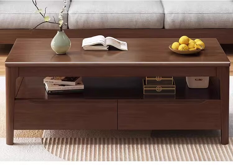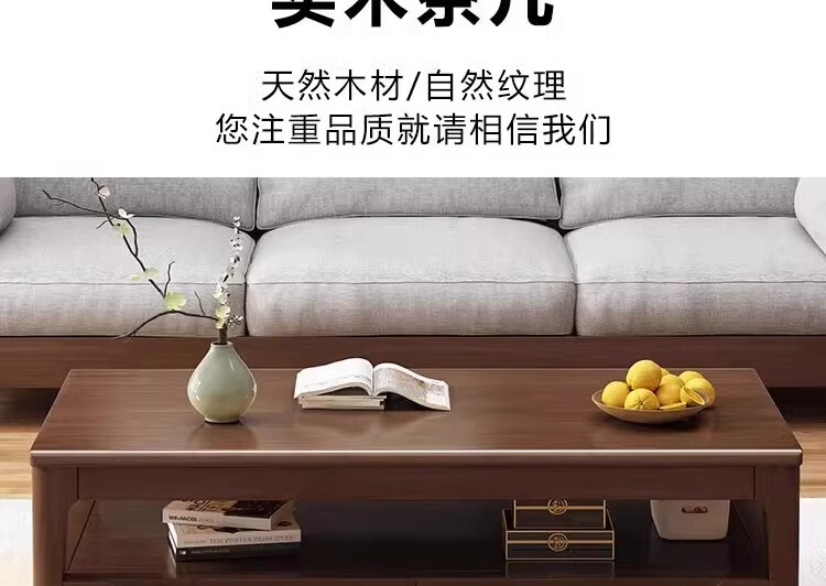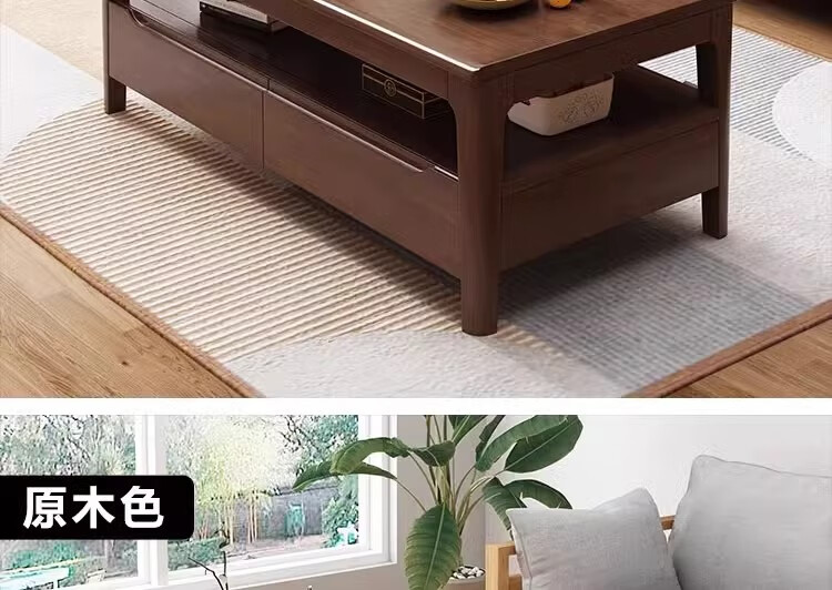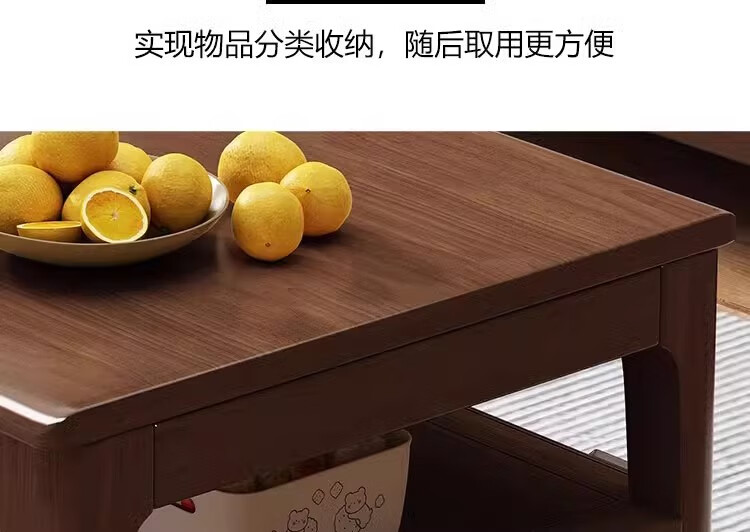 木尔雅实木茶几客厅现代简约家用原木茶几带抽屉长方形北欧茶桌小户型 升级版四抽屉款【胡桃色】自行安装 120x60x45cm【送货上门】