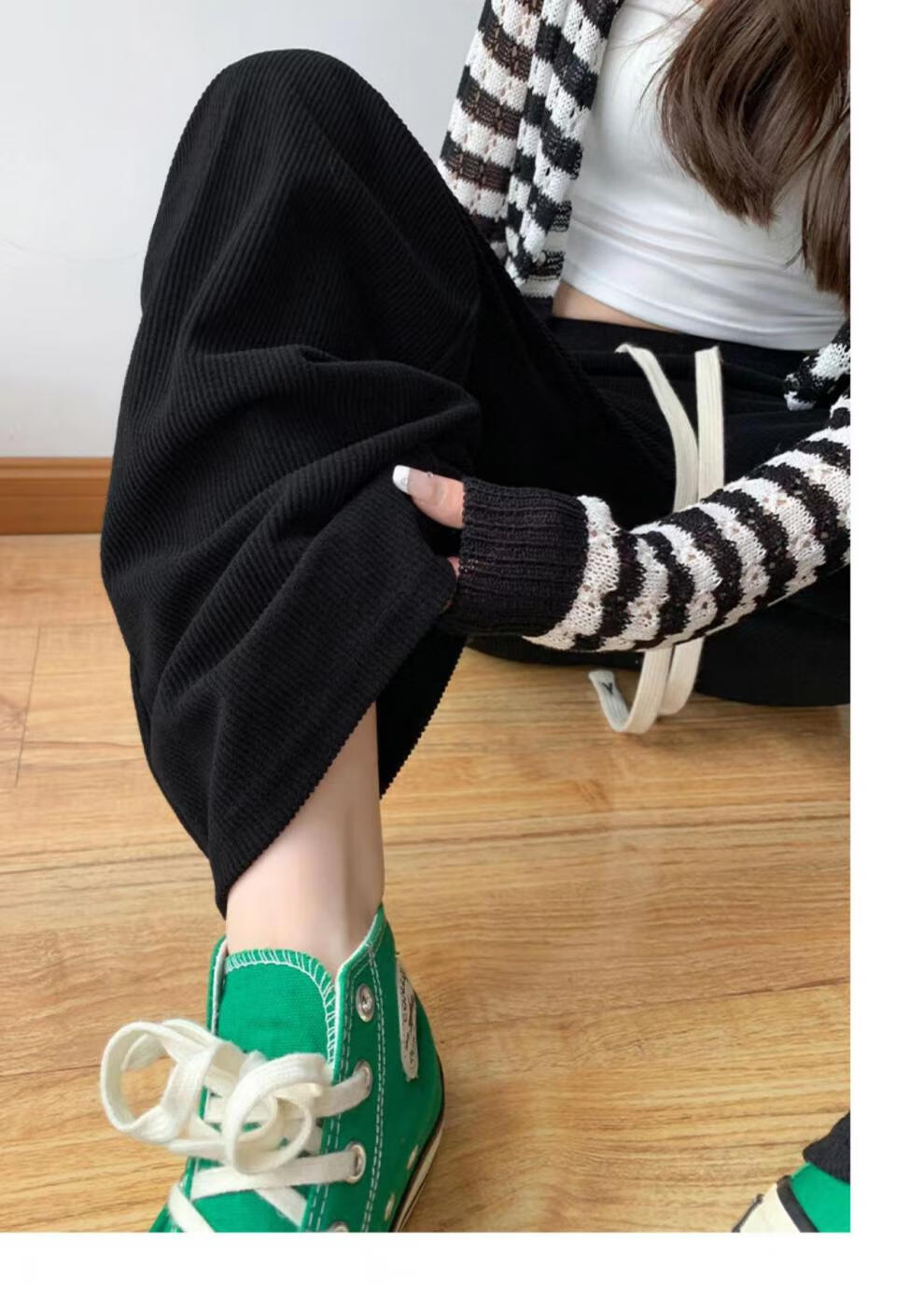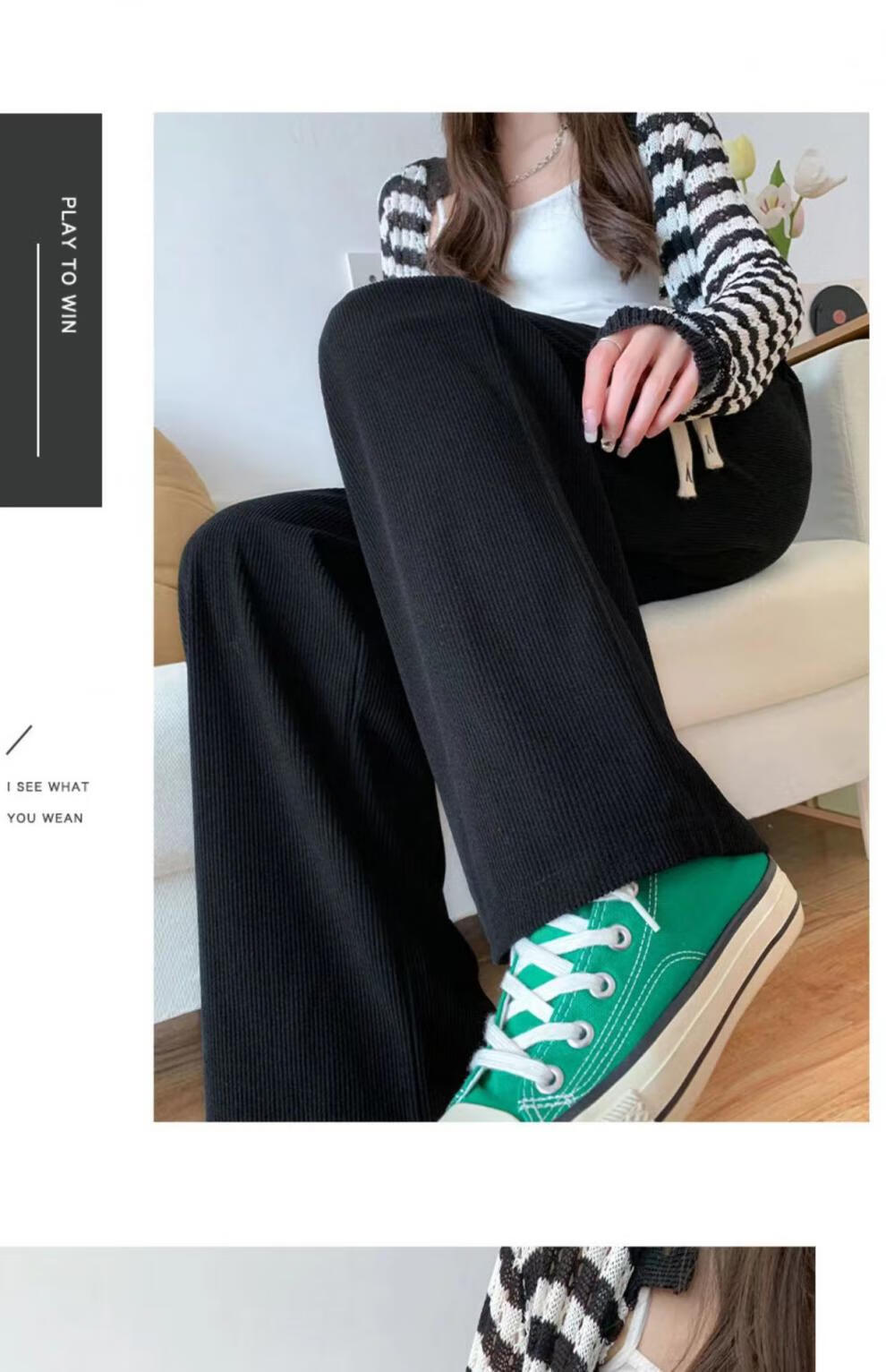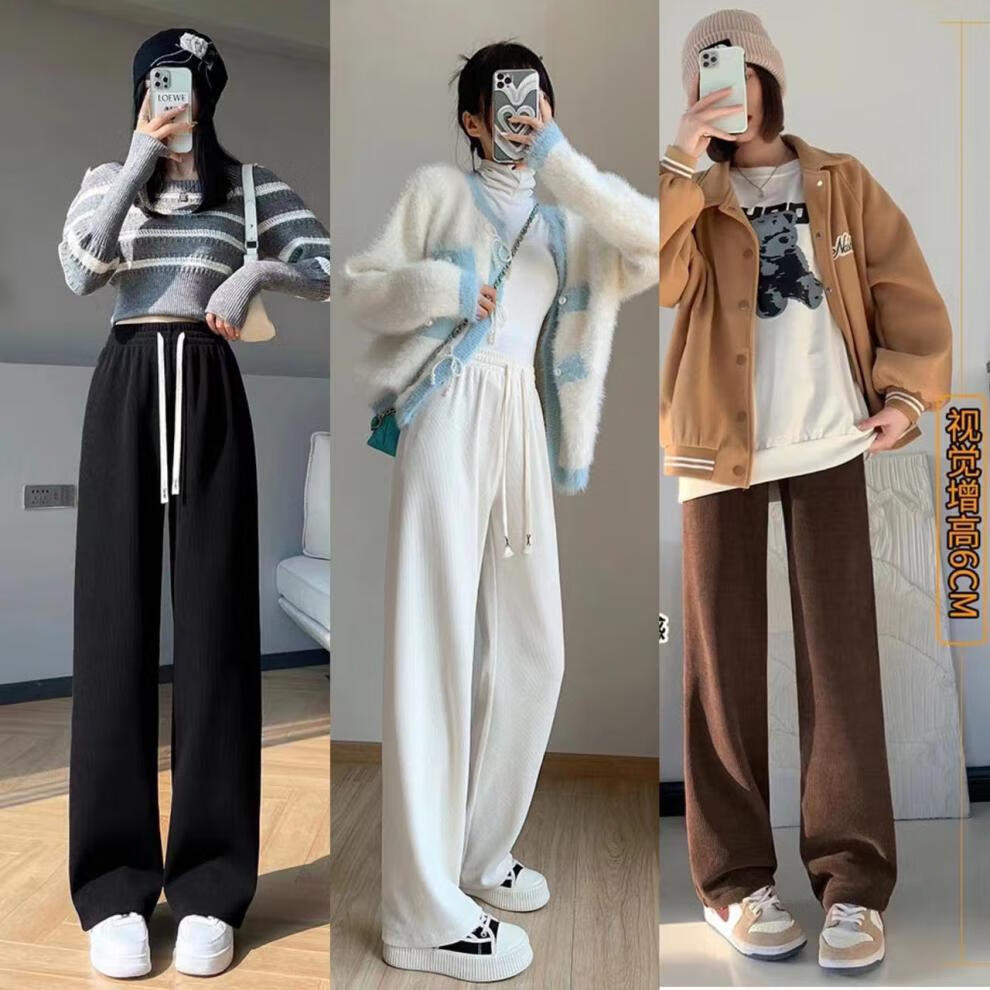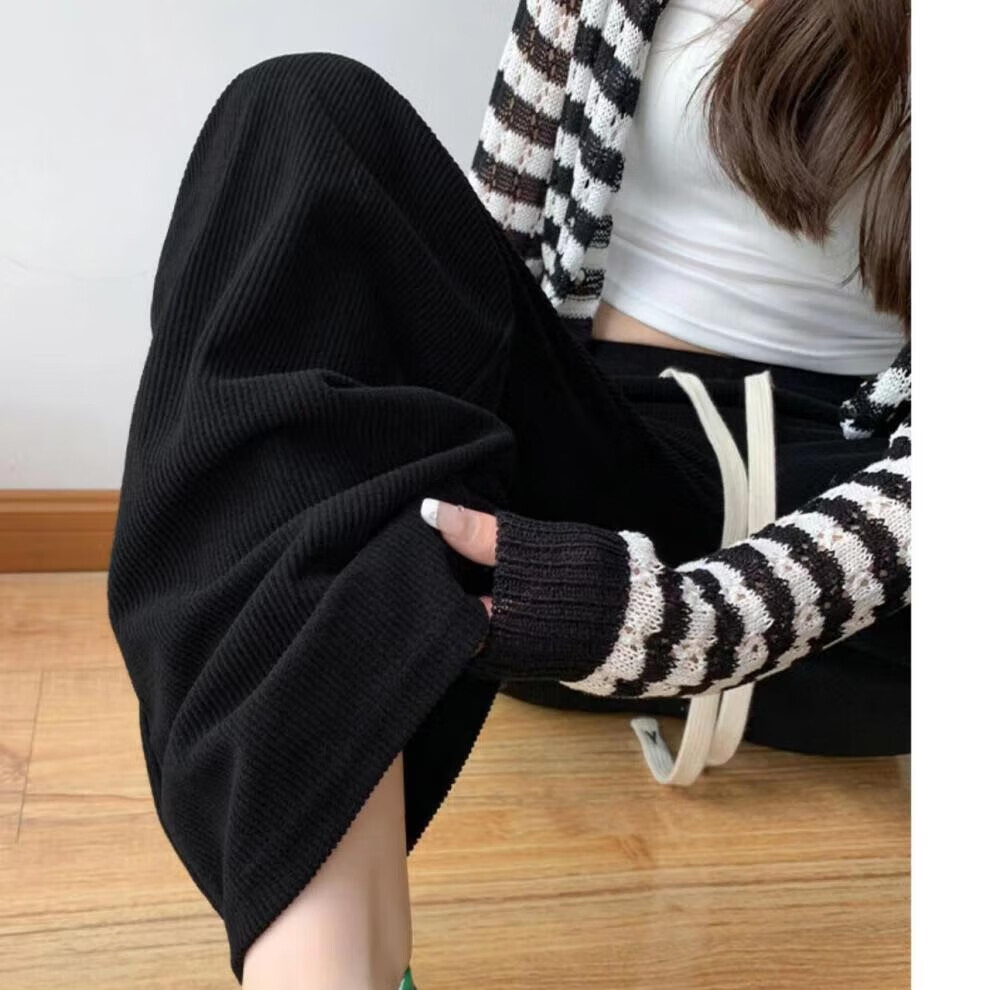 有只绵小个子阔腿裤女秋冬季高腰窄版显瘦直筒休闲裤加绒宽松垂感拖地裤 黑色 冬季加绒 均码 (适合80-140斤)