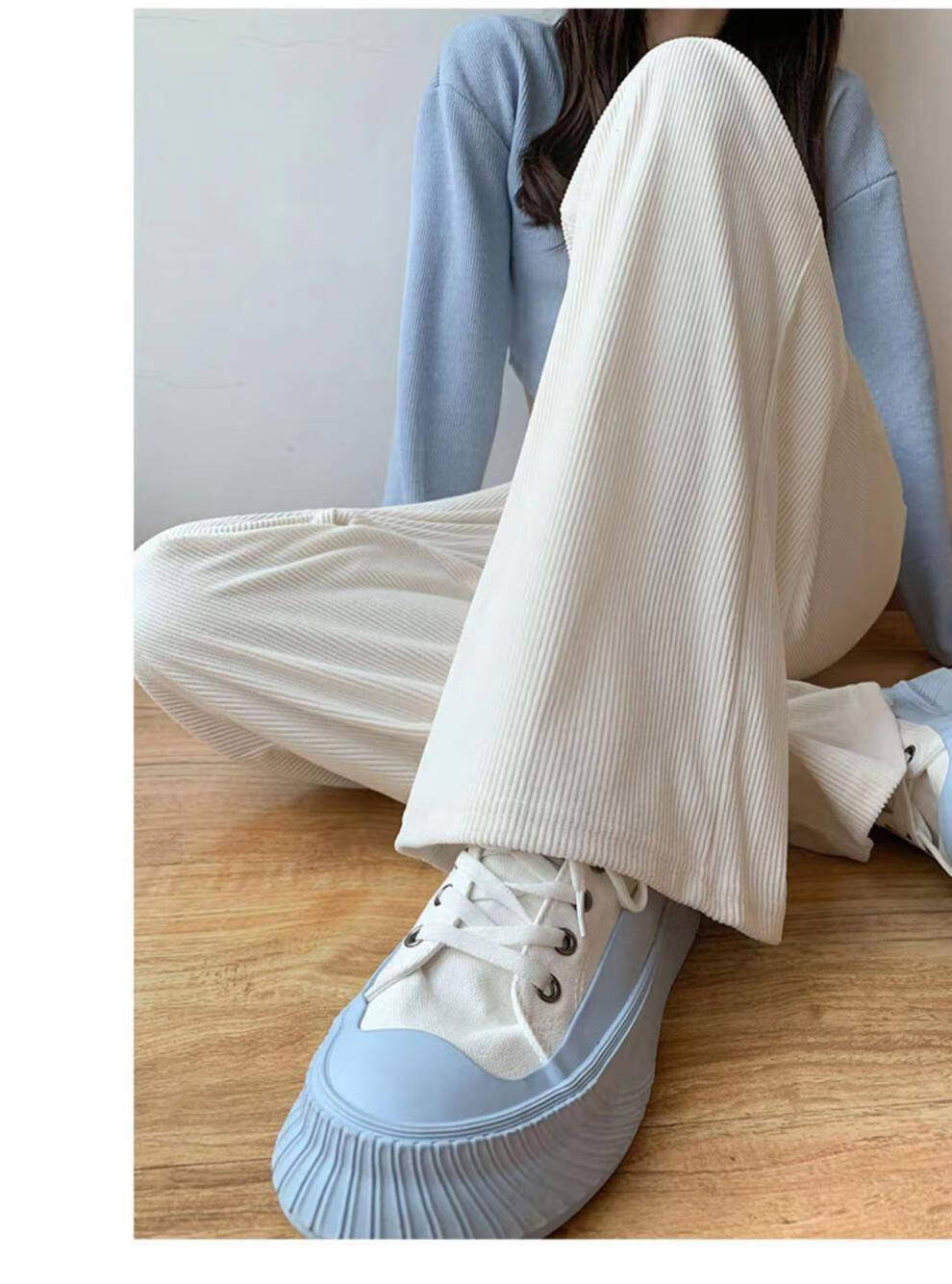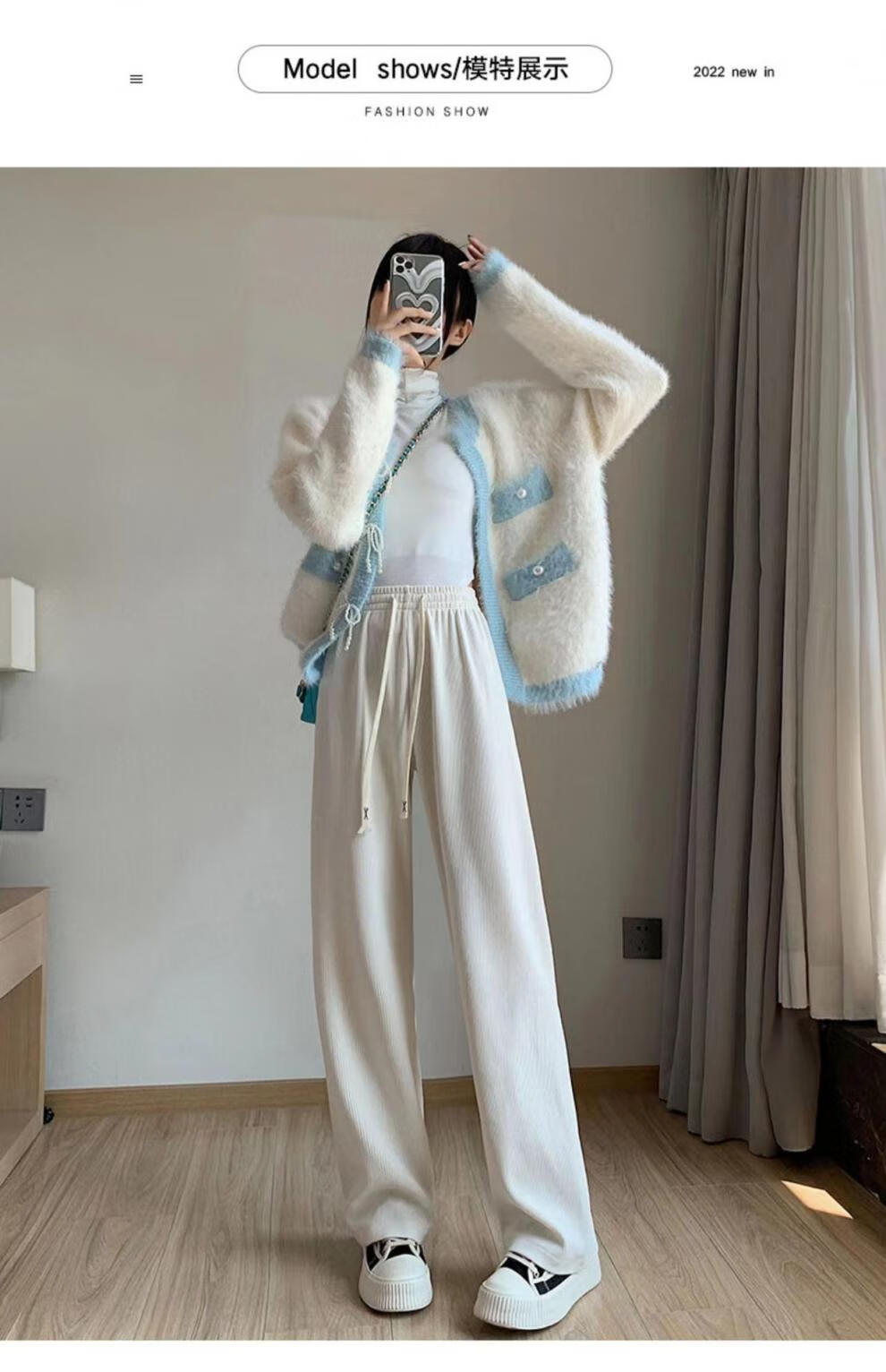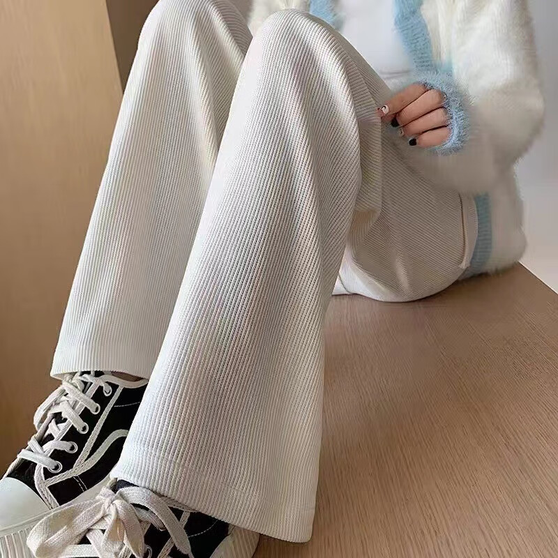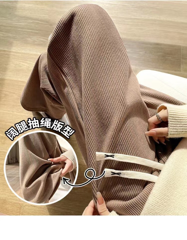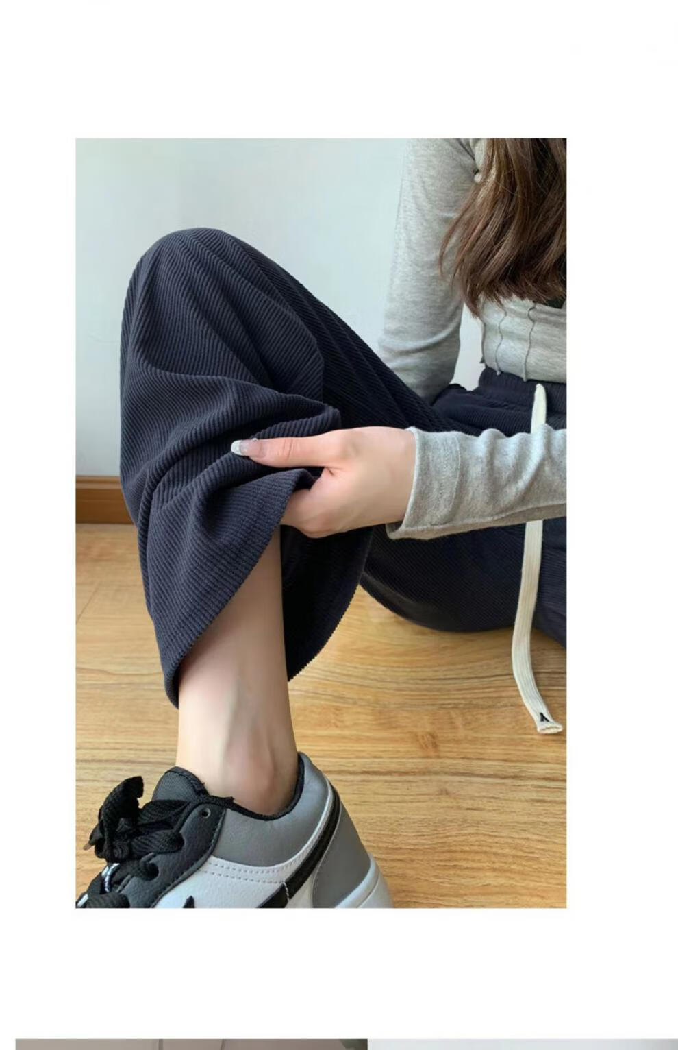 有只绵小个子阔腿裤女秋冬季高腰窄版显瘦直筒休闲裤加绒宽松垂感拖地裤 黑色 冬季加绒 均码 (适合80-140斤)