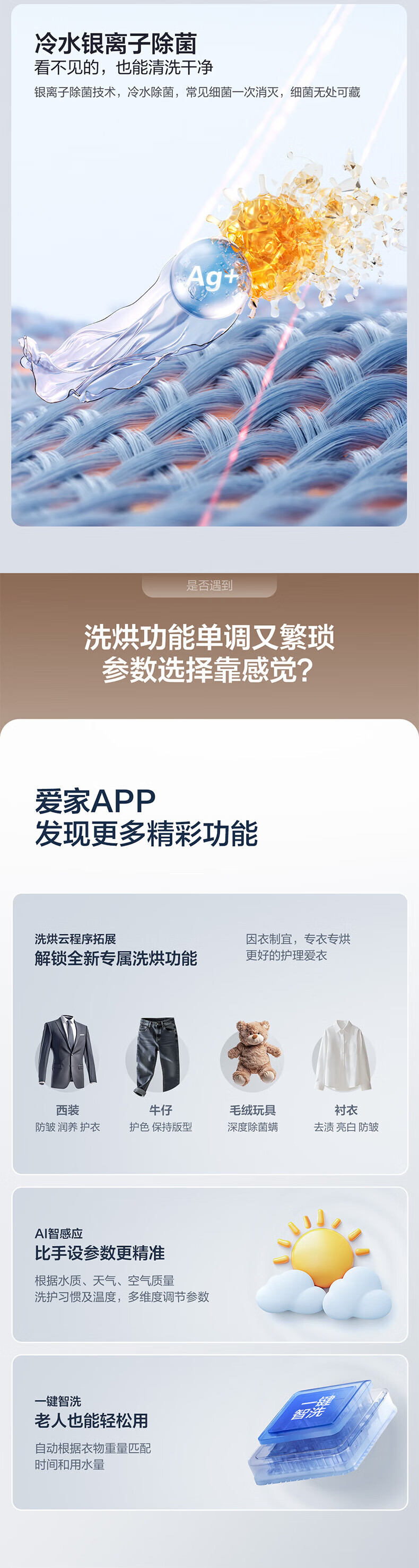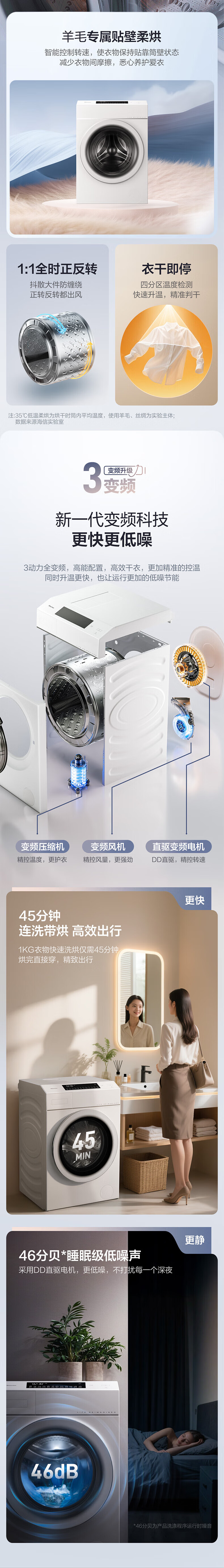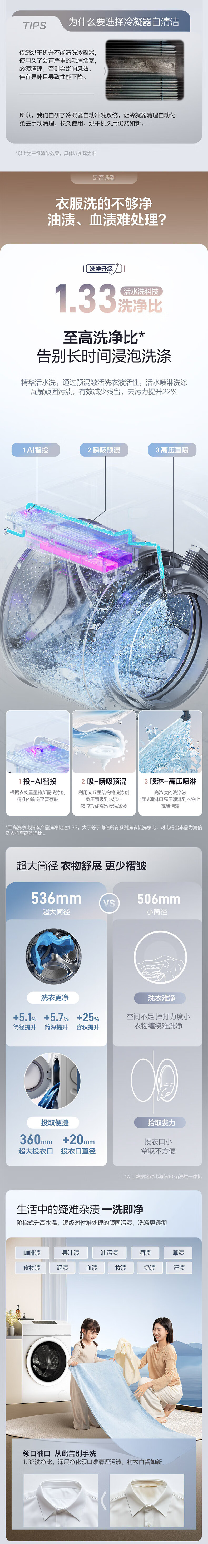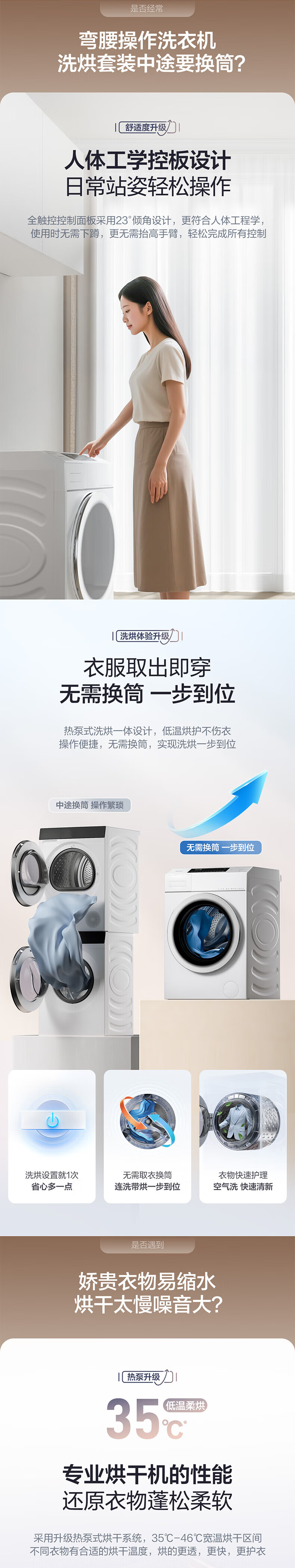海信(Hisense)大薄荷热泵洗烘一体机E7Q洗衣机带烘干一体全自动滚筒洗衣机13kg大容量 活水洗 WH130E7Q 国家补贴 1.33至高洗净比|1:1正反转|三变频 洗烘一体 35℃低温柔烘更护衣|三层毛屑过滤|冷凝器自清洁