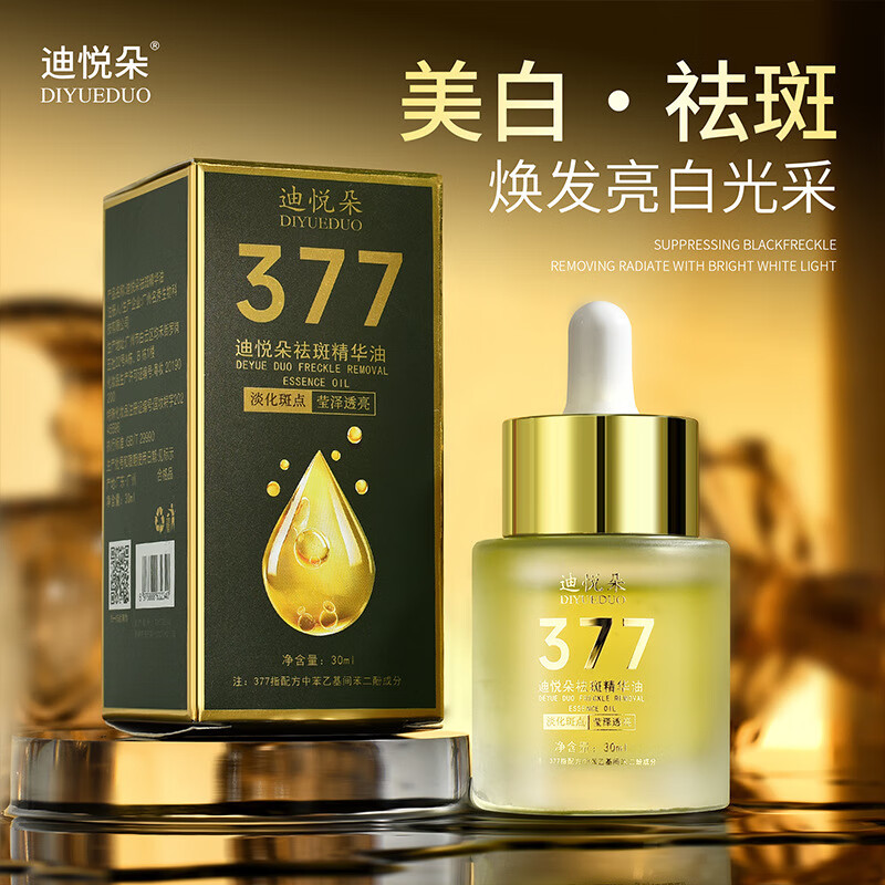 迪悦朵377祛斑精华油淡斑暗沉提亮肤色淡化色斑精华液 迪悦朵祛斑精华油(377黑盒