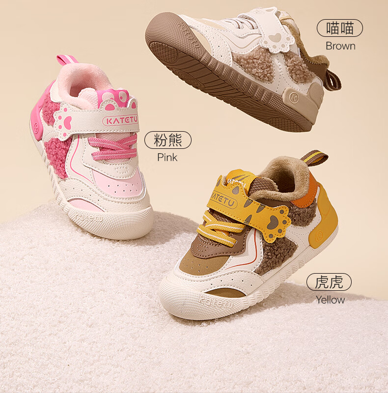 卡特兔宝宝学步鞋宝宝鞋秋冬童鞋婴儿鞋子软底机能鞋加绒加厚儿童棉鞋 白粉 24 内长14.5cm 脚长13.6-14.2