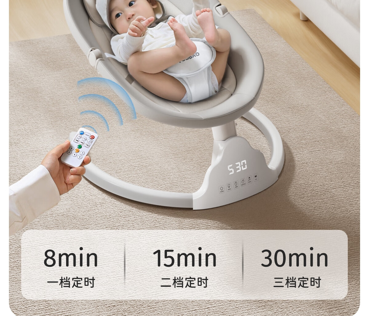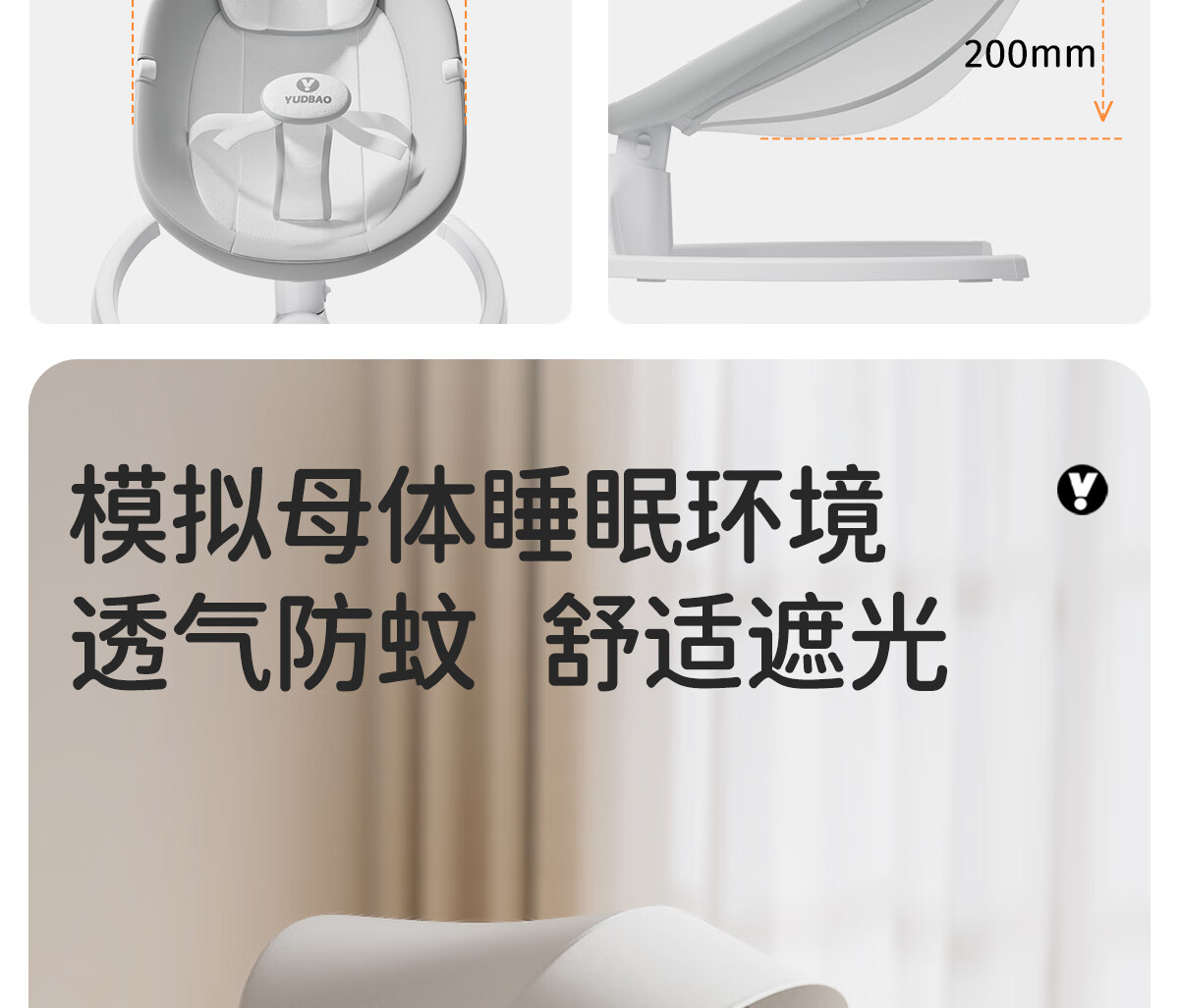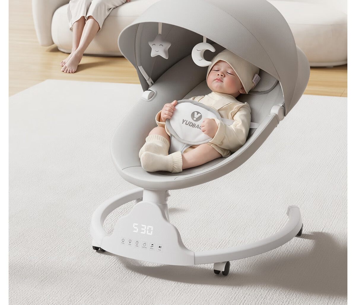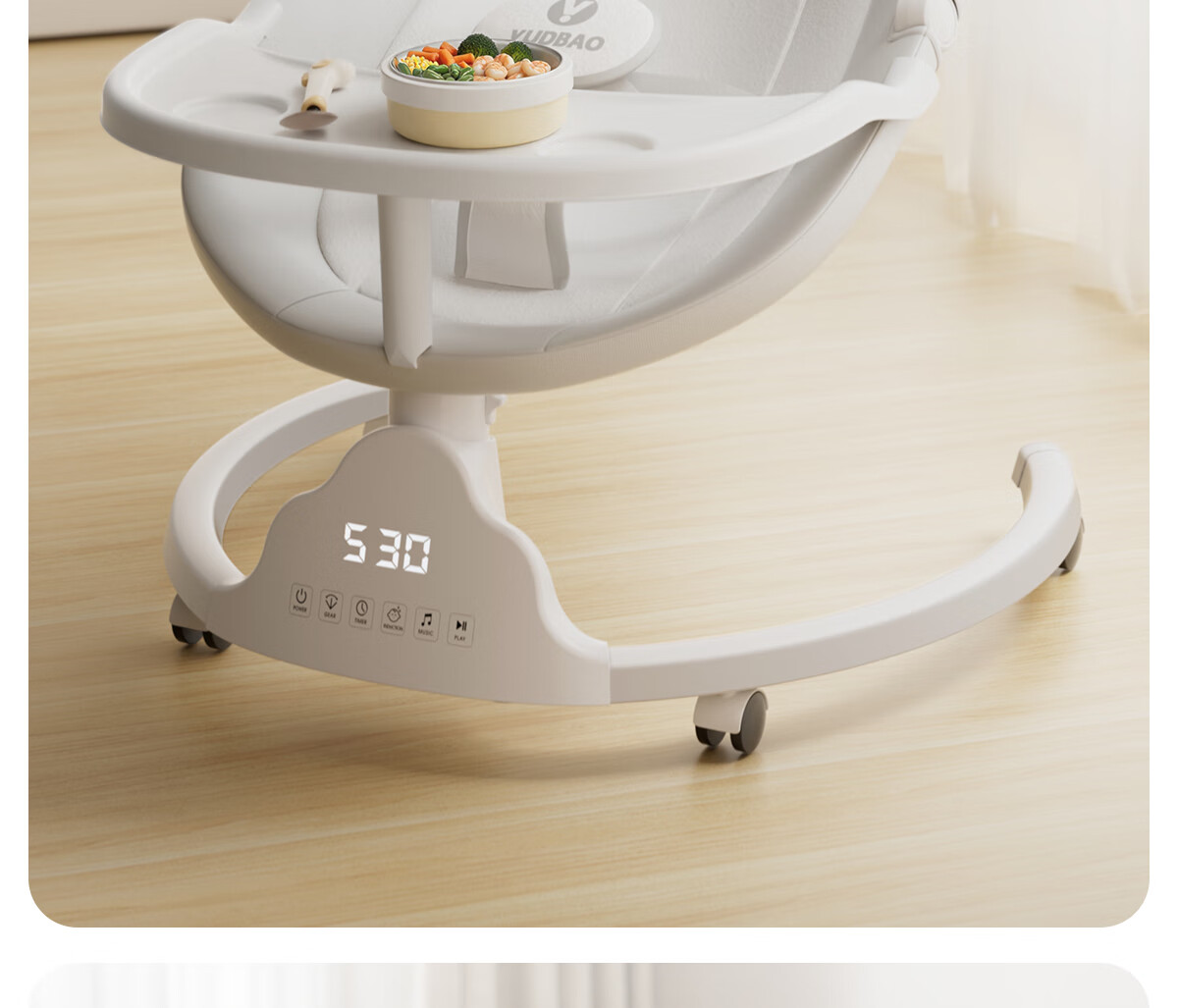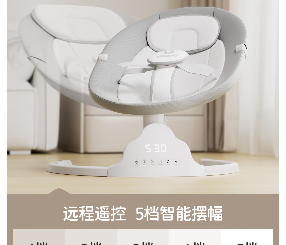 育丁堡YUDBAO婴儿摇摇椅0-3岁哄娃神器电动摇摇椅婴儿新生儿见面礼摇摇床 月光灰【电动摇床+餐盘+万向轮】礼盒装
