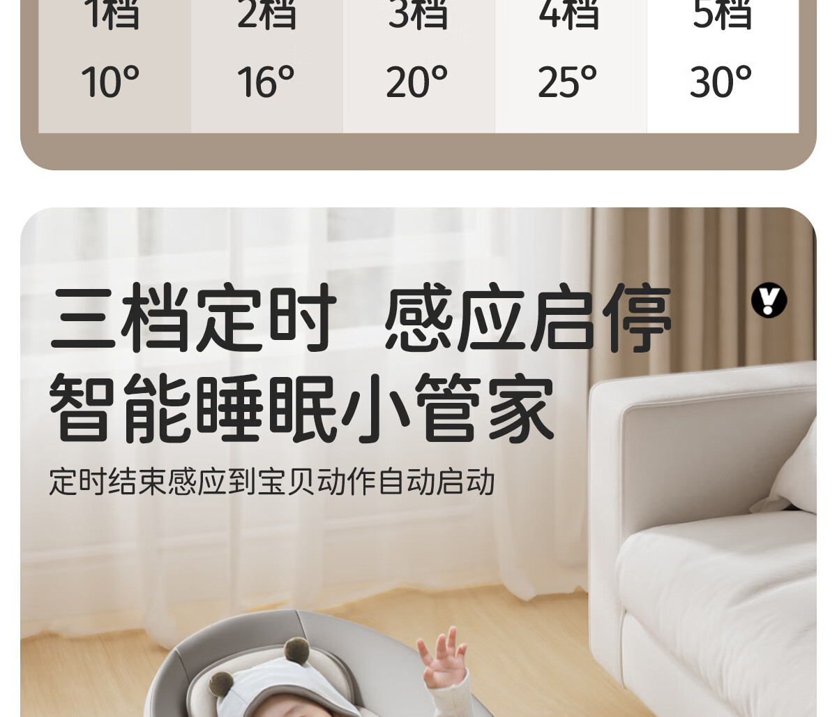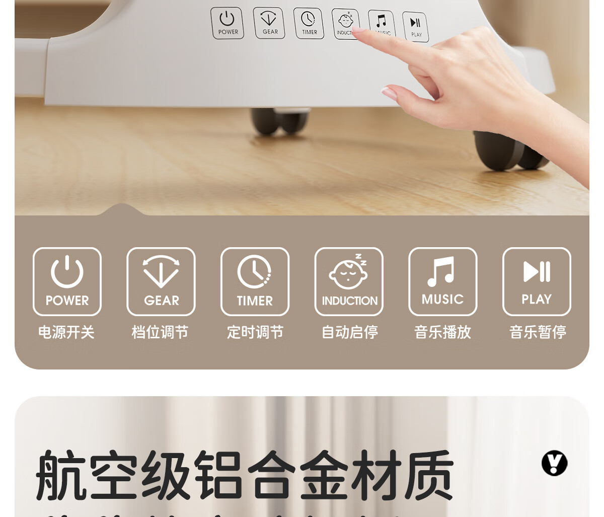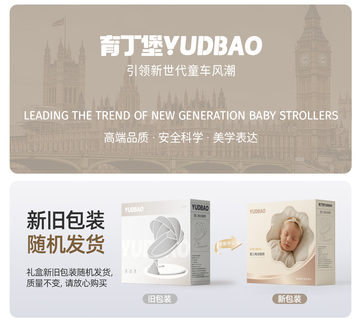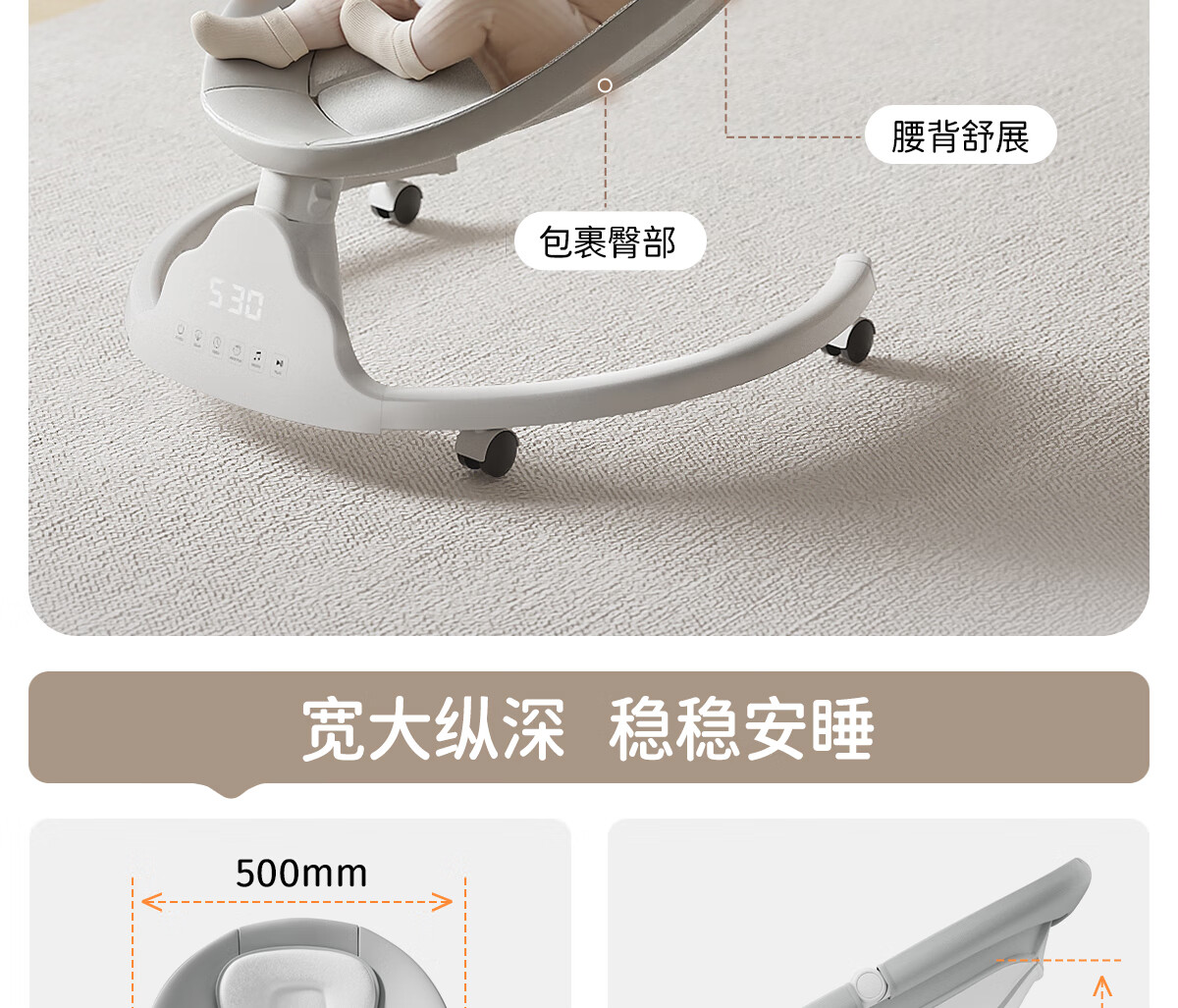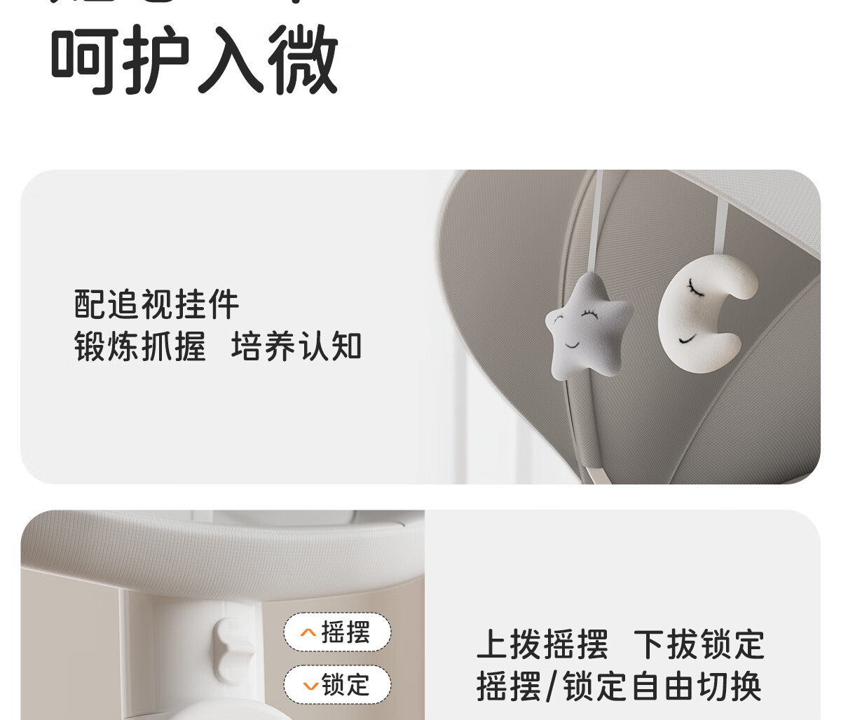 育丁堡YUDBAO婴儿摇摇椅0-3岁哄娃神器电动摇摇椅婴儿新生儿见面礼摇摇床 月光灰【电动摇床+餐盘+万向轮】礼盒装