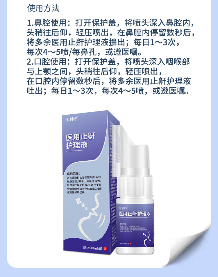 优利特医用止鼾护理液 液体止鼾器 止鼾喷雾防打呼噜 减缓打鼾 【2盒体验装】医用止鼾护理液