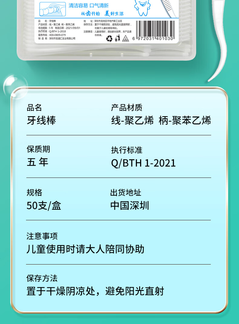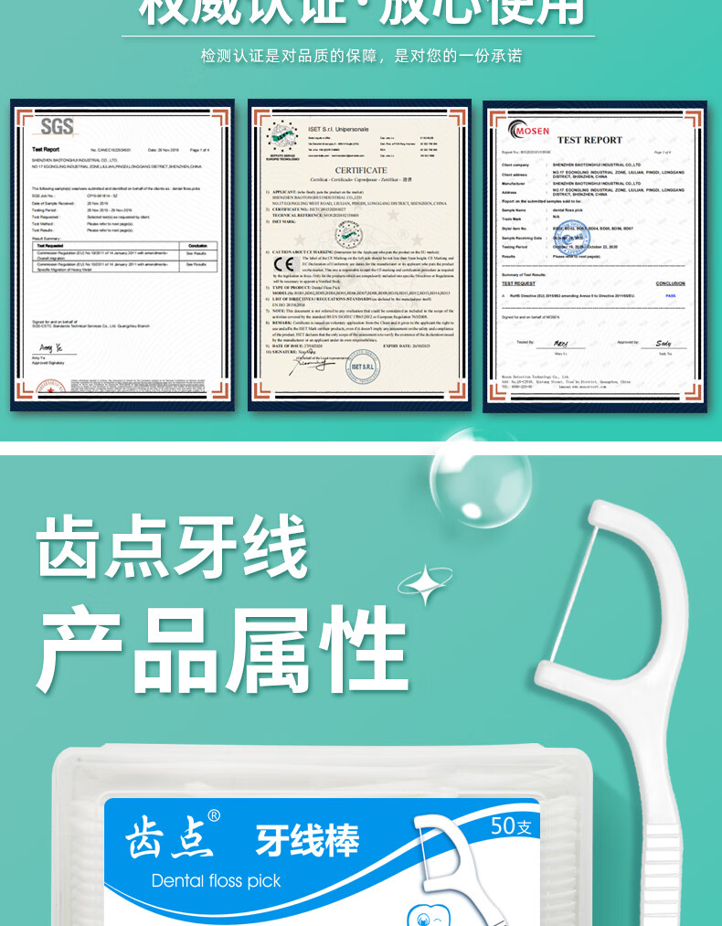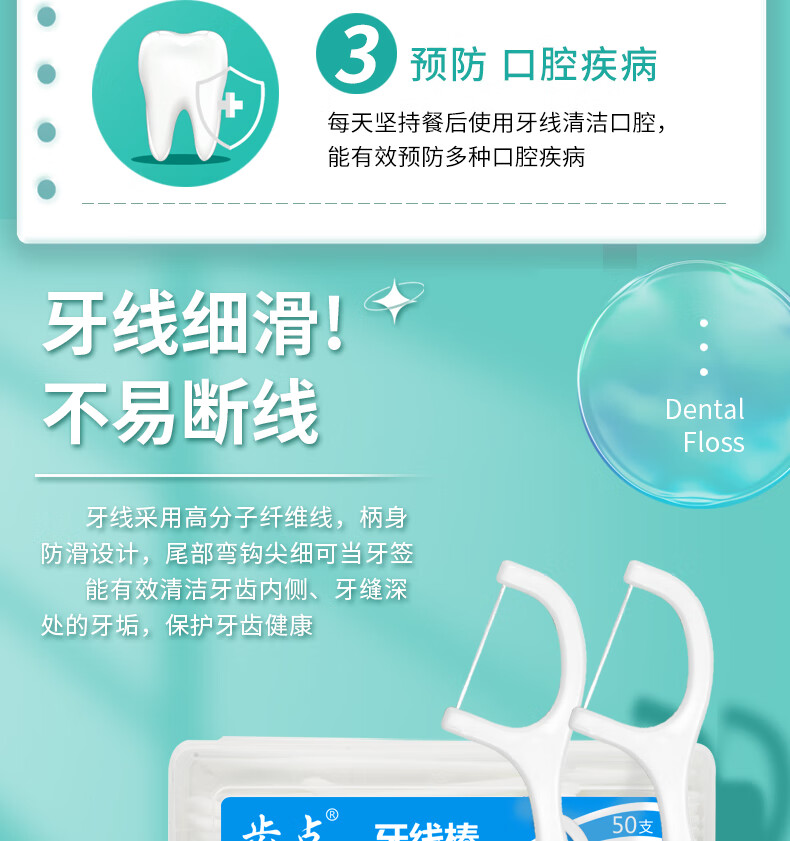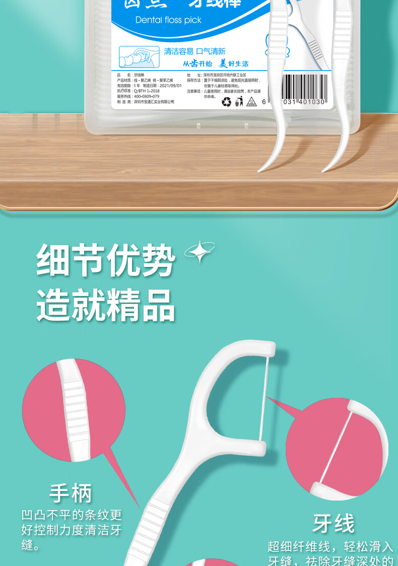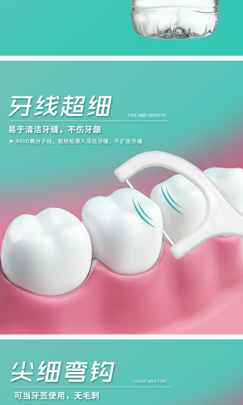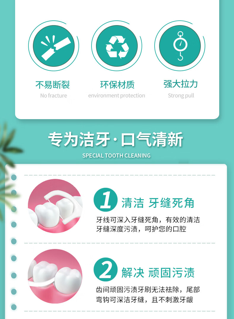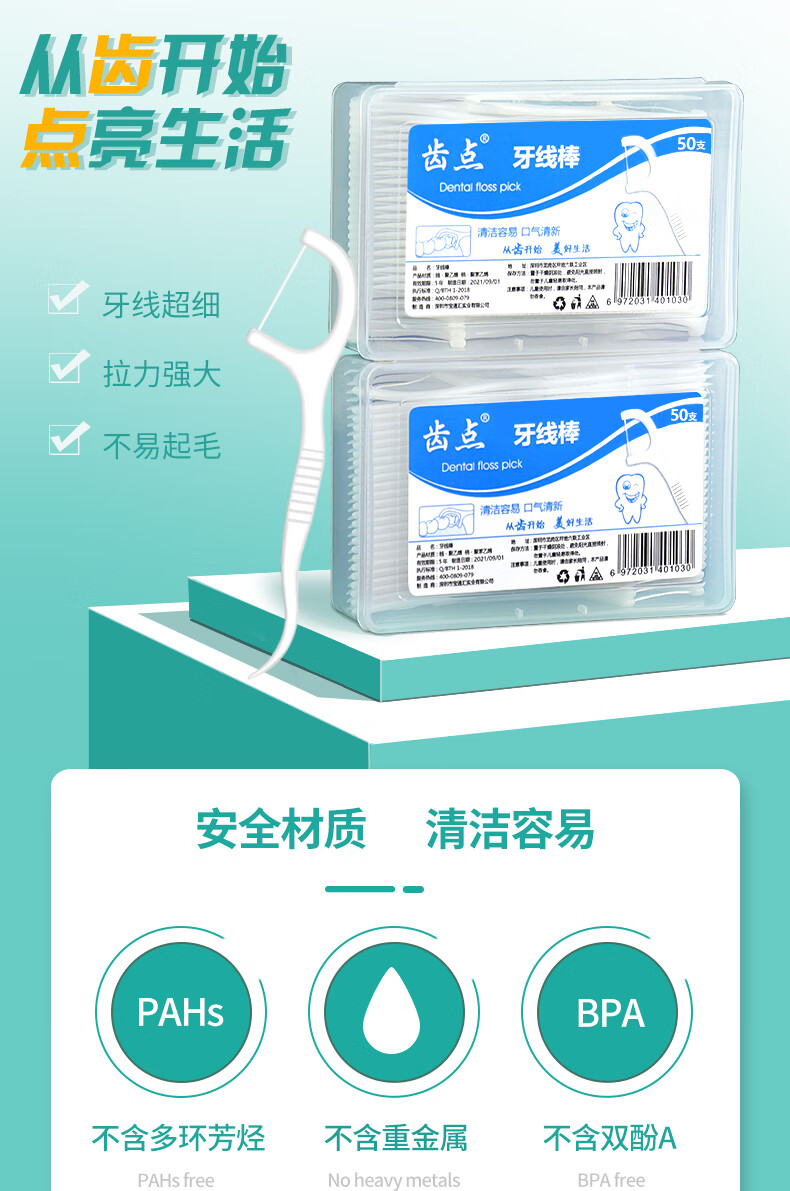 齿点500支牙线家庭装经典盒装牙缝清洁一次性牙线棒高拉力剔牙签线