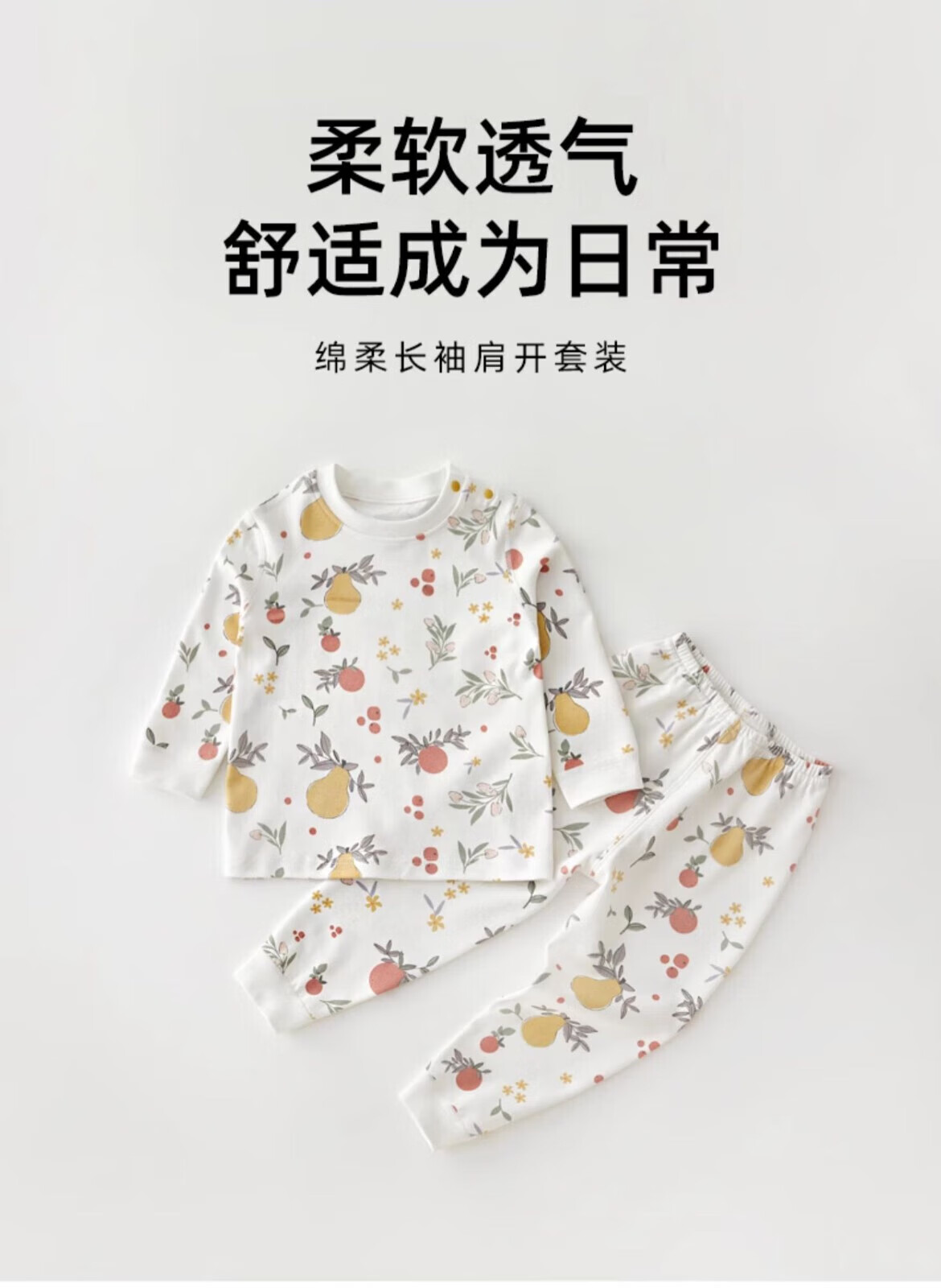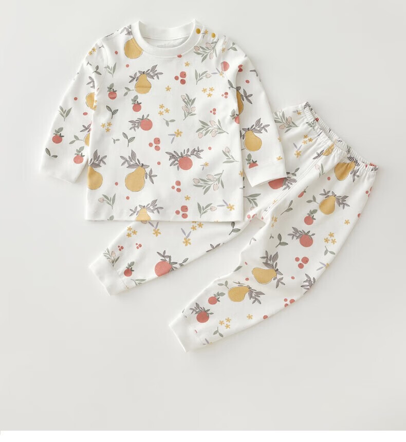 贝肽斯儿童防凉睡衣套装夏季纯棉衣裤婴儿家居服男女宝宝长袖空调服 澳洲西梅 90 cm 【可开肩开裆】