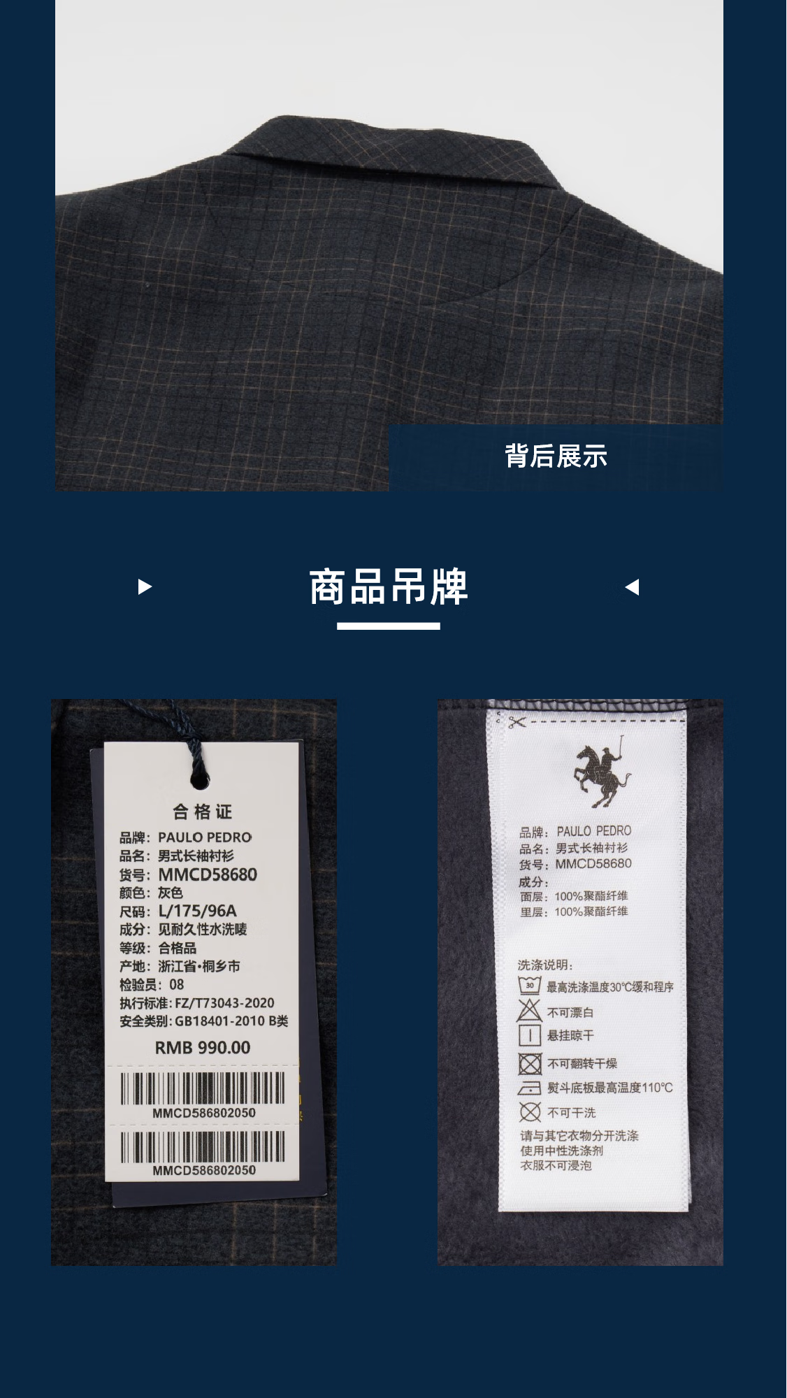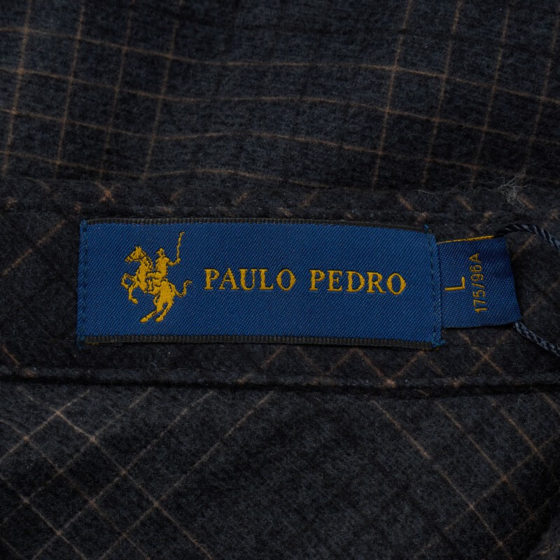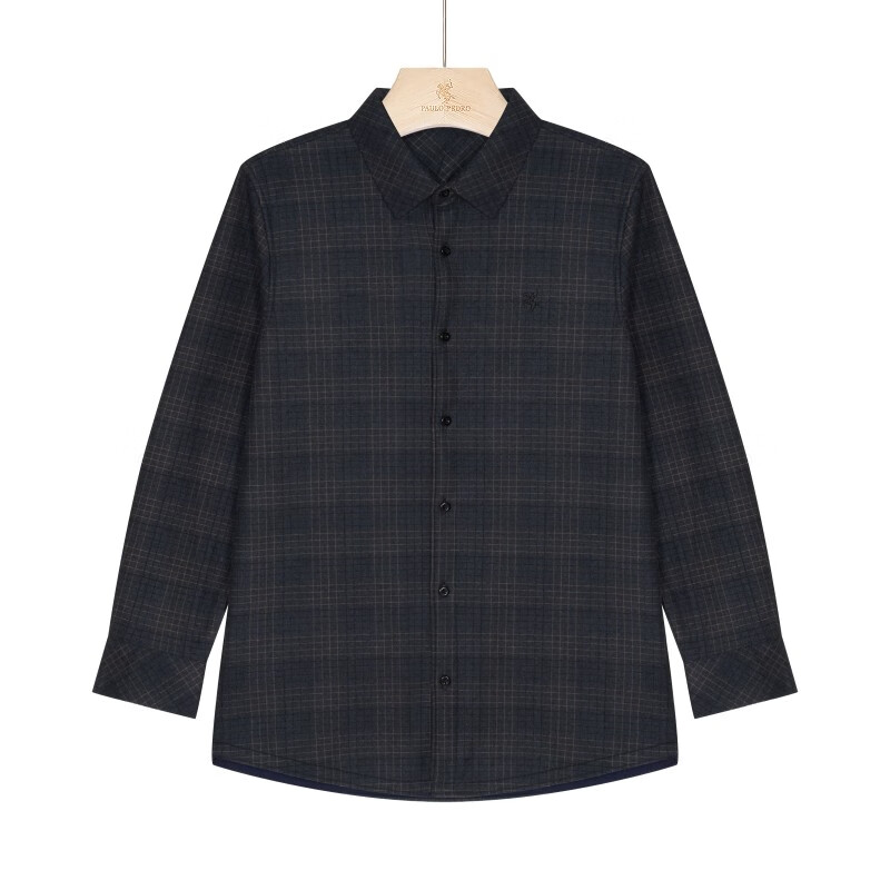 保罗·彼得(PAULO PEDRO)专柜同款 男士加绒厚款简约百搭职场百搭格子衬衫MMCD58680 灰色 3XL (190) 180-200斤