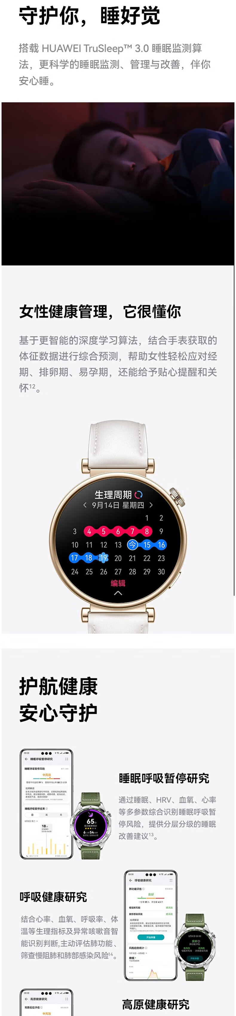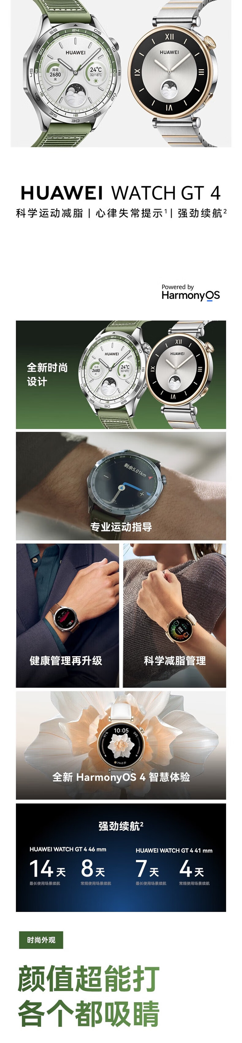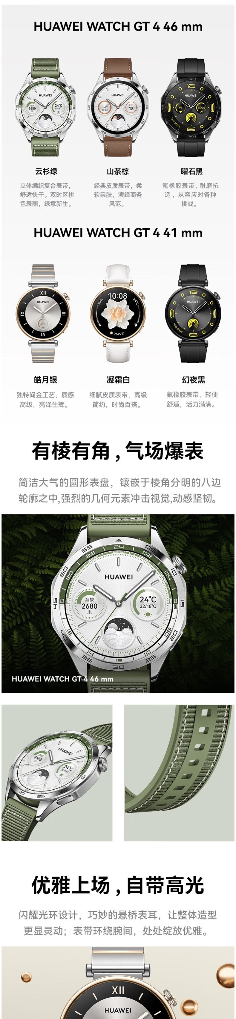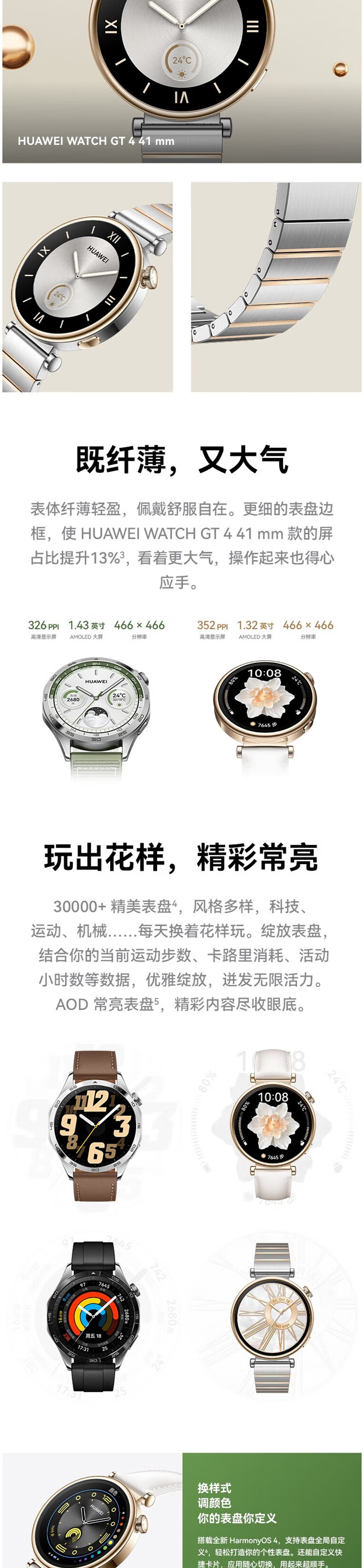 华为(HUAWEI)【女神走心实用礼】手表watch GT4女士款智能运动蓝牙电话情侣手表心脏血氧生理周期睡眠穿戴设备 凝霜白-皮表带41MM【甄选金色钢表带+精美表盘】