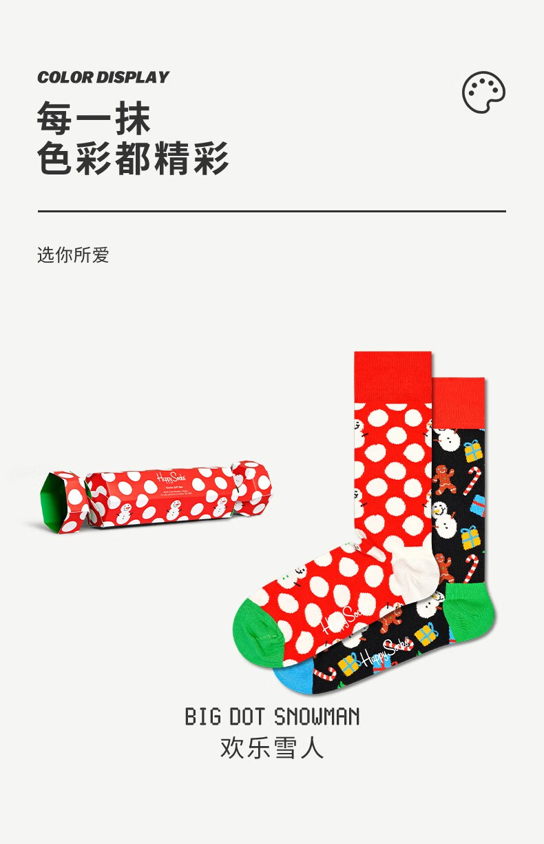 Happy Socks秋冬季款袜子女男袜多巴胺璀璨星星袜中筒袜圣诞时尚礼盒 欢乐雪人 2双 M 36-40