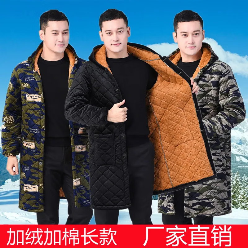 珥志四川省服 冬季加肥加大男士罩衣加绒加厚款长款工作服耐脏保暖外 轻薄【单层加绒防水】 9XL 9X码 (253-280斤 )
