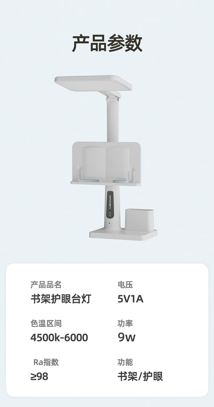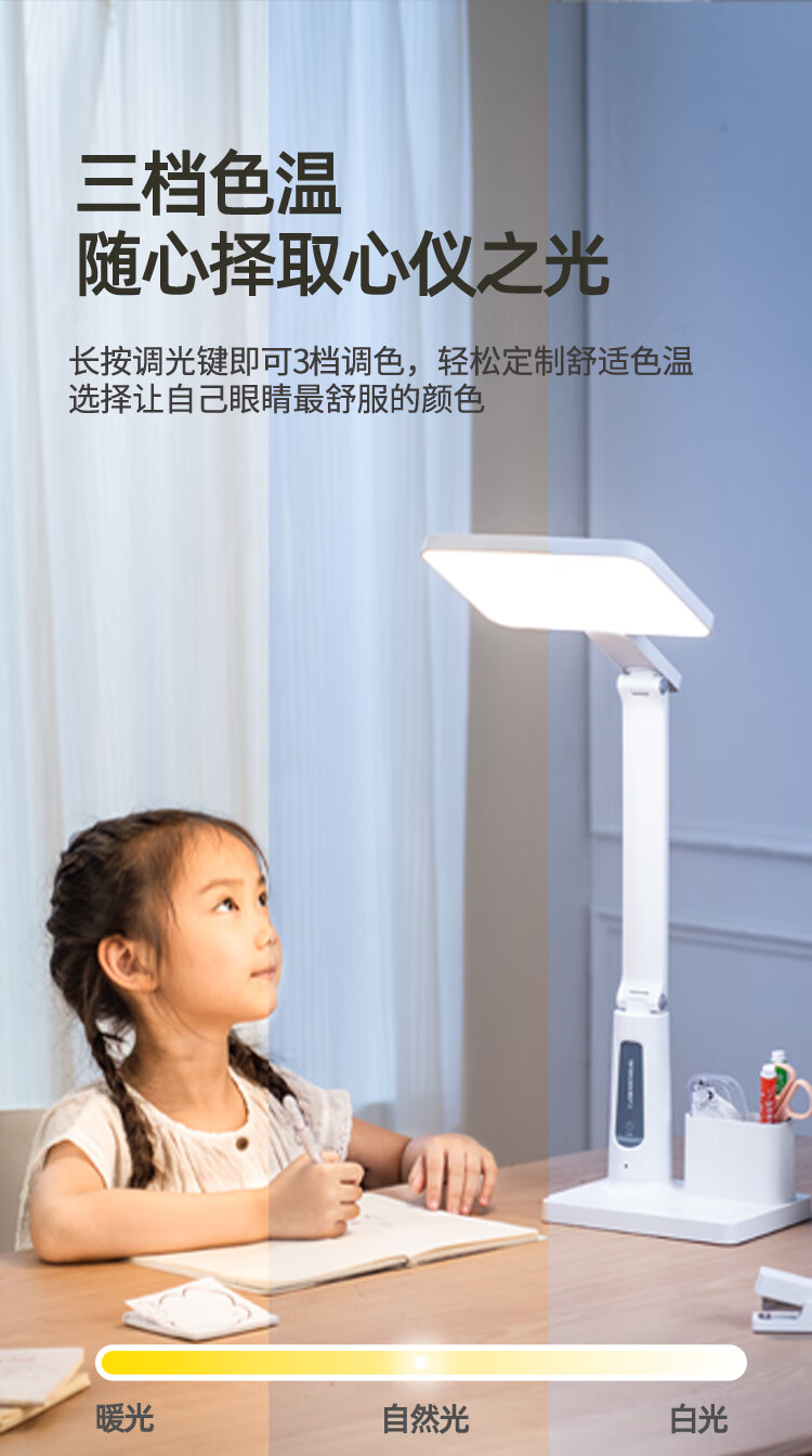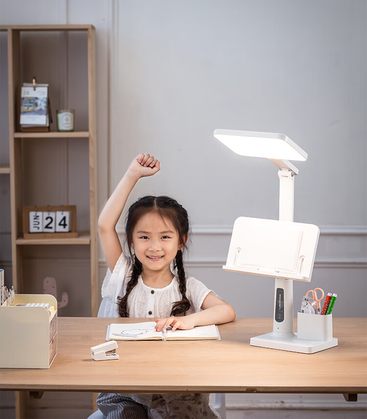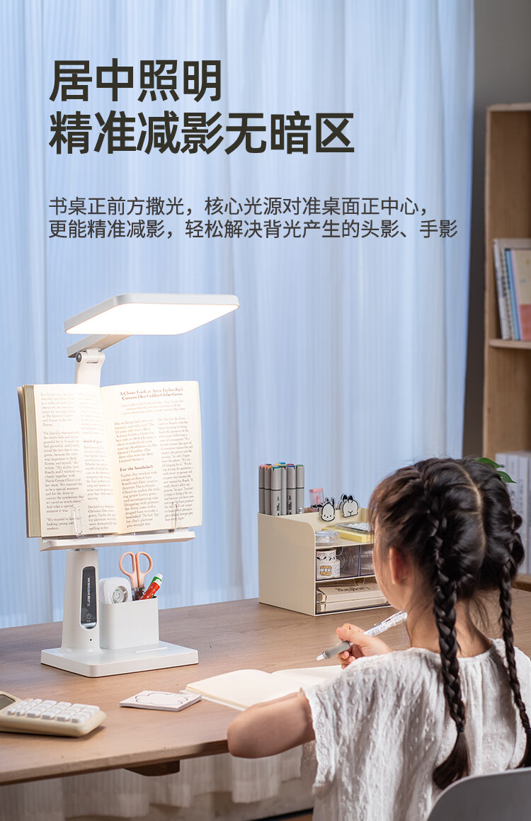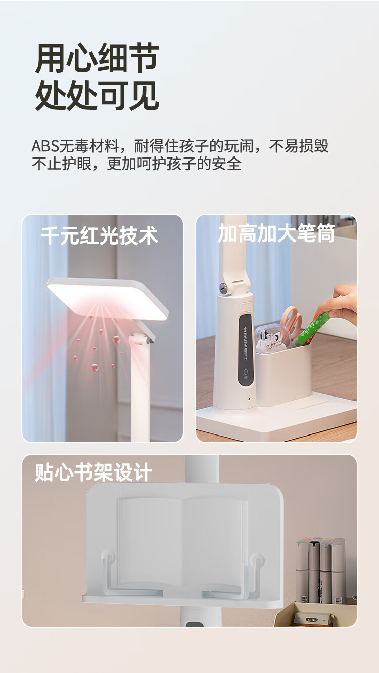 眼护士儿童护眼台灯学习专用防近视大学生宿舍灯充电书桌灯工作阅读台灯 升级方形款-带书架/NIR红光护眼 触摸开关