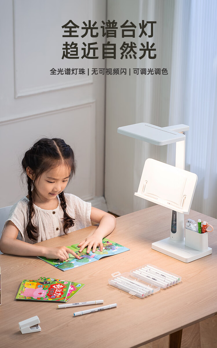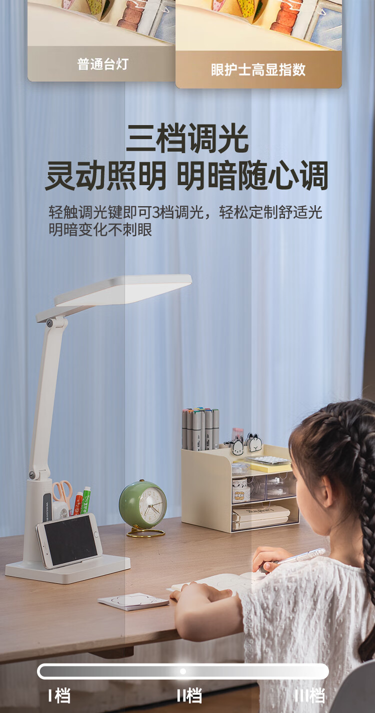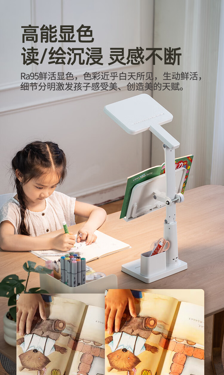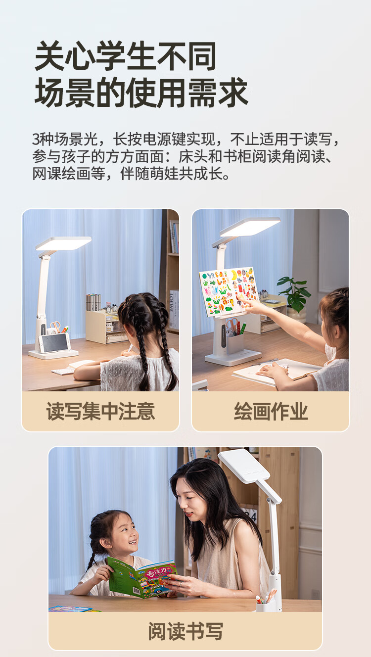 眼护士儿童护眼台灯学习专用防近视大学生宿舍灯充电书桌灯工作阅读台灯 升级方形款-带书架/NIR红光护眼 触摸开关