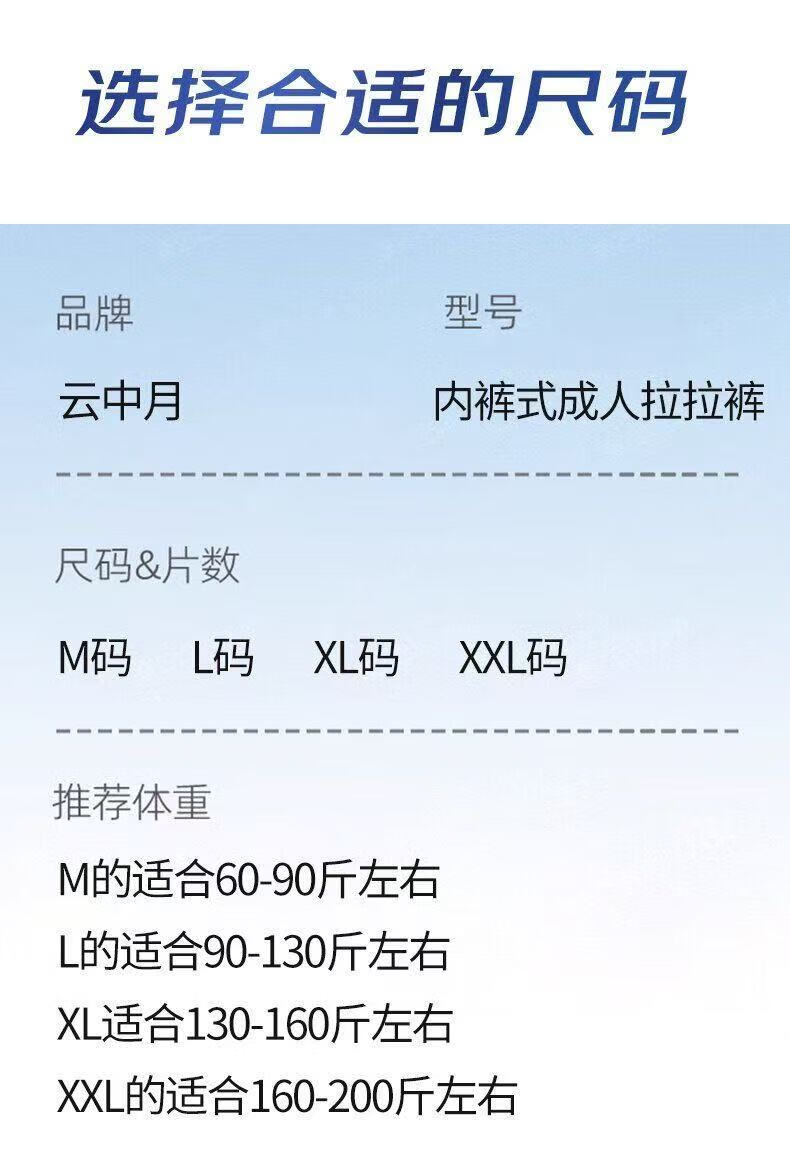 云中月成人纸尿裤老年人专用拉拉裤加厚男女大号尿不湿 拉拉裤XXL码20片(建议160-200斤)