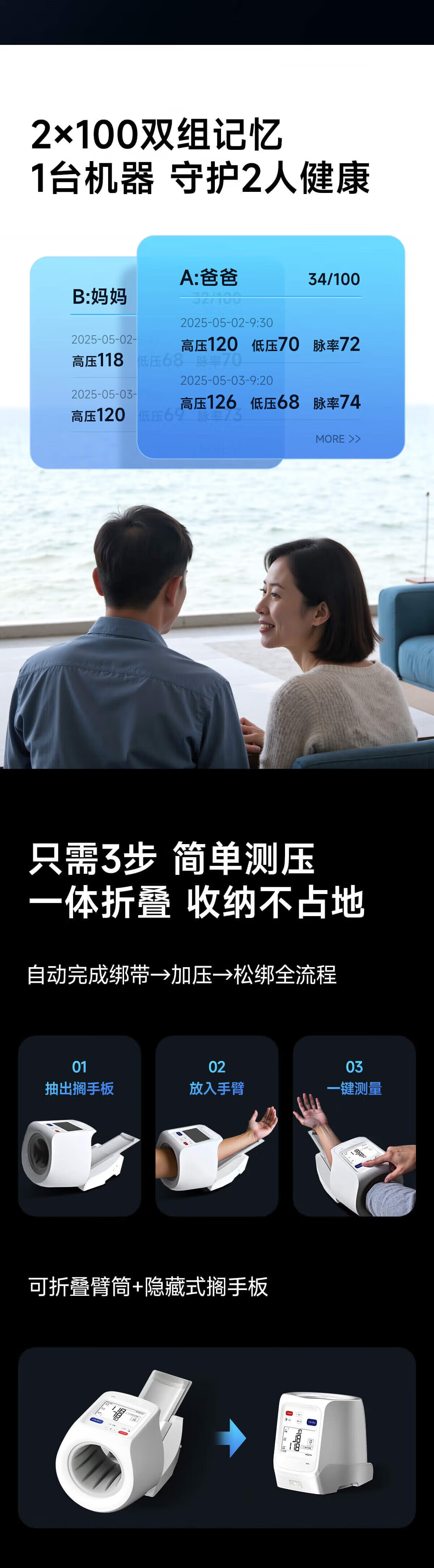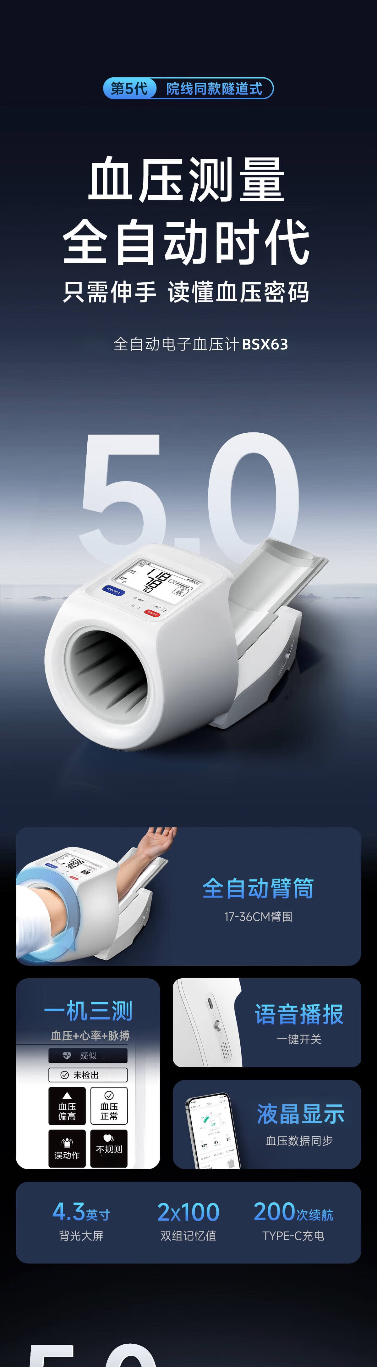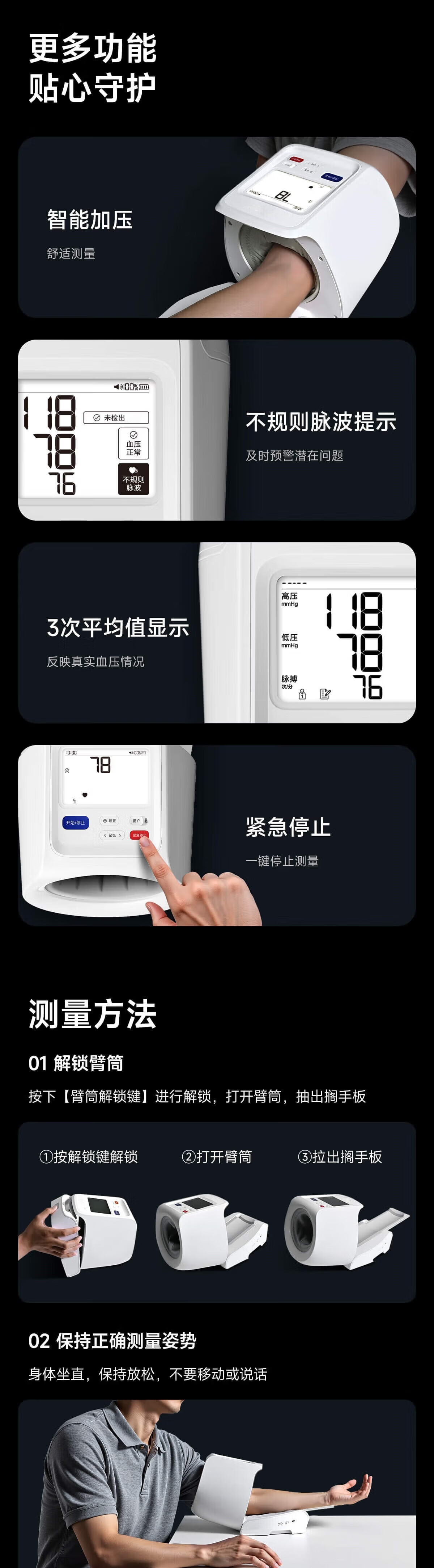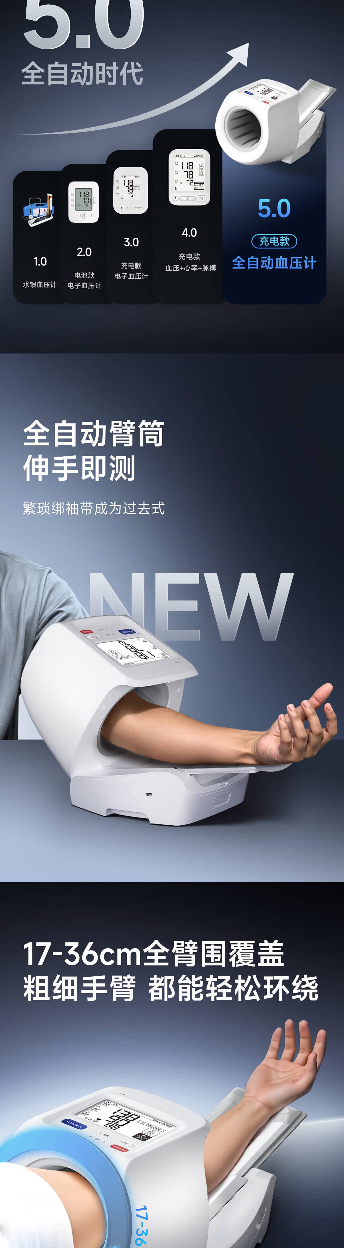 欧姆龙(OMRON)臂筒式血压计同款电子家用血压仪高精准老人语音播报充电 院线同款臂筒式加强版