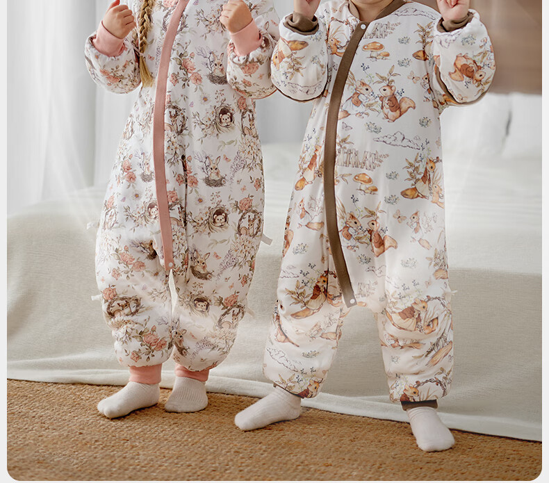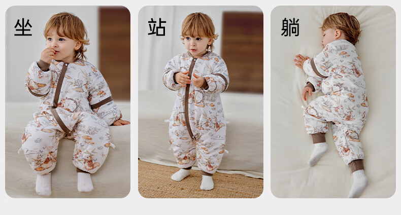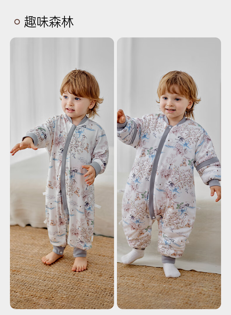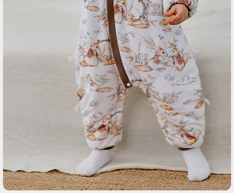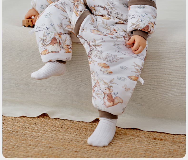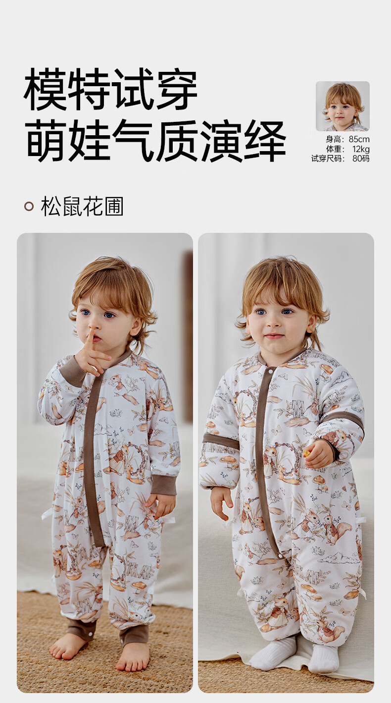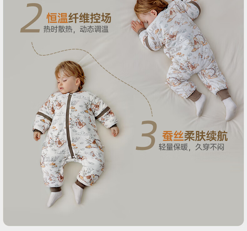 欧孕婴儿睡袋宝宝蚕丝防踢被子春秋冬款发热恒温儿童分腿四季通用 春秋款【室温22-26℃】松鼠花圃 55-80(3-18个月)-【80码】