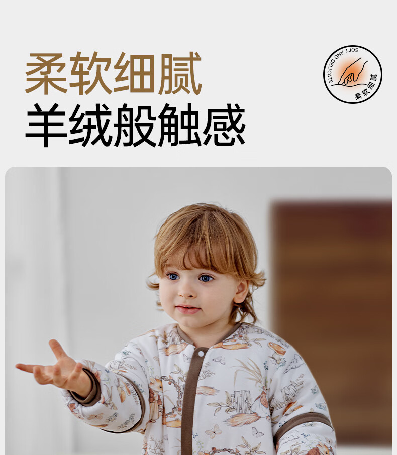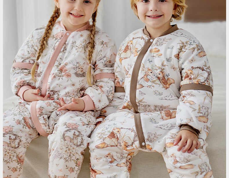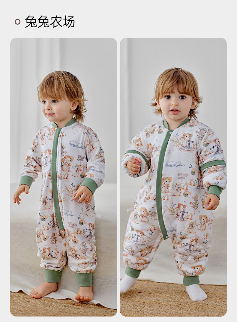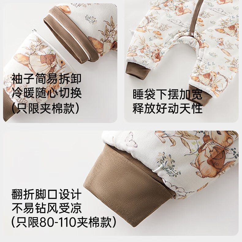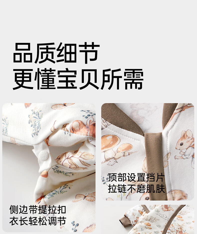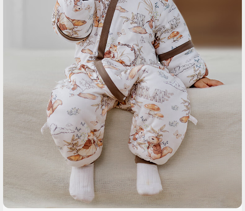 欧孕婴儿睡袋宝宝蚕丝防踢被子春秋冬款发热恒温儿童分腿四季通用 春秋款【室温22-26℃】松鼠花圃 55-80(3-18个月)-【80码】